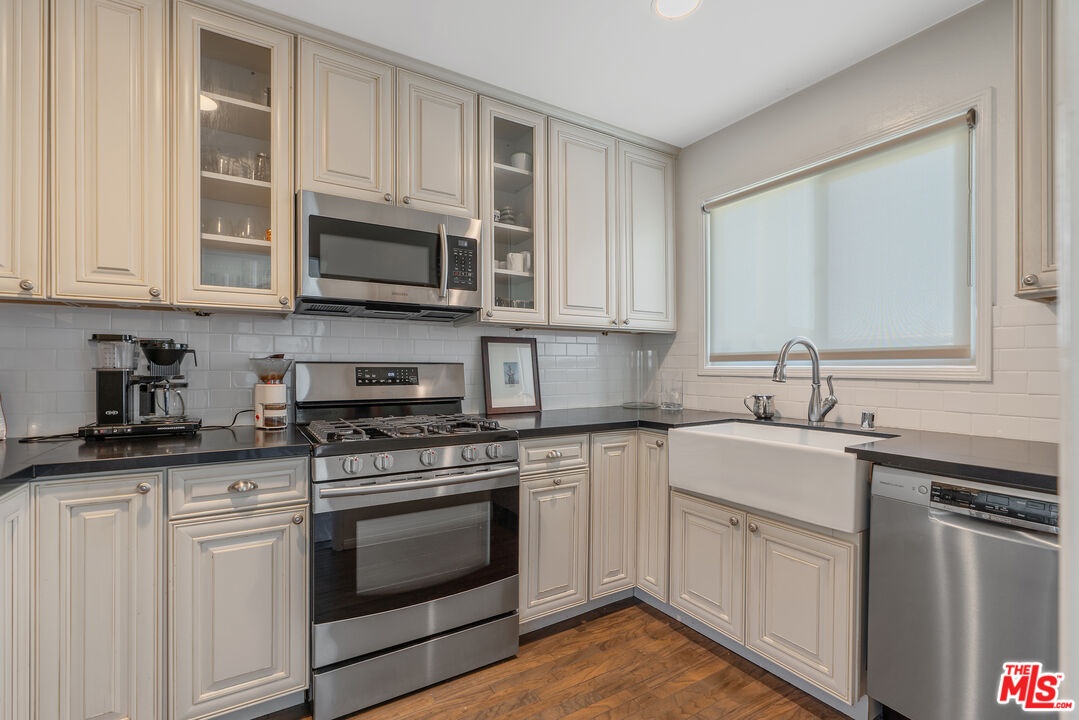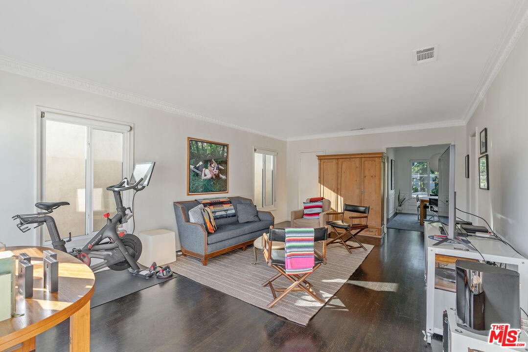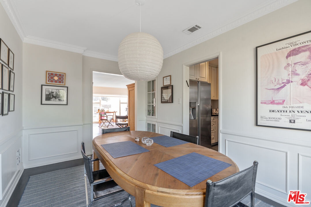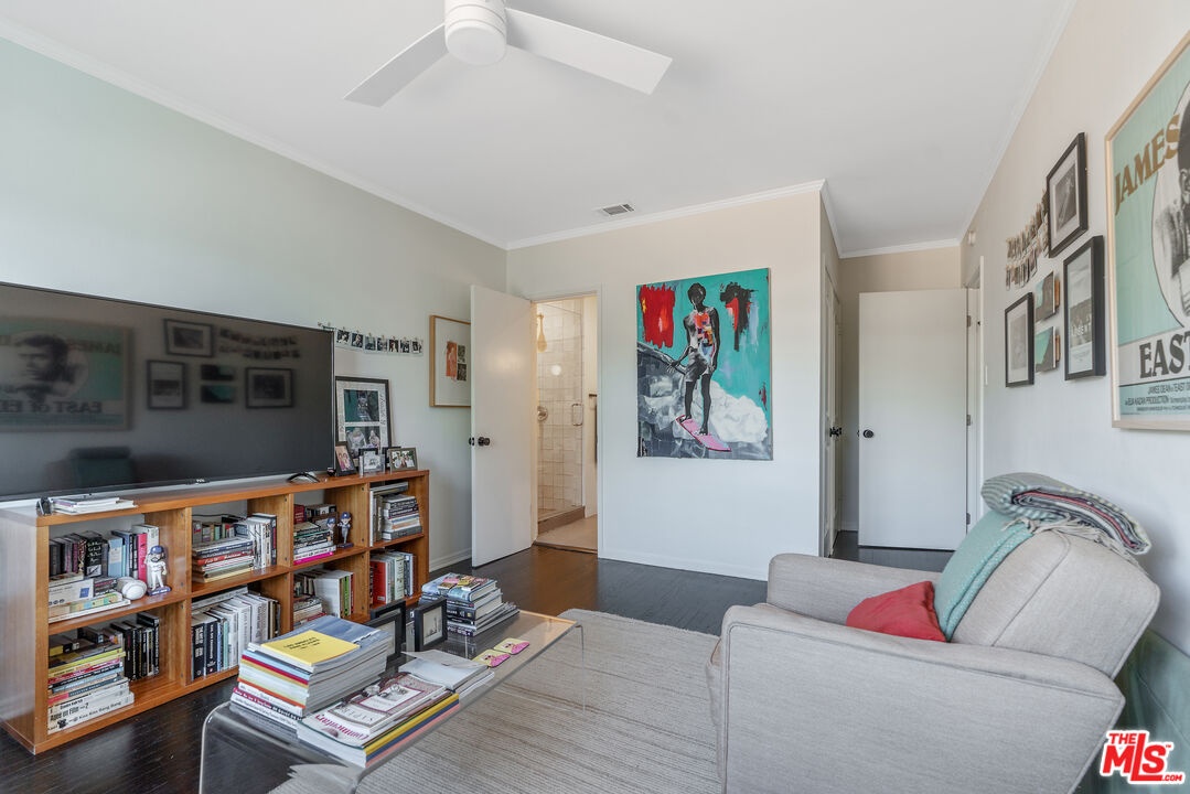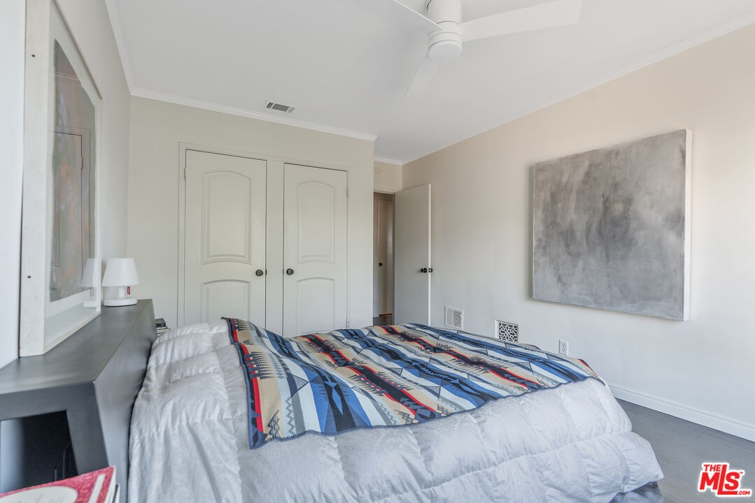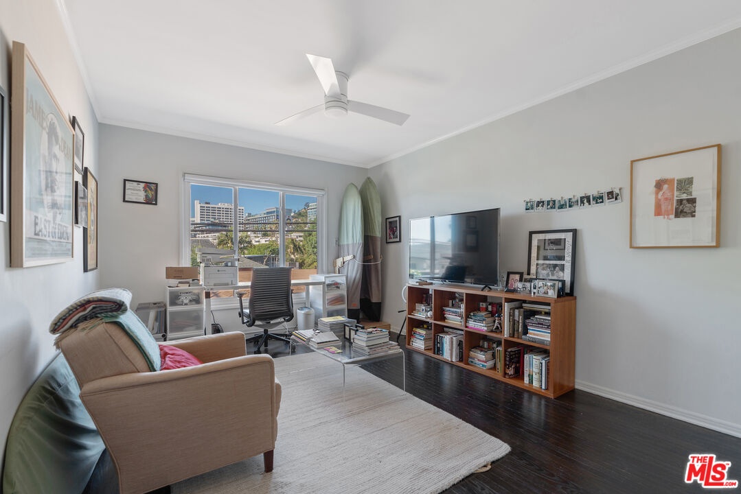 Under the thoughtful care of its current owners and a professional designer, this top floor, corner unit located in the heart of the Harper Historic District was both modernized and brought back to its Old Hollywood glamor. Enjoy spectacular views in this light and bright oasis. Both full bathrooms were re-built from the ground up with no expenses spared. Luxury materials and finishes include hand-cut Spanish and Italian tiles (supplied by Mission Tile), a modernist ceramic floating vanity in the primary bath, a heritage restored pedestal sink in the second bath, frameless glass shower doors, and curated design accessories and trims. Door and hardware were updated throughout the unit, and custom high-end window shades were installed on each window. Original, historic construction touches like trim details were retained throughout. The original wainscoting in the formal dining room was restored, as was the spectacular wall-length, floor-to-ceiling window in the living room, which was painted inside and out. The dining room was completed with a Naguchi light fixture, the epitome of mid-century modern cool. Additionally, the central air conditioning and heating was upgraded with new controls, and high-end Design Within Reach ceiling fans were installed in both bedrooms. Luxurious new Bosch appliances (washer, dryer, and dishwasher) were also installed. One covered parking space is included, as well as trash and water.