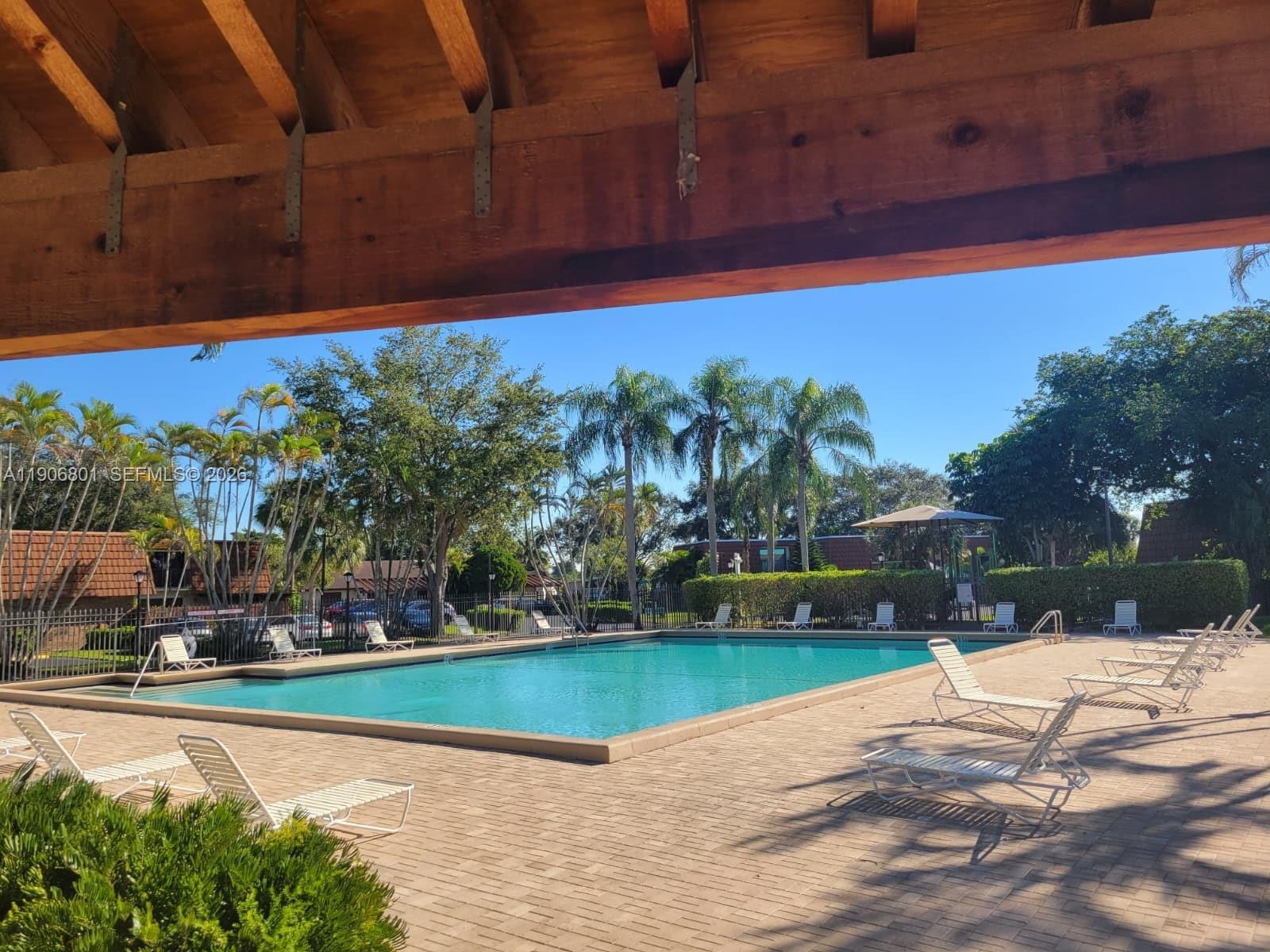 Welcome to this exceptional townhome in a sought-after Davie community! Features brand new impact sliders and new AC unit for comfort and efficiency. The HOA maintains the roof and building exterior including insurance for worry-free living. Entertain guests in your large private courtyard—perfect for gatherings and relaxation. Inside, enjoy a spacious primary bedroom with two large closets, a beautifully renovated primary bathroom, and full-sized washer and dryer. Community amenities include basketball and tennis courts, sparkling swimming pool, BBQ area, playground, and scenic walking trails—something for everyone! Located in an excellent school district, this home offers the perfect blend of comfort, convenience, and lifestyle. Don't miss this opportunity!