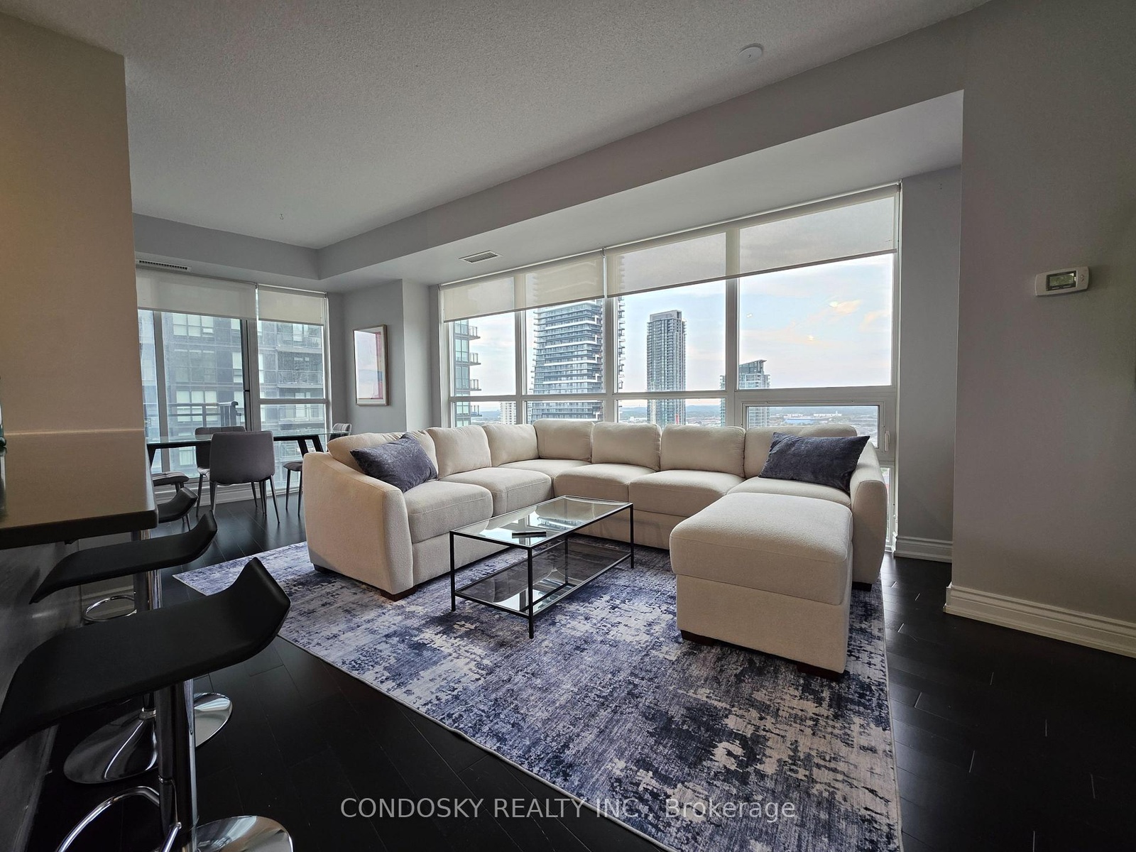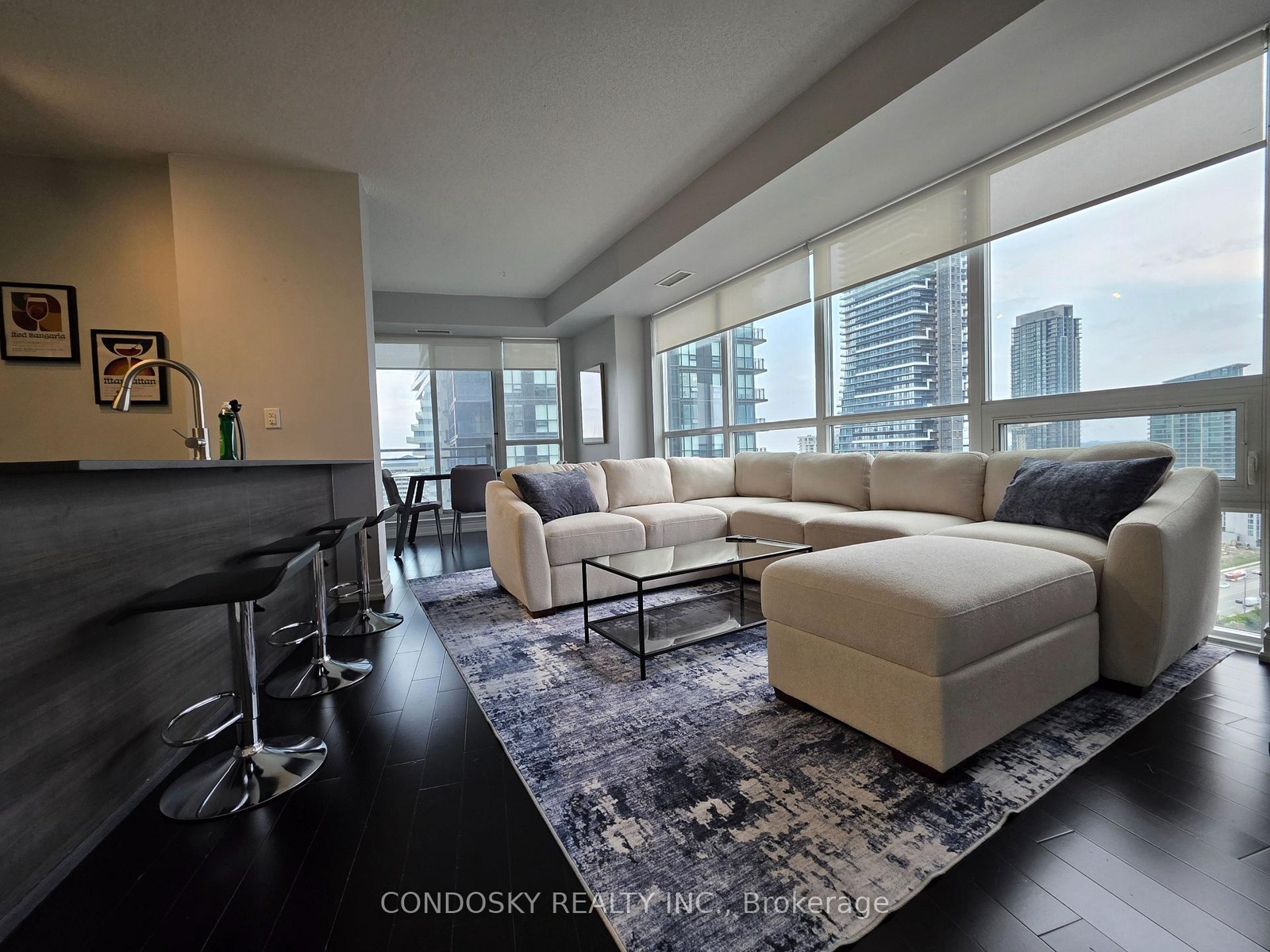 Welcome To Luxury Living In Psv2. Very Spacious Sun Filled 2Bedroom + Den Unit With Panoramic Views Of The City. A Very Functional Layout, Open Concept Living/Dining Area. Large Den With Custom Sliding Doors Can Be Used As Third Bedroom! Large Chefs Kitchen With S/S Appliances, Granite Countertops With Breakfast Bar. Master Br With 4 Pc Ensuite, Huge Amount Of Natural Light With Windows In Every Room. Floor To Ceiling Windows. Live In The Heart Of Downtown Mississauga, Close To All Amenities, Major High Ways, Library, Ymca, Square 1 Shopping Center, Restaurants And Celebration Square.
