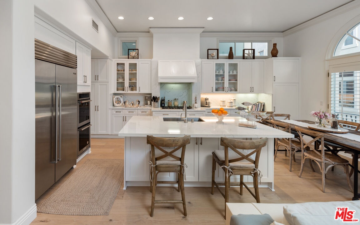 Luxury Coastal Living in the coveted Silver Strand. This furnished and extensively remodeled Italian Villa boasts 4 bedrooms, 5.5 baths, and 4900 sq ft of living space - plenty of room for you and your family. The high ceilings throughout the villa will take your breath away, as well as the stunning chef's kitchen with top-of-the-line stainless steel appliances, elegant quartz countertops, and a wet bar. The sun-drenched living and dining areas are perfect for entertaining friends and family. Enjoy the convenience of the four-stop elevator and the comfort of the spacious primary bedroom suite with an extraordinary dual-sided fireplace facing both the primary bedroom and bath. The spa-like primary bathroom retreat leads to a generous walk-in closet. Three additional charming en-suite bedrooms; plenty of space for everyone. The expansive rooftop deck provides sparkling views of the ocean and city lights perfect for relaxing after a long day. Stroll through the amazing lush garden outside your private patio door or take a long stroll on the beach, and return to play pool in the game/bonus room or relax in the fully furnished patio yard with a barbecue for delicious grilling recipes. Don't miss this opportunity to live just 2-minutes from the beach and Channel, where you can soak up all the beauty and excitement of the sea lions, yachts, and racing crew. Come and see what coastal luxury living is all about. 24-hour security patrol included. Schedule your viewing soon! (Short-term rates may vary.)