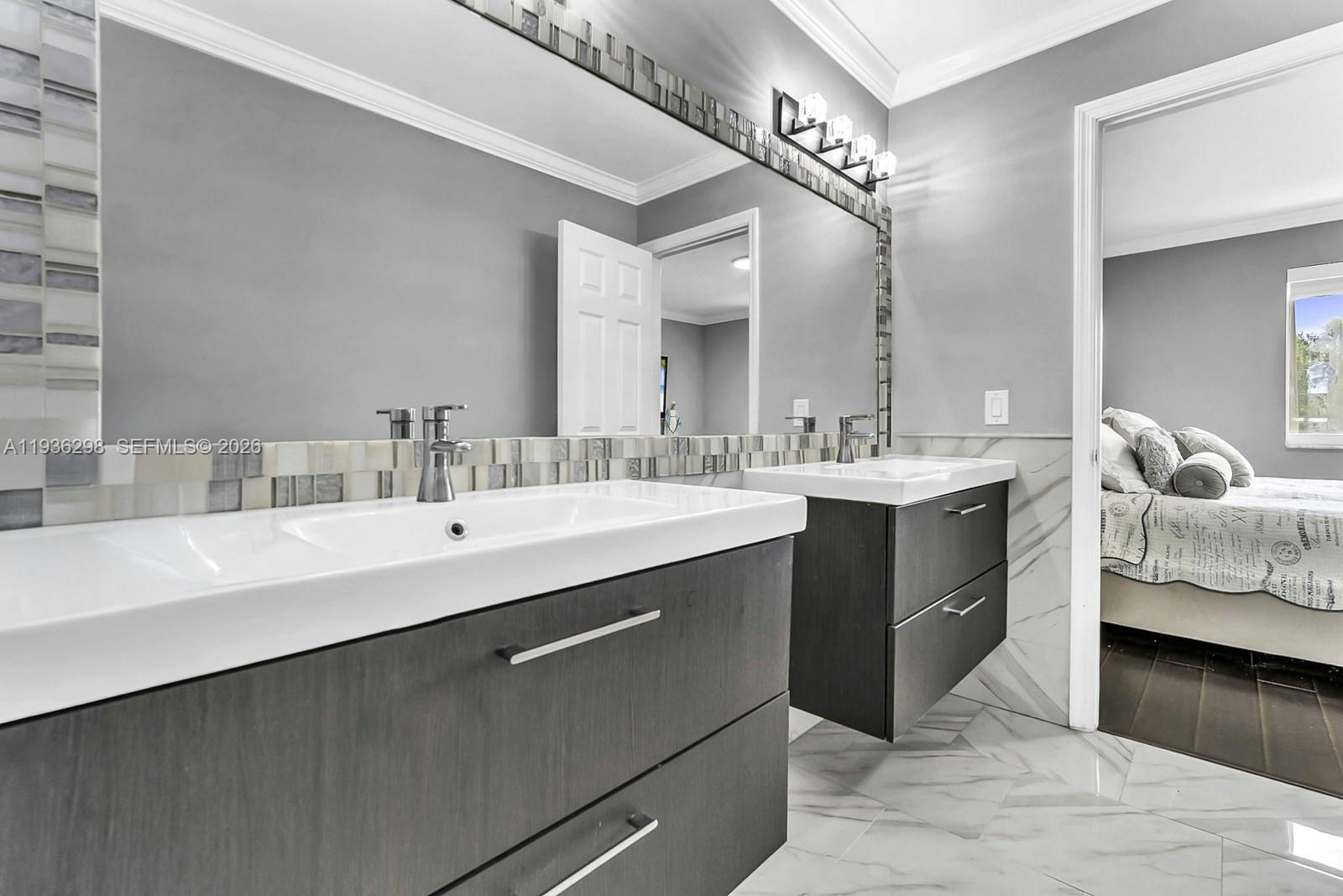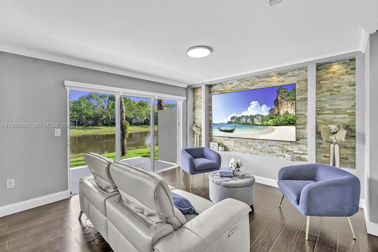 Spectacular fully re-imagined lakefront corner townhome located in the prestigious gated community of Pembroke Isles. Modern and beautifully updated 3 bedroom, 2.5 bath residence showcases laminate wood style flooring throughout, crown molding, a bright white kitchen filled with natural light, and stainless steel appliances. The family room is highlighted by an elegant decorative stone accent wall. Enjoy breathtaking sunrise views and tranquil lakefront living from your private back patio with no rear neighbors. Additional features include a 2 car driveway plus guest parking. Pembroke Isles offers resort-style amenities including a grand clubhouse, fitness center, multiple swimming pools, jacuzzi, tennis courts, pickle ball courts, basketball, soccer, racquetball, and more. No HOA approval required.