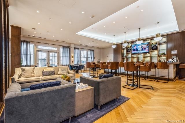 Experience the Pinnacle of Luxury at Country Pointe. Welcome to a lifestyle of refined elegance in the heart of Plainview. This coveted "Cambridge" model offers 1,475 square feet of impeccably designed living space within a premier gated community. The open-concept interior is bathed in natural light from oversized windows, highlighting the blonde oak flooring, custom crown moldings, and recessed lighting. The gourmet kitchen serves as the heart of the home, featuring rich cabinetry in warm tones contrasted by sleek stone countertops and matching backsplash, also included are professional-grade stainless steel appliances. Retreat to the expansive primary suite, complete with spacious dual closets and a spa-inspired ensuite. Whether you utilize the second bedroom as a sophisticated home office or a cozy den, the floor plan adapts to your lifestyle. As an added convenience there are wireless thermostats and keyless entry. Another added feature is garage parking in the lower level with easy access to the elevators. Enjoy morning coffee on your private porch or take advantage of the resort-style amenities—including a 29,000 sq. ft. clubhouse, heated pools with a poolside bar, and concierge service. For added convenience, there is a fitness center, tennis and boce courts, game rooms, media rooms and much more. As an added BONUS, the seller is including the 2nd parking space that was purchased for $25,000. This isn’t just a home; it’s a destination.