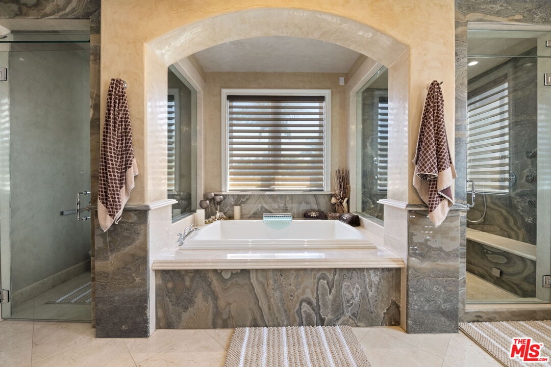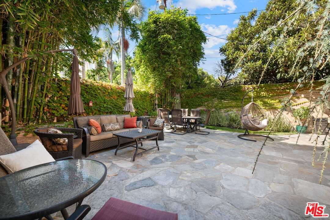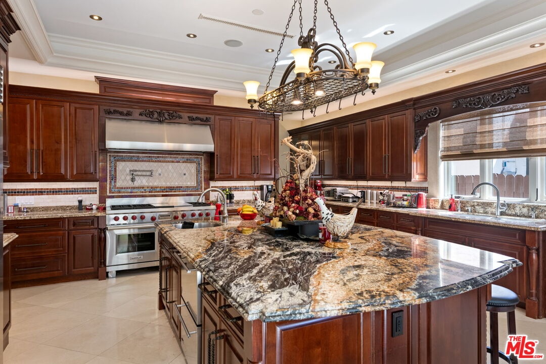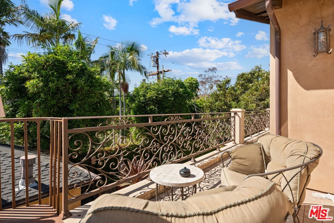 Furnished spacious 6,000+sf 6 bed/7.5 bath Mediterranean custom home with beautiful open floor plan. Prime mid-block location with gated front and auto-gated flag-stone finished driveway and walkway. Enter large living room opening to both dining room and back facing family room with fireplace and French doors to covered patio, tiled yard area and entertainer's outdoor covered kitchen with BBQ and bar area. Double sized chef's kitchen with center island, 2 sinks, all top-of-the-line stainless steel appliances including Wolf range/double oven, wine fridge, built-in oversized refrigerator/freezer, butler's pantry with warming drawer and microwave. Breakfast area overlooking backyard with patio access. stairway to 2nd story is filled with an abundance of natural light. 4 spacious bedrooms upstairs all with ensuite updated marble and tile-finished bathrooms, front facing bedrooms with balconies and Century City views. Primary suite with fireplace, french doors to balcony with treetop and sunset views and large custom closet complete with island of dresser built-ins. Primary bathroom with separate spa tub and steam shower, dual basins. Lower level of home with large open game room/den including projector tv and 2 additional bedrooms with ensuite bathrooms and powder room. Additional features include marble and hardwood flooring, Venetian plaster walls, wired sound, 4 zoned ac/heat, solar panels, alarm system, laundry room with storage on 2nd story level. Beautifully maintained. Prime location close to Westfield Century City Mall, UCLA and Westwood Village and Beverly Hills. Westwood Charter School. Available beginning