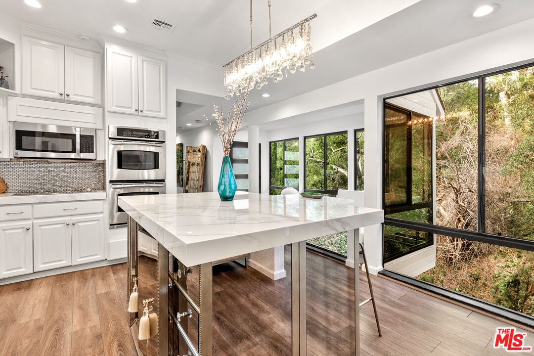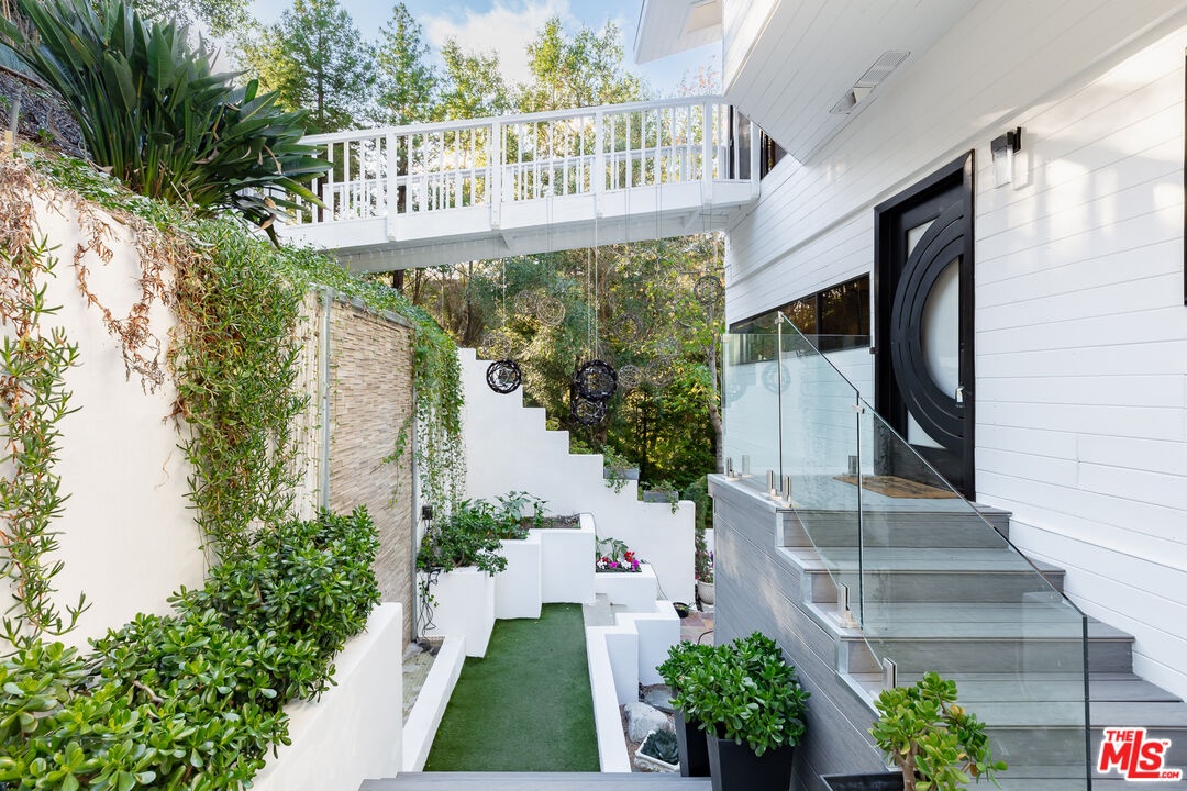 Relish ultimate privacy in this woodsy retreat hidden away from it all: Tucked behind gates and up a private, approximately 200-foot-long driveway rests this charming Benedict Canyon hideaway, positioned amidst mature trees and lush vegetation. Live a lifestyle in divine harmony with nature and views of verdant greenery from every room. Inside, wide-plank floors lead from each space to the next as large picture windows and walls of glass welcome natural light within. A greenhouse breakfast nook is adjacent to the remodeled kitchen, with its beautiful center island, dazzling backsplash, stainless-steel appliances, bright white cabinetry, and on-trend fixtures and finishes. The formal living room is centered by a decorative fireplace and offers wraparound views of the grounds and the surrounding hillside environment. The primary suite is a serene refuge and has a bathroom with dual-sink vanity and separate shower and jetted tub as well as a walk-in closet. Other bedrooms provide a unique, comfortable treehouse feel reminiscent of summer camps and family vacations. There is also a remodeled guest house with kitchenette, side patio, and bathroom. Numerous outdoor amenities include grassy lawns, rolling hills, meandering cobblestone pathways, a built-in barbecue, pool, spa, lounging decks, water features, and plenty of spaces to relax and dine al-fresco. Located within the attendance boundaries of the award-winning Warner Avenue Elementary School. Welcome home! Also available for lease.