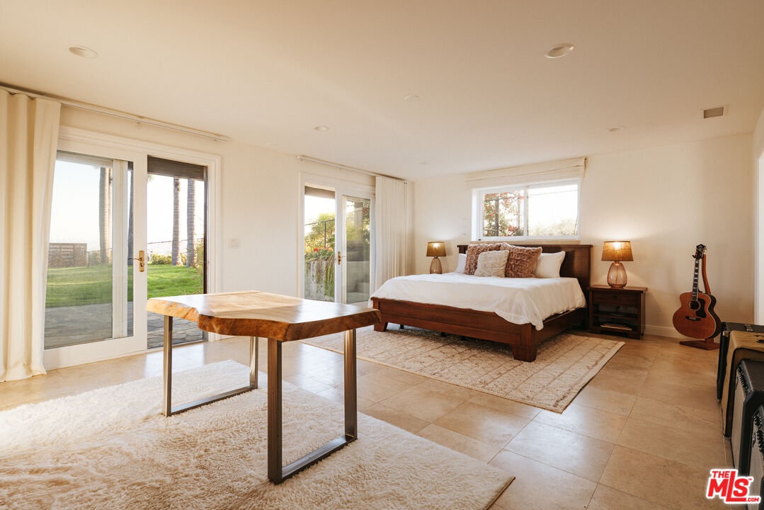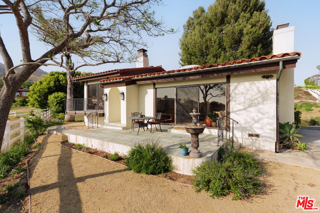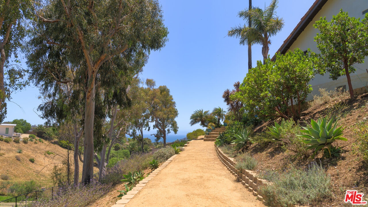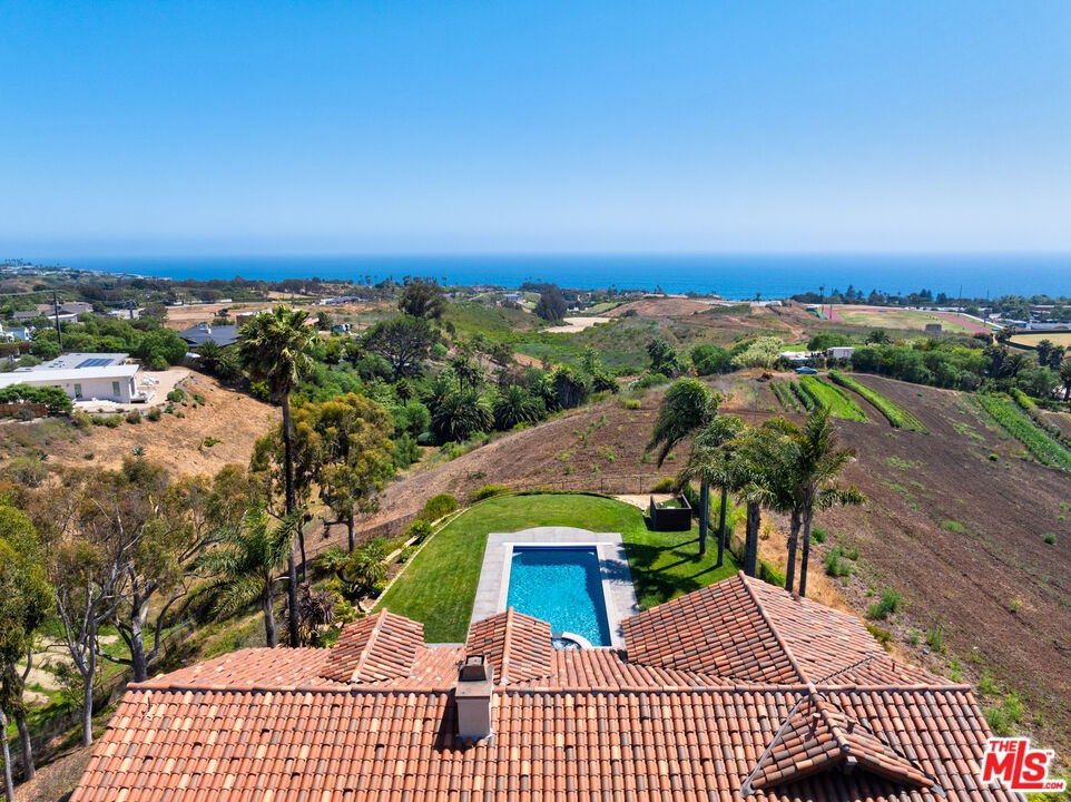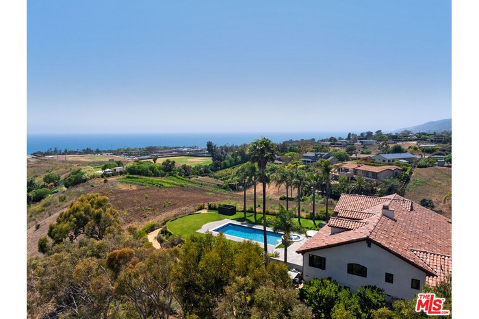 Set atop a private, elevated rolling knoll in prestigious Malibu Park, this reimagined and romantic Modern Mediterranean estate offers elevated coastal living on over two park-like acres of fully usable land with unobstructed ocean views and exceptional privacy. This is a rare opportunity to own a legacy estate that defines luxury coastal living in Malibu. A long, tree-lined driveway leads to a beautifully renovated 4,898 sq ft main residence, showcasing wide-plank white oak floors, custom cabinetry, and a sunlit open-concept layout. The designer kitchen features quartz countertops, brand new appliances and sweeping views of the Pacific. Indoor living spaces flow effortlessly to a covered heated terrace, sparkling saltwater pool, and manicured lawn. The home offers 5 bedrooms and 6 bathrooms across three structures, including a 1,100 sq ft guest house with expansive ocean views, a sun-lit deck off the main bedroom, vaulted ceilings, two brick fireplaces, full chefs kitchen, and a lower level featuring a large bonus room and full bath ideal for extended stays or a private office. A separate 500 sq ft studio offers additional flexible space for a theatre, creative work or wellness. Outdoors, California native landscaping surrounds the property, with sycamore, oak, fruit trees, coastal sage, adding natural beauty and privacy. A vine-draped pergola, tiered fountain, and ocean-facing lounge areas create the ultimate setting for entertaining and relaxation. Additional upgrades include a full-house generator and whole-house water filtration system. Located minutes from Zuma Beach, Malibu schools, and scenic trails, this one-of-a-kind estate is the perfect blend of luxury, nature, and modern California living.
