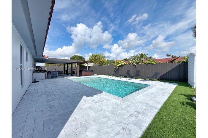 When Only the BEST Will Do! ? Beautiful 4-bedroom, 2-bathroom home that combines comfort, style, and functionality. The property features impact windows and doors, modern, bright, fully renovated bathrooms, and a contemporary kitchen with a central island, built-in microwave, and additional cabinets, equipped with brand-new appliances, gas water heater & gas stove, new AC 2025. Includes a washer and gas dryer, plus a utility sink conveniently located in the 2-car garage. Enjoy LED high hats lighting throughout the interior and exterior, and new tile floors throughout the home. The exterior offers a patio with a new pool (2024), perfect for entertaining, with ideal space for a barbecue and room for a boat or RV. New driveway and barrel tile roof. Located on a quiet street, just 3 blocks from the elementary school and park, which features tennis courts, racquetball, basketball, and a lighted walking path for evening strolls. Don’t miss out. This is your opportunity! NO HOA