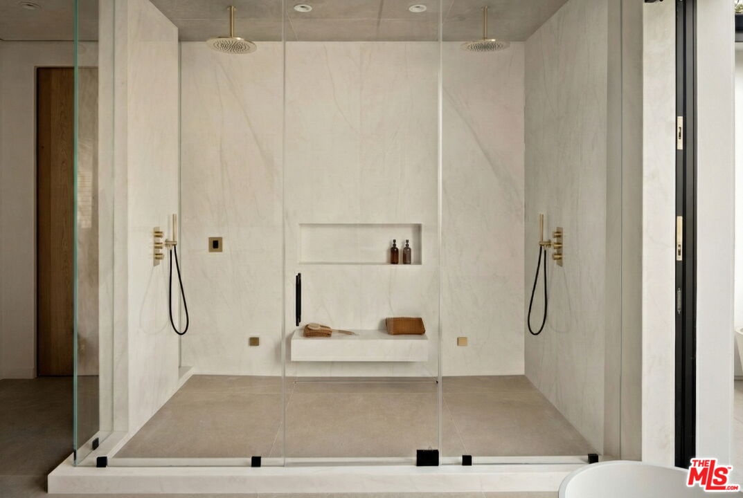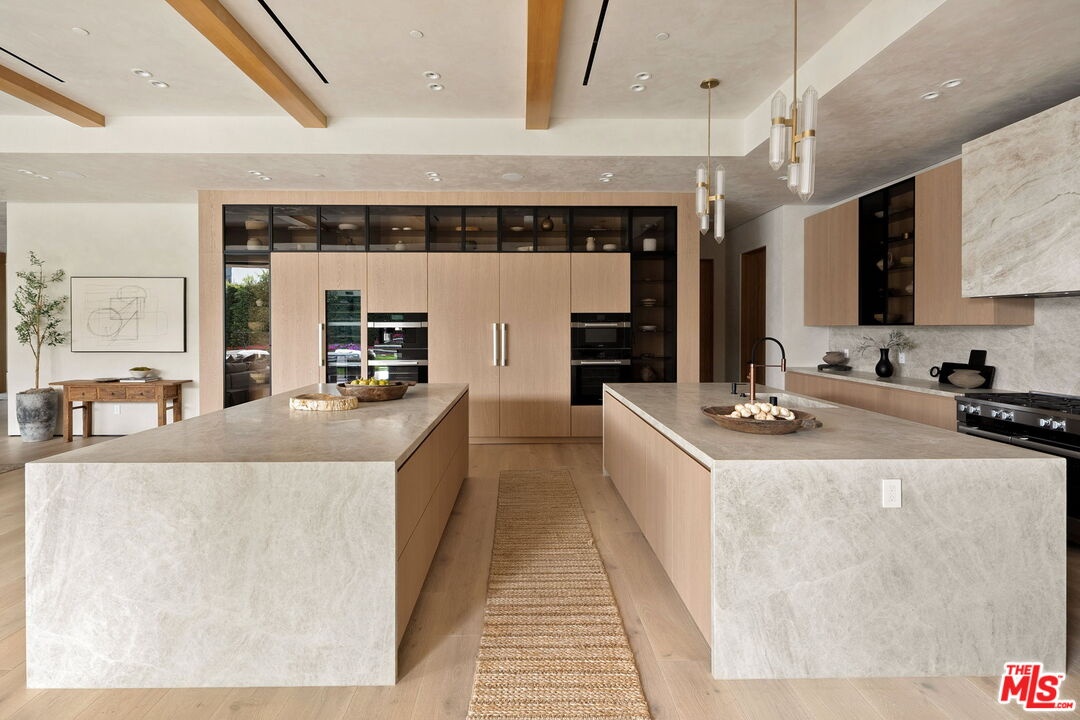 Built with a reverence for scale and serenity, 10386 Strathmore Drive stands as Little Holmby's definitive new construction estate. Set on more than half an acre and enveloped in mature greenery, the more than 12,200 square-foot gated residence unfolds across the main home and a detached 1-bedroom guest house, creating a refined compound designed for elevated living and effortless entertaining. A dramatic, double-height entry sets the architectural tone -- light-filled, sculptural, and meticulously composed. Soft organic textures meet crisp, modern lines, while expansive panes of glass allow in radiant natural light. Every space reveals thoughtful craftsmanship: warm woods, artisan plaster walls, and a curated mix of natural materials that bring depth to the home's contemporary aesthetic. The great room spills out to the backyard through a wall of sliding glass, creating a seamless indoor-outdoor experience. At the heart of the home is a showstopping gourmet kitchen with dual stone islands, a premium suite of Miele appliances, and a fully concealed secondary kitchen ideal for hosting or staff use. An executive office, immersive home theater, gym, and two guest suites complete the main level. Upstairs, the primary suite is designed as a retreat where tranquility takes precedence. A comfortable sitting area and fireplace anchor the bedroom, while a private terrace overlooks the estate grounds. The ensuite bath, inspired by a world-class spa, features a dual steam shower clad in stone, a soaking tub, and dual vanities, accompanied by two boutique-style walk-in closets. Four additional ensuite bedrooms and a spacious family lounge round out the upper level. Outside, the expansive grounds are wrapped in mature privacy hedging and offer a resort-like environment with a saltwater pool and spa, expansive patios, firepit lounge, and outdoor kitchen. The detached guest house offers versatility for hosting, staff, or extended stays, and is complete with a kitchenette, living area, bedroom, and full bath. Two garages, fully integrated smart systems, and gallery-caliber finishes complete the home's extensive offering. Moments from Holmby Park, UCLA, and top-rated schools, the estate represents California living at its finest, where modern design meets timeless prestige.
