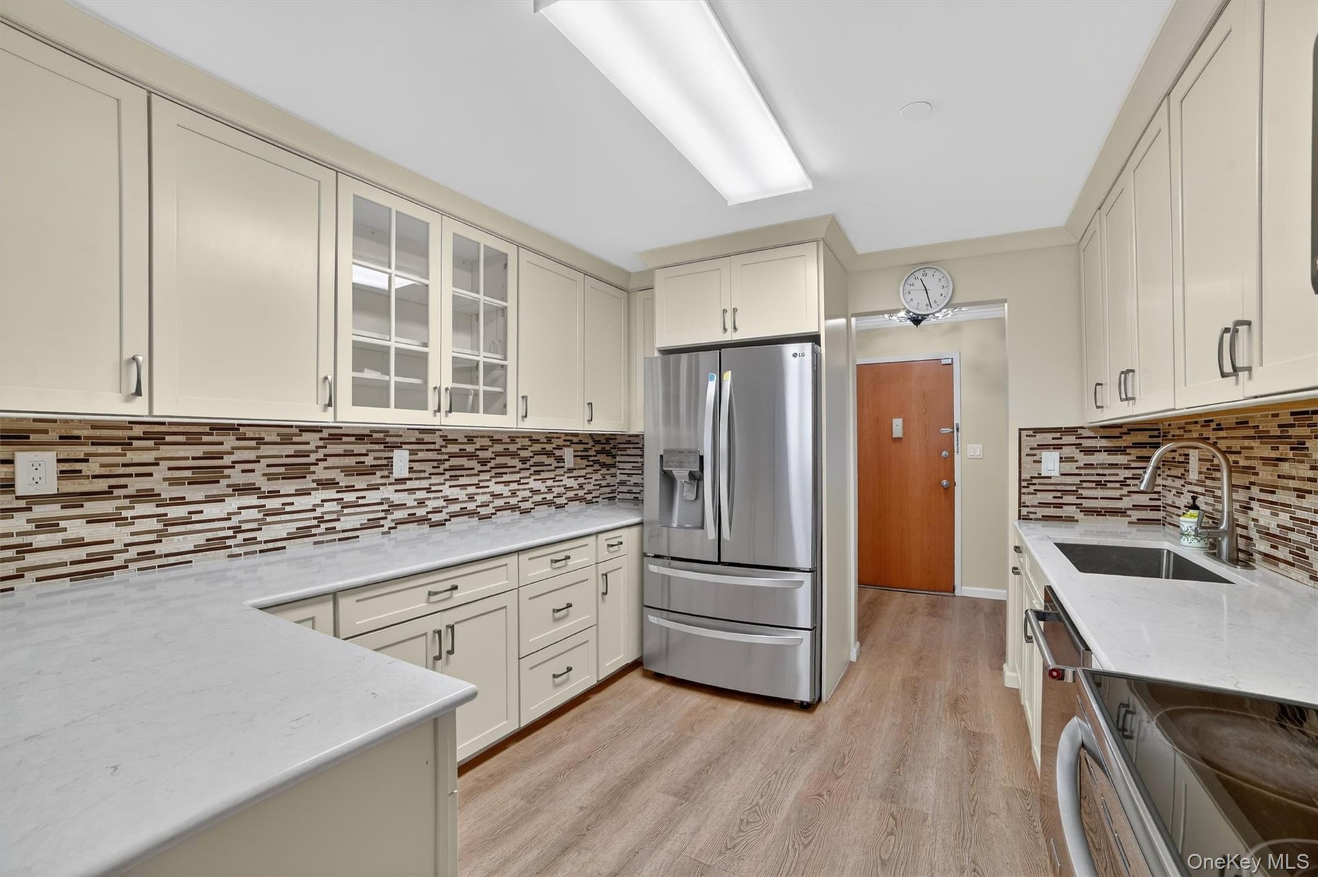 An exceptional Edgemont opportunity awaits. This fully renovated, corner unit is set within the beautifully maintained Scarsdale Woods community, offering an exceptional blend of location, lifestyle, and convenience, Enter into a bright, oversized living room featuring beautiful flooring, oversized windows, and abundant natural light, with direct access to a private terrace—an ideal setting for morning coffee or evening relaxation. The living room flows seamlessly into the dining area and the beautifully renovated kitchen, highlighted by sleek modern finishes and thoughtful design. The en-suite primary bedroom is a true private retreat, offering a generous walk-in closet and a beautifully updated, spa-inspired bath. A spacious second bedroom provides flexibility for guests, a home office, or additional living space, while the second full bath has also been tastefully renovated, completing this sophisticated, move-in-ready residence. Additional highlights include two assigned parking spaces (one indoor and one outdoor) Enjoy easy, walk-in access (no elevator needed) and the benefits of a beautifully maintained community with amenities that include an outdoor swimming pool, playground, and a private access gate to the award-winning Edgemont schools. Hot water and common area maintenance are included in the common charges, adding exceptional value and peace of mind. A rare opportunity to enjoy luxury, lifestyle, and location in one of Edgemont’s most sought-after communities.