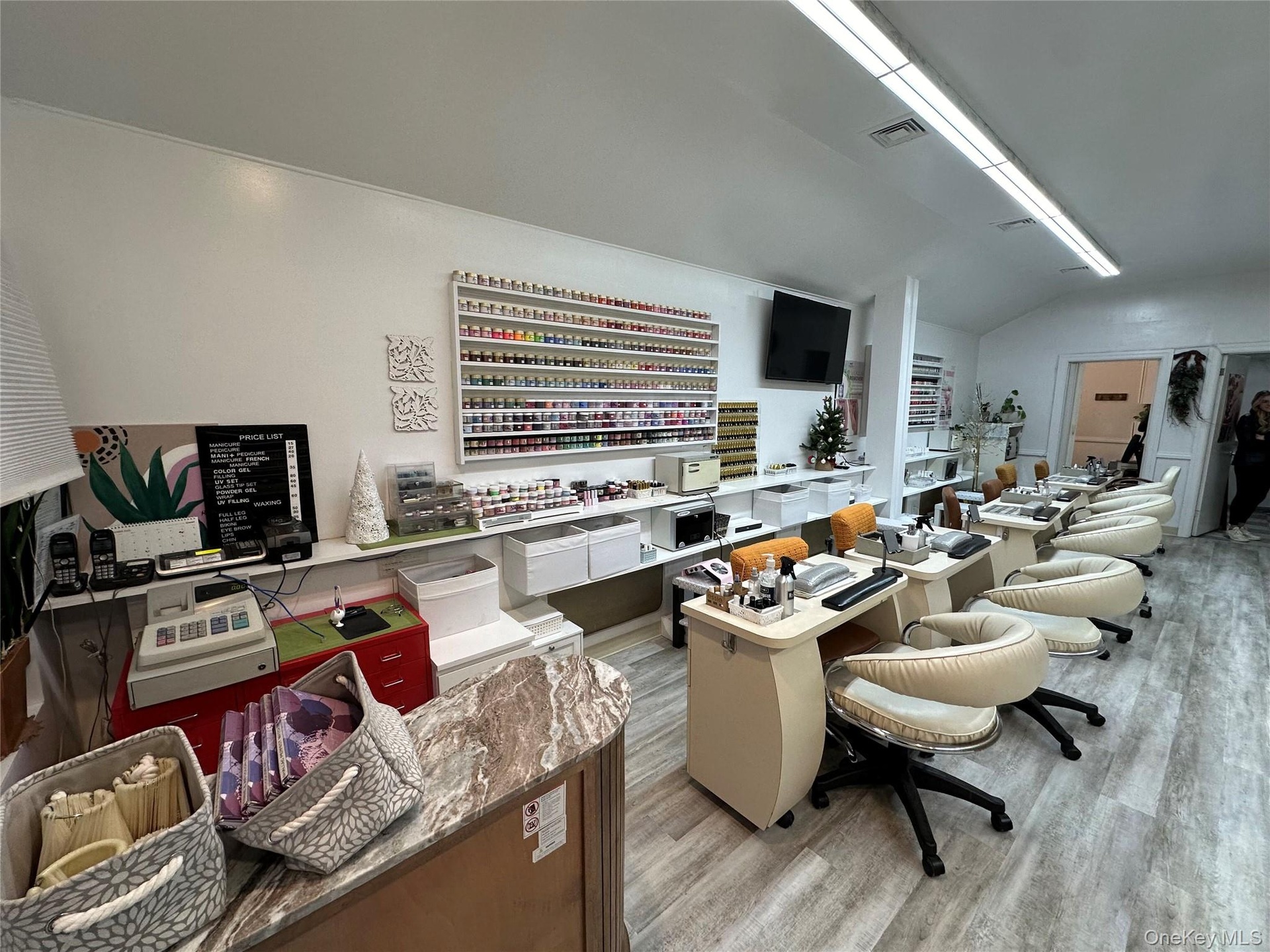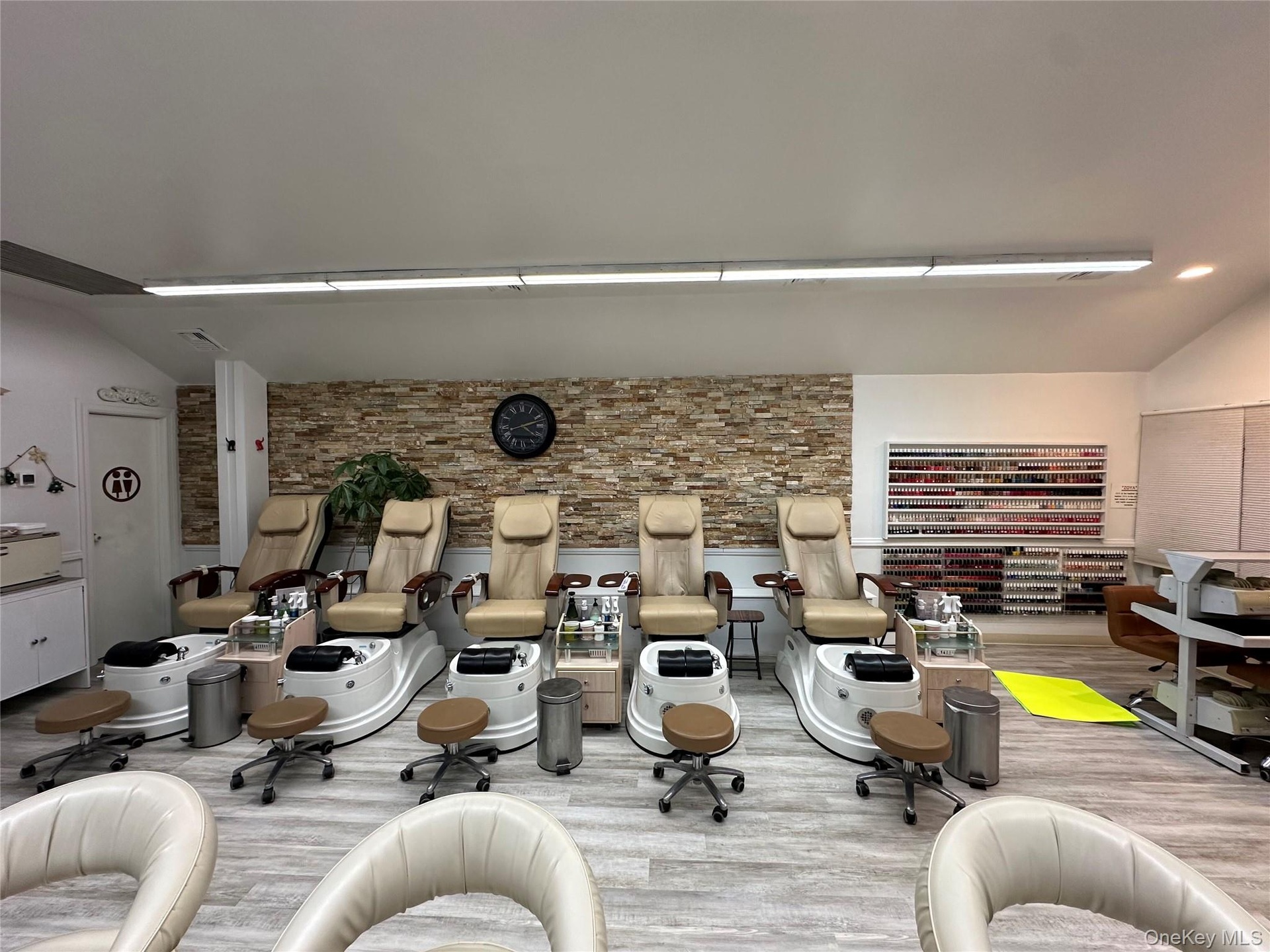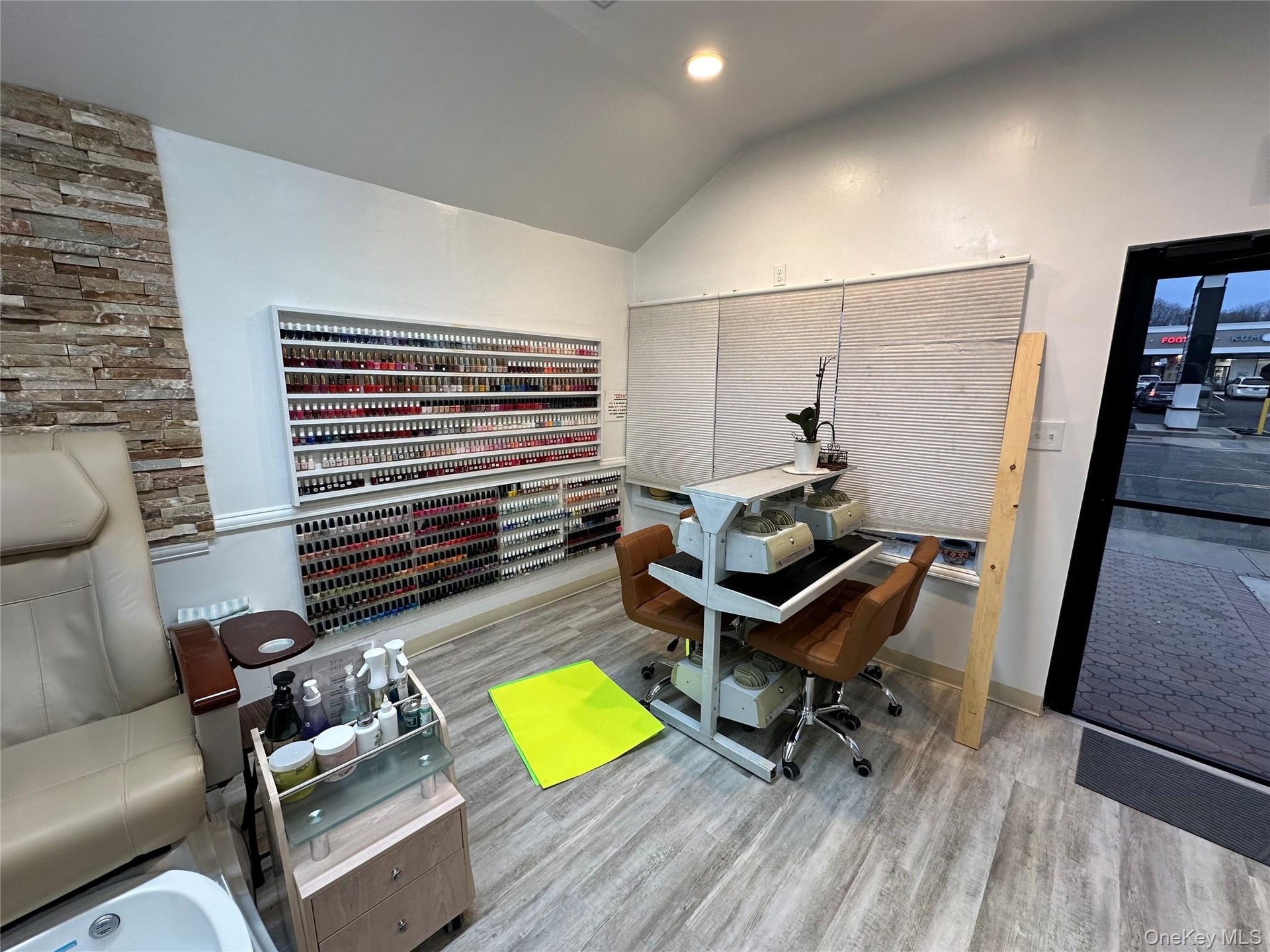 Prime corner commercial space located at 120 Jackson Avenue in the heart of Syosset, offering exceptional visibility and exposure. Currently configured as a turn-key nail salon, this recently renovated space is ready for immediate operation with nothing to do but open the doors. The layout features a spacious main salon area, a private waxing room, a bathroom, and rear entrance. Renovated within the last year, this highly visible corner location is ideal for an owner-operator or investor seeking a move-in ready business space in a strong Syosset location. Key Money to be discussed- Taxes billed quarterly and Utilities separate. Close to shopping and train station.