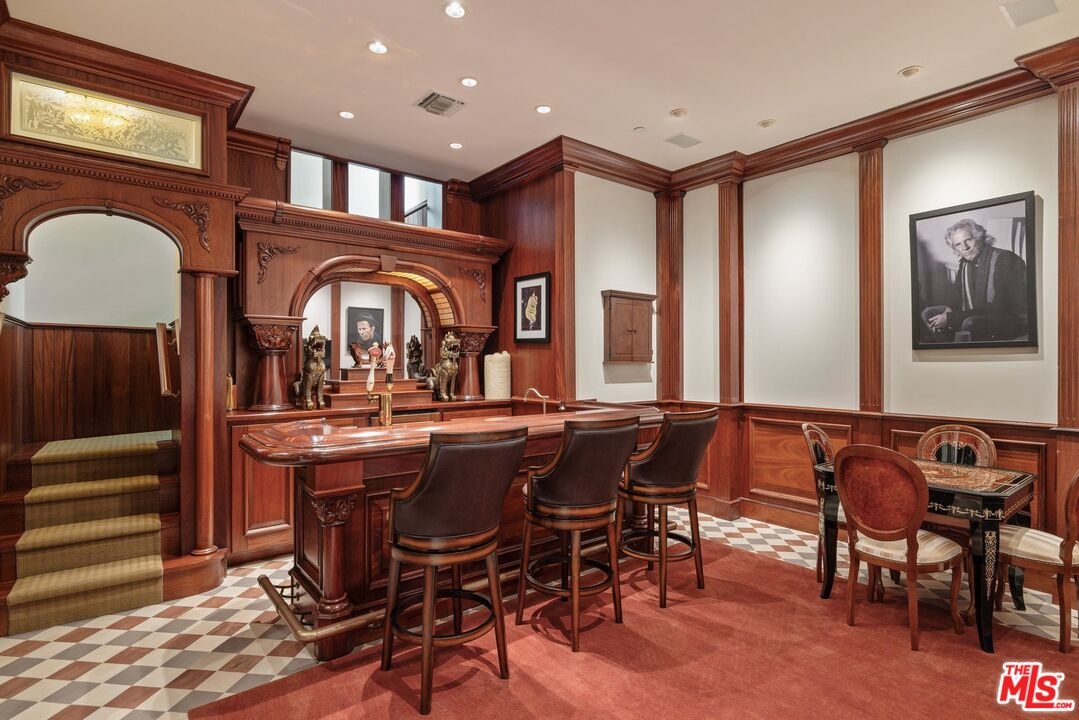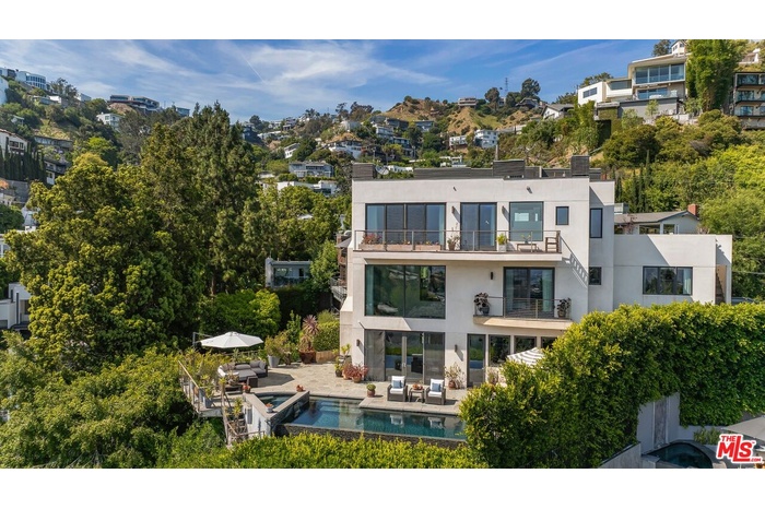 Perched above the iconic Sunset Strip, this entertainer's paradise masterfully balances form and function with an open floor plan and seamless indoor-outdoor flow, ideal for California living. A grand entry leads to a dramatic double-height living room with soaring 30-foot ceilings and walls of glass that frame panoramic views while bathing the space in natural light. The professional-grade chef's kitchen is appointed with dual sinks, dual refrigerators, a separate breakfast area, soapstone countertops, and premium Wolf and Sub-Zero appliances. A formal dining room with French doors opens directly to the outdoors, creating an effortless transition for entertaining. Throughout, solid walnut flooring and lofty ceilings lend a sense of timeless sophistication.The oversized primary suite is filled with natural light and boasts its own fireplace, an expansive walk-in closet with skylight, and a spa-inspired bath with dual sinks, soaking tub, heated tile floors, and a dual shower with exquisite mosaic tile detail and a picture window perfectly capturing the city skyline. Three spacious guest bedrooms each feature en suite bathrooms, providing exceptional comfort and privacy for visitors.The lower level of this home provides an incredible escape with a large saloon appointed with a mahogany bar, a 14-seat movie theater and spacious gym. The rooftop deck and infinity pool seem to hover above Los Angeles, offering a truly breathtaking vantage point for unforgettable evenings.