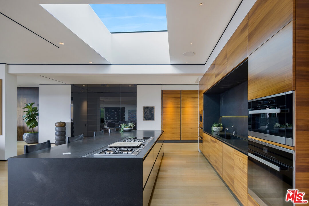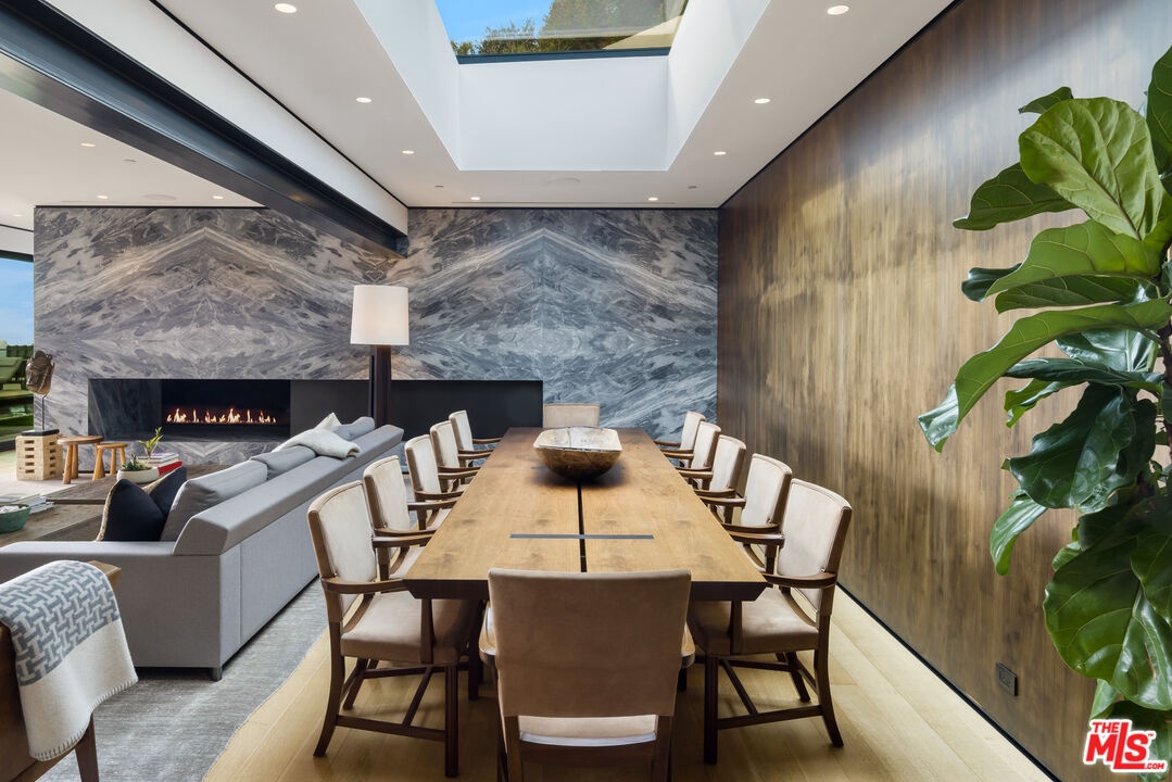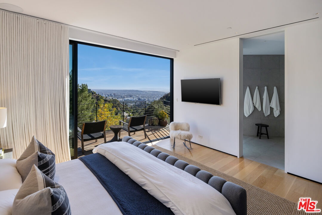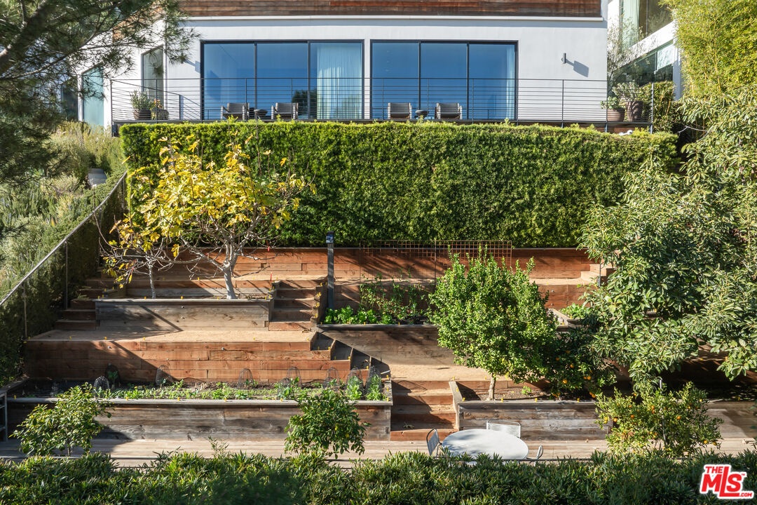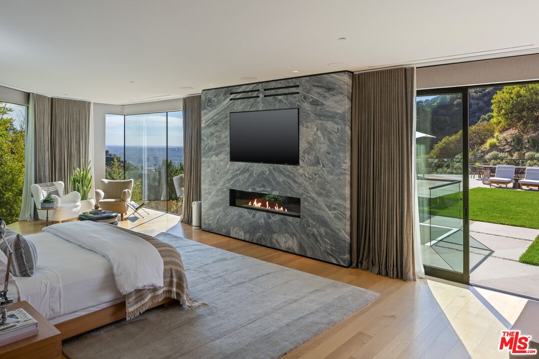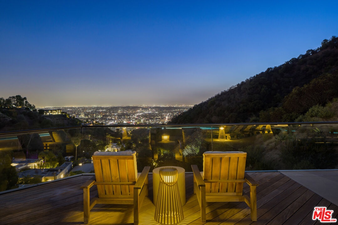 Tucked away in the prestigious Bird Streets, this private contemporary compound blends refined design with absolute privacy. Thoughtfully reimagined by the renowned AD100 firm Clements Design, the residence spans over 8,000 square feet on a generous 23,100-square-foot lot, offering a seamless indoor-outdoor lifestyle framed by sweeping city views through disappearing walls of glass.Light-filled living spaces include an airy great room with a striking fireplace and skylights that enhance the home's serene atmosphere. The chef's kitchen is equally impressive, outfitted with Miele appliances, an oversized island, WineMate-cooled wine wall, and a full butler's pantry.The primary suite is a calming retreat with a fireplace, motorized shades, direct access to the yard, and a spa-inspired bath featuring a soaking tub, glass-enclosed steam shower, and a custom walk-in closet. Designed for entertaining, the outdoor areas include an 80-foot pool with a dramatic marble waterfall, spa, multiple lawns, and a tiered deck with a thriving vegetable garden by Heart Beet Gardening. The lower level features a private guest suite, gym with separate entry, home office, and a state-of-the-art theater with lounge and bar. Additional highlights include a library with floating walnut shelves, secondary lounge with built-in bar, Crestron smart home system, and a resurfaced garage. Moments from the Sunset Strip and Beverly Hills, this one-of-a-kind estate offers the ultimate blend of luxury, privacy, and access to the best of Los Angeles.