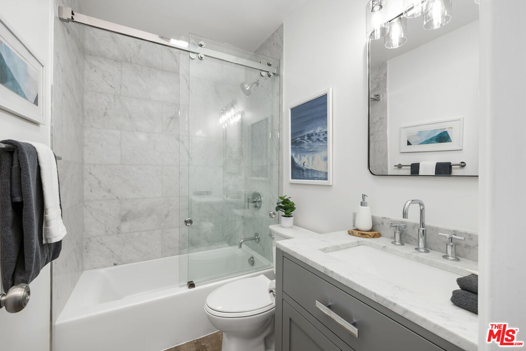 *** FIRST TIME EVER ON MARKET *** With the New Year comes a unique opportunity to acquire what has never been offered before. Come explore this beautifully renovated and sunny 2br 2 ba 2nd floor corner unit with 3 sides of directional exposure! Stunning kitchen features include extended wall to wall Sono Reale PentaQuartz Kitchen countertops w/ ceramic tile backsplash paired with modern shaker cabinets with full extension glides and self closing drawers, GE dishwasher, 36" Thor range, GE double door fridge, iKitch hood, abundant storage and beautiful tree and SM hill views. Additional amenities include smooth ceilings, recessed lighting, LifeProof flooring, Carrera tiling and Arabescato marble countertops in both bathrooms, double pane windows, all new blinds throughout, individual heat controls for each bedroom and living room, and more. Building amenities include pool, sundeck, controlled access entrance, gated and covered parking, bicycle storage room, professional property management and earthquake insurance to boot, all in super close proximity to Hotchkiss Park, SaMo High, 3rd St. Promenade, Main St., Crescent Bay Park, the bike path, and of course - THE BEACH. This is the first time this unit has ever been on the market so come explore all the best that Santa Monica / Westside beach living has to offer. EZ to show and ready to go!