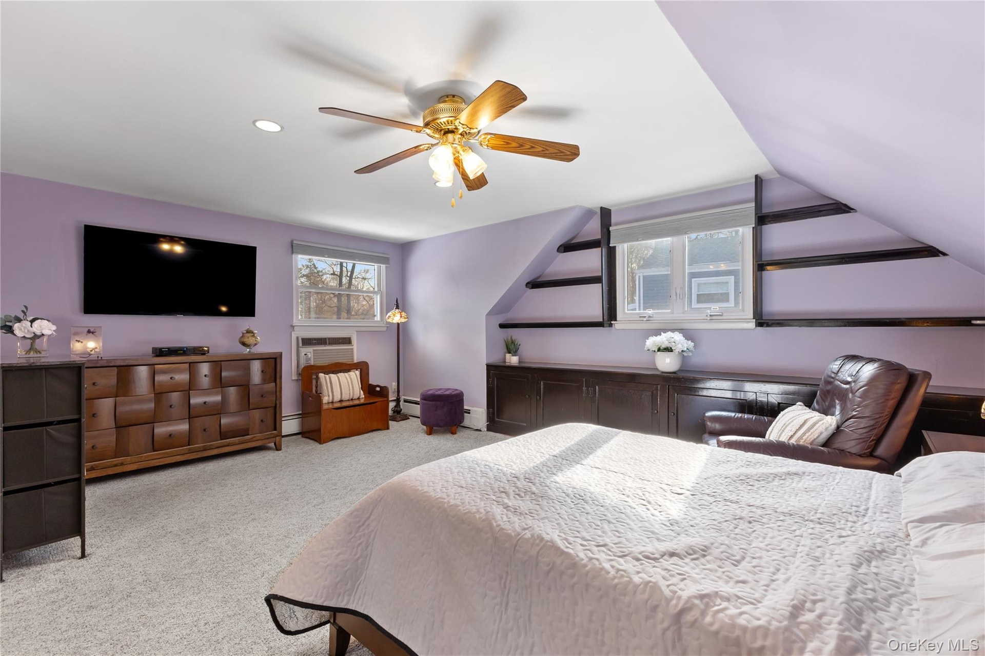 The upper level is a true retreat, featuring a spacious primary suite designed as a private oasis. Unwind in the en-suite bath with jetted tub, enjoy the ease of a walk-in closet with a custom built-in wardrobe, and appreciate the character of built-in shelving—a serene space to start and end your day.