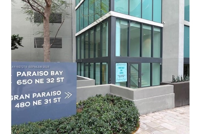 PREMIER CORNER RETAIL / OFFICE SPACE – FIRST TIME AVAILABLE FOR SALE OR LEASE AT $6000/m full service gross. Completely Built-Out Ready for Immediate Move-In and part of Gran Paraiso – Paraiso Bay Master Community. This one-of-a-kind, two-level space offers premier visibility at the entrance of the Paraiso District. Featuring approximately 815 sq. ft., the space has direct access to the Gran Paraiso lobby and garage plus immediate exposure to 2,500+ Paraiso District residents. Corner unit is ideal for a service/retail oriented business seeking exceptional foot traffic with a built-in customer base. Prefer complimentary business for the community. 2-Level multi-Functional Layout, Includes open retail/office area, upper mezzanine office, private bathroom, independent Temperature Control AC/Heat Exchanger Unit, one (1) assigned parking space included, 1/2 Bath travertine Floors throughout, Power Blinds, approx. 20' height, New Paint and base Water Sealant.