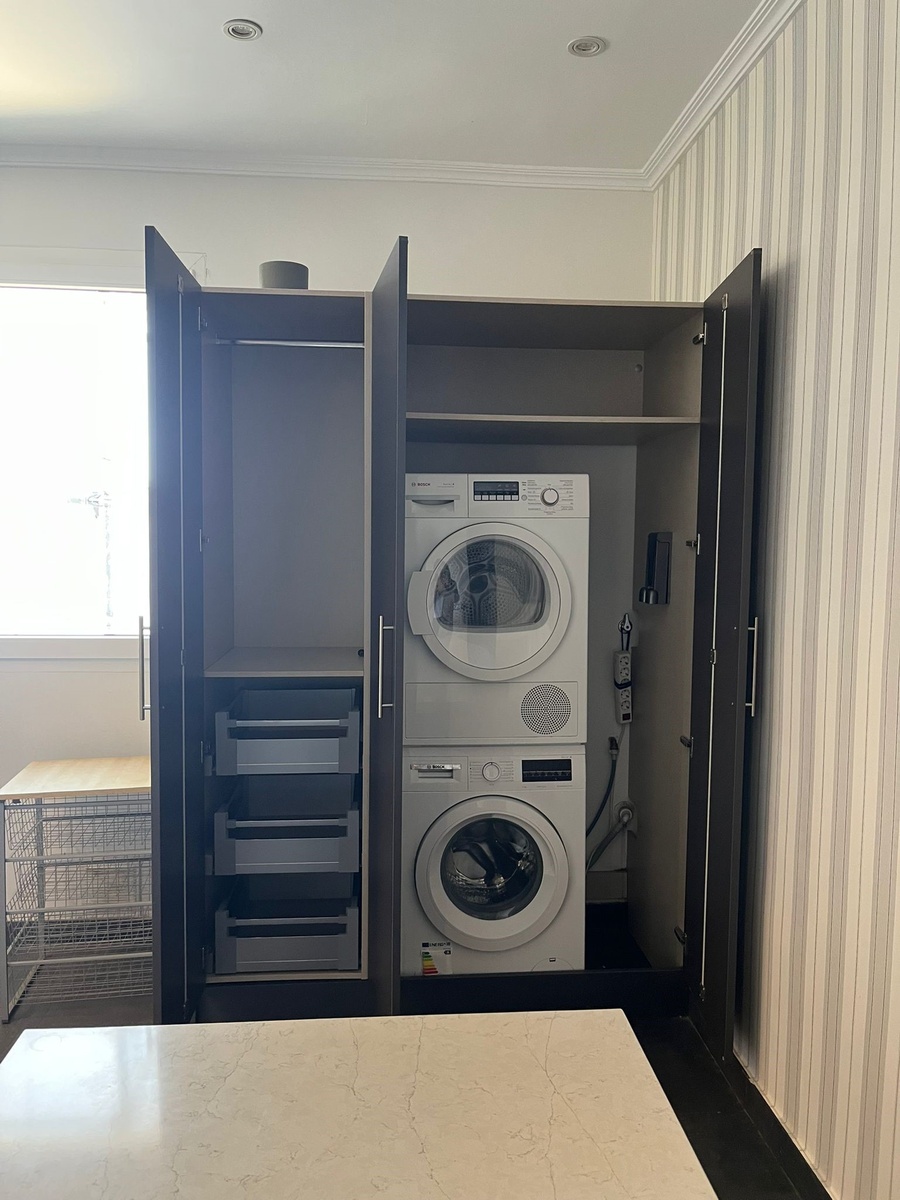 Designed to accommodate refined living and seamless functionality, the property features both a main entrance and a separate service entrance, ensuring privacy and discretion throughout.