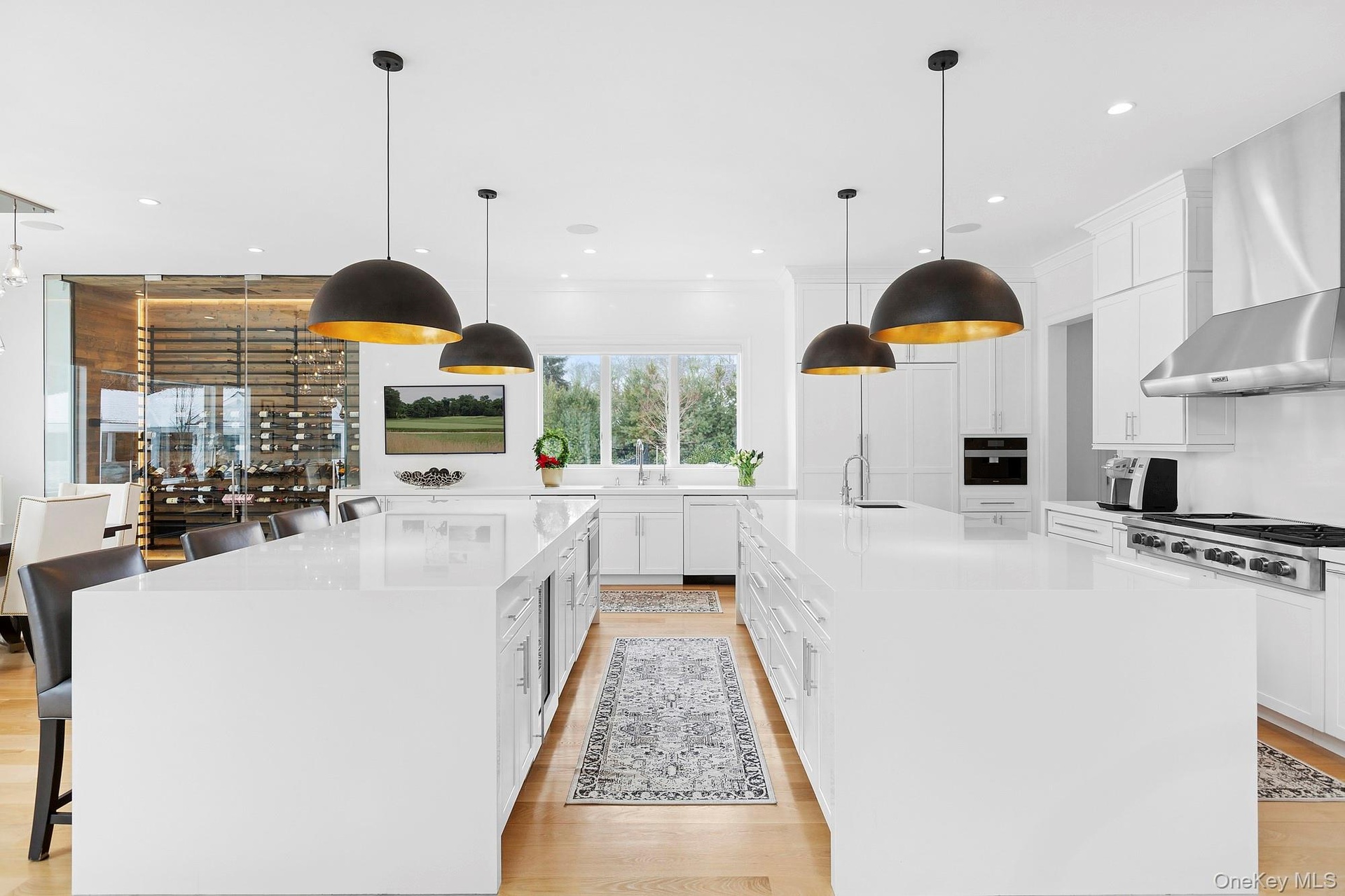 Behind a gated entry on 2 manicured acres, this exceptional estate is located on a serene cul-de-sac, south of the highway, in the Village of Quogue. Meticulously designed in 2023 with every imaginable detail and amenity, this approx. 11,300-square-foot home spans 3 levels, offering an unparalleled level of luxury and comfort. Featuring 8 bedrooms, 11.5 baths, soaring 10-foot ceilings, an elevator, private east and west wings, a fully finished lower level, gunite pool, pool house, pickleball and more, this home surpasses every expectation of grandeur. The main level welcomes you with a spacious covered porch, leading to a breathtaking double-height entry and living room with coffered ceilings, which is beautifully divided by a stunning free floating wood staircase and catwalk balcony. A floating see-through gas fireplace separates the living room from the family room, which opens seamlessly to a covered indoor/outdoor porch with retractable screens and an adjoining deck lounge. The sophisticated dining area, featuring a striking 15' temperature-controlled, glass-enclosed wine room, is adjacent to the oversized chef's kitchen, which offers top-of-the-line appliances, including a double wall oven with convection, two dishwashers, a beverage cabinet, double islands with quartz waterfall countertops, a counter-to-ceiling backsplash, extensive pantry cabinetry with pullouts, and easy access to the mudroom. The main floor also includes a home office with built-in cabinetry and ensuite bath, the luxurious junior primary suite, a designer-like powder room, pool bath, laundry room, and 3-car garage. On the second level, a private primary wing to the east boasts an expansive layout with a fireplace, tray ceiling, "morning kitchen", a grand walk-in closet with large island, private balcony, and a lavish bath with double vanities, soaking tub and glass shower. To the west, 4 well-appointed ensuite guest bedrooms, all with walk-in closets, share a spacious sitting room, stackable washer and dryer, and elevator access. The finished lower level offers 10-foot ceilings throughout, showcasing a massive recreation room with a full wet bar, a professional-grade movie theater, glass enclosed gym, sauna, steam room, walkout patio with a heated stone floor, a mahogany spiral staircase to the backyard, plus 2 additional bedroom suites. The outdoor space is equally impressive with a pickleball court and the 45' heated gunite pool, with a spa, waterfall, "beach area", and automatic cover. Surrounding the pool is a stone patio, with a built-in kitchen, outdoor double-sided fireplace, and the large pool pavilion with its own full bath, closet and laundry. Additional features include a smart home system, an integrated generator, geo-thermal heating, central vac, electronic shades, custom millwork and closets, floor to ceiling tile in the bathrooms, indoor/outdoor speakers, landscape lighting, water filtration, security system, and an irrigation system which is run by the weather forecast and is Wi-Fi controllable.