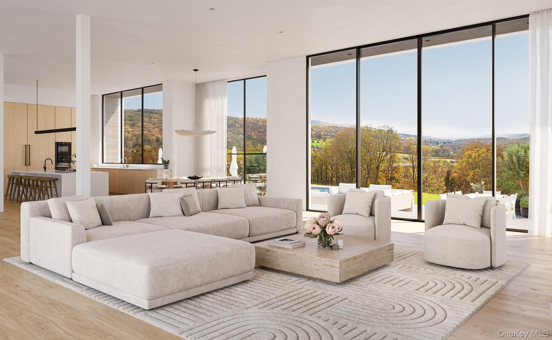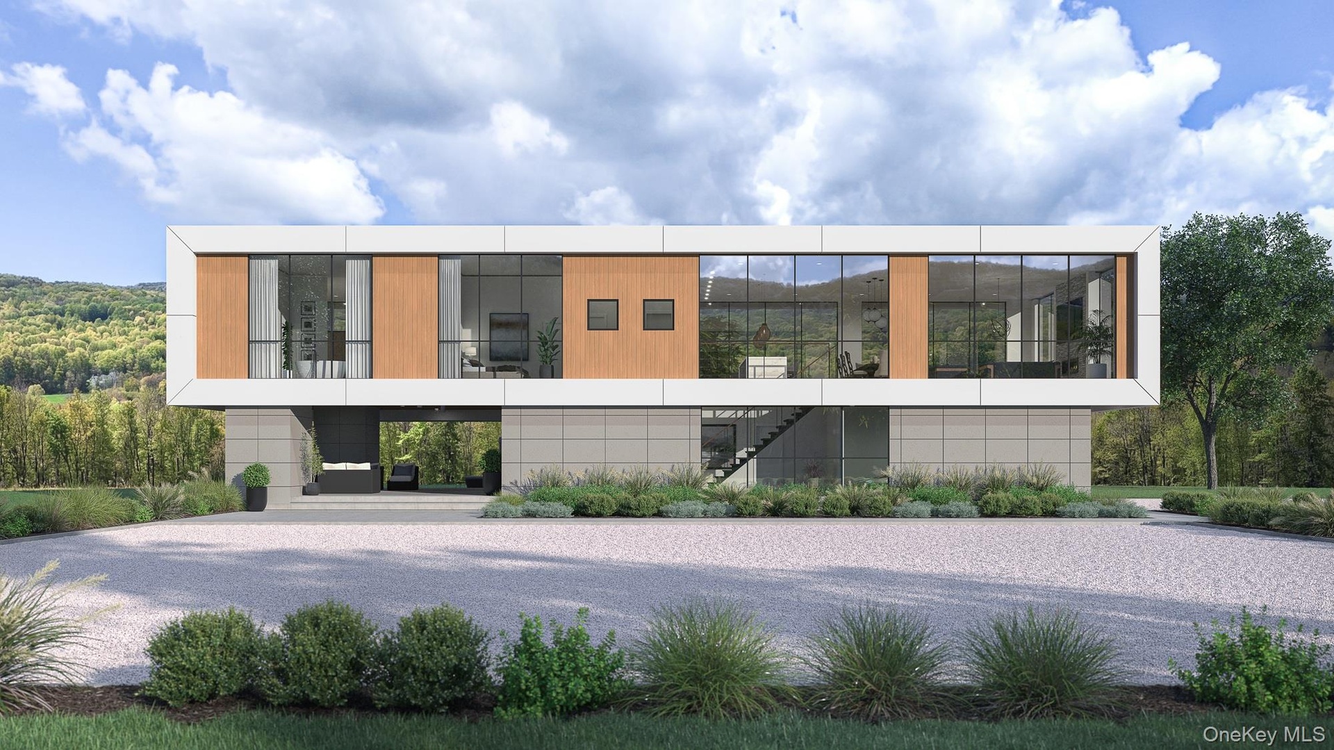 Perched above the Clove Valley just minutes from the Village of Millbrook, this exceptional modern residence is designed to celebrate light, landscape, and elevated living in the heart of the Hudson Valley. Set on 51.38 acres of rolling countryside, the home offers breathtaking, panoramic views and a rare sense of privacy, while remaining conveniently close to village amenities. The proposed 3,542-square-foot design features four bedrooms and four and a half bathrooms, thoughtfully arranged to maximize views and flow. Soaring ceiling heights—12 feet on the upper level and 10 feet on the lower level—create an airy, gallery-like atmosphere throughout. Expansive walls of glass frame the Clove Valley below, making the landscape an integral part of the living experience. Designed for both daily living and entertaining, the home includes a dedicated gym or media room, and open-concept living spaces that extend seamlessly to outdoor dining and kitchen areas. The entire southern elevation features a covered terrace with access from public spaces, as well as the primary suite, and guest suite. Opposite the hall is another en-suite guest room. A 20’ x 40’ pool anchors the outdoor experience, offering a front-row seat to the surrounding scenery. A three-car garage adds convenience without compromising the home’s clean, modern aesthetic. All BOH approvals and building plans are in place, allowing for a streamlined path to construction. As currently designed, the residence is highly efficient. Alternative configurations are also available at higher price points, offering flexibility to further tailor the home to your vision. Just ten minutes from Millbrook’s charming village center, this remarkable offering combines cutting-edge modern design, environmental responsibility, and one of the Hudson Valley’s most dramatic settings.