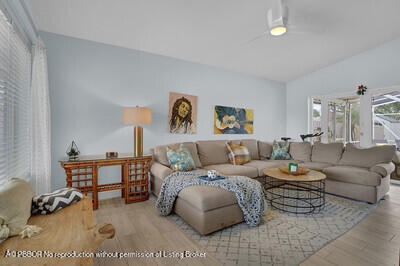 This beautifully upgraded vaulted ceiling mid century single family home in Palm Beach Gardens features 3 bedrooms and 2 bathrooms, with no HOA fees.