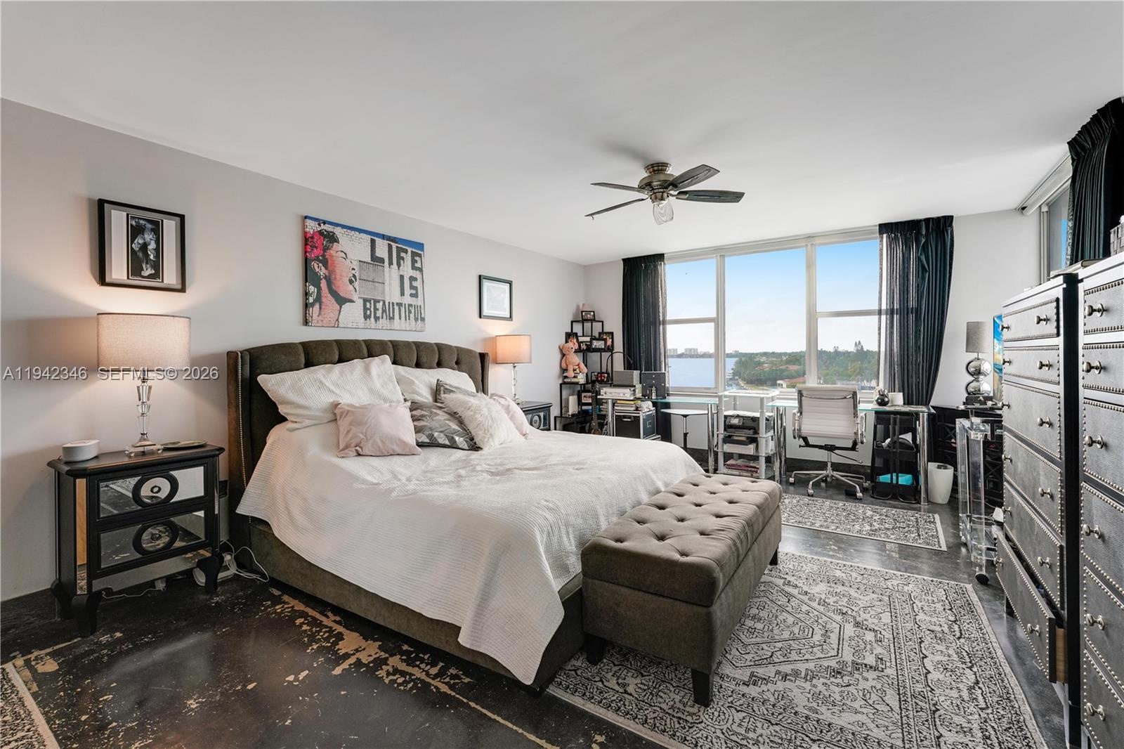 Beautifully renovated 2-bedroom, 2-bathroom penthouse corner residence offering sweeping views of the Indian Creek Golf Course, Intracoastal Waterway, and the Miami skyline. This bright and airy unit features an excellent split floor plan with sleek concrete floors throughout, enhancing its modern, clean aesthetic. The residence has been thoughtfully upgraded with a custom kitchen, custom closet cabinetry, and stainless steel appliances, and benefits from abundant natural light thanks to its corner exposure. Additional features include laundry inside the unit and hurricane impact doors and windows, providing both convenience and peace of mind. The building is exceptionally well maintained and has completed extensive recent renovations, including a new roof, seawall, boat dock, balcony railings, common area A/C, exterior painting, and more, all finalized as part of the 50-year recertification. Ideally located within walking distance to the beach, Bal Harbour Shops, neighborhood shopping, and dining options. The property is situated within the highly desirable A-rated Ruth K. Broad K-8 school district, with the community center and library just steps away.