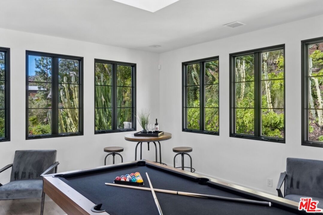 A signature Laurel Canyon Gated Estate Compound on 3/4 acre of land. SELLER WILL CONSIDER RATE BUYDOWN OPTIONS AND/OR SELLER FINANCING. Situated on a quiet cul-de-sac street, this newly completed and reimagined residential compound is located only 5 minutes from the center of the Sunset Strip. Enter through private gates to the tranquil hillside setting surrounded by flat yard and gardens spread over approx. 3/4 acre. Once you enter the 2 story Entry Hall you are immediately welcomed by a traditional floorplan with a substantial Living Room with French doors opening to nature. It feels like a virtual Treehouse atmosphere with complete privacy. Also off the main hall is a dedicated Dining Room overlooking the sunny green lawn and tall cactus garden. High ceilings and endless windows prevail throughout the interior. Venture into the open-concept kitchen and family room, featuring a cook's kitchen with large pantry and convenient built-in breakfast nook. Access the al-fresco dining terrace from Kitchen or Din Rm offering a retreat with a lion's head water fountain, suggesting a total vacation feel. Heading upstairs, you will be greeted by a large Lounge area, billiards / ping pong room with a Study area adjacent. Nearby is a spacious Screening Room, Recording Studio, which also doubles as a 3rd large lounge area in this home. Primary Bedroom Suite provides custom wrought-iron windows, balcony terrace overlooking serene greenery, and a significant bathroom with obsidian tub and walk-in closet. Head outside to a charming hillside pathway leading to a sun-soaked Pool, Spa and Cabana which is open to endless canyon city and canyon views.--even a peek at downtown LA skyline.