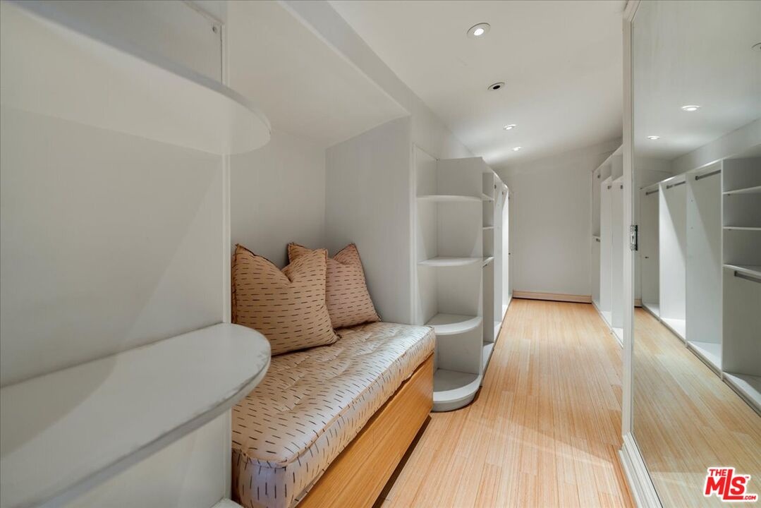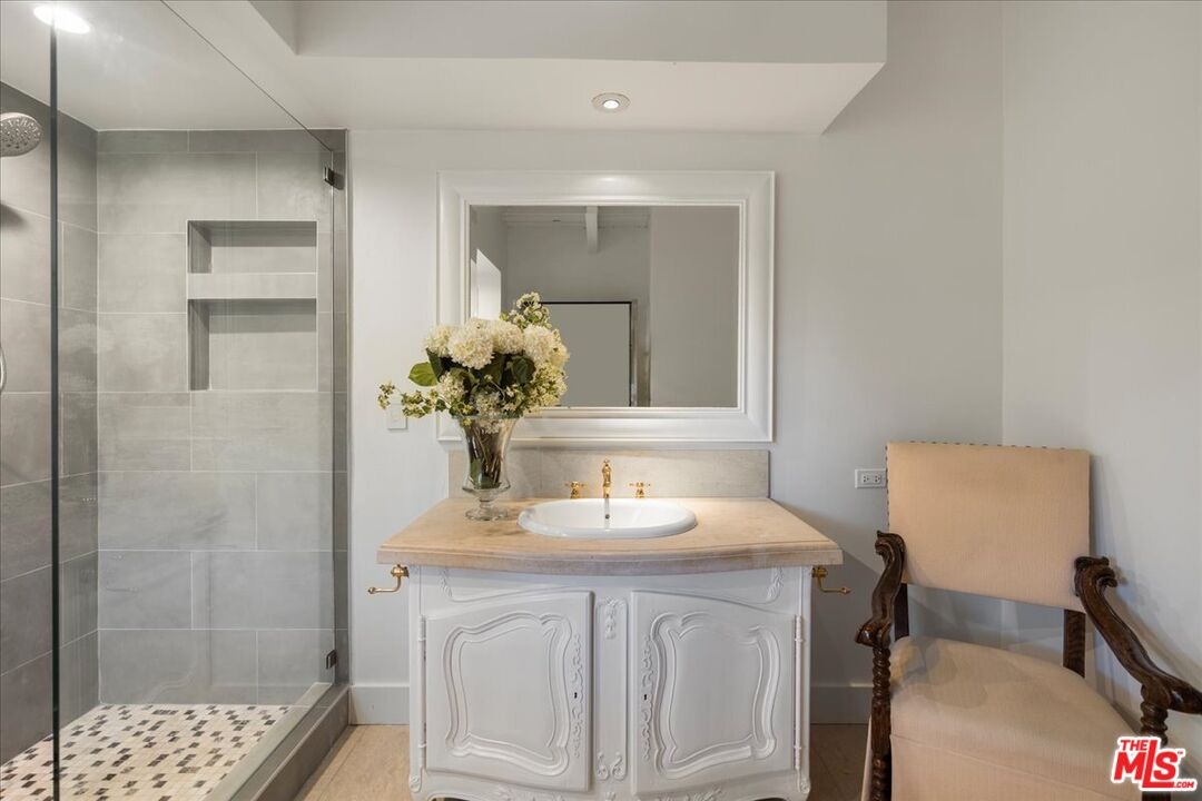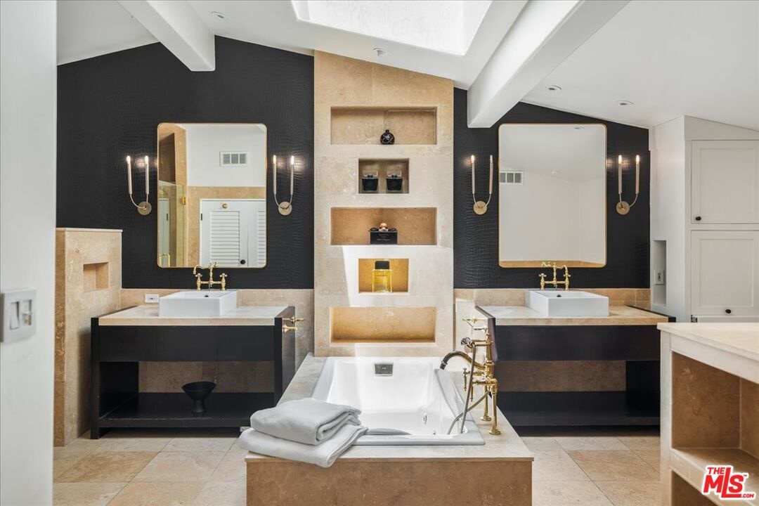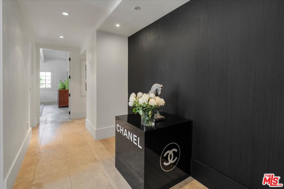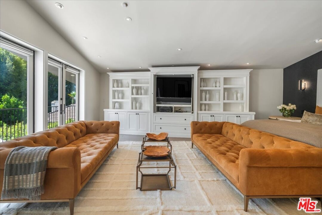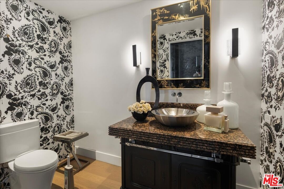 The Weinhart Estate. For the first time in nearly three decades, this rare mid-century jewel comes to market. Set on an elevated corner lot in the tranquil hills above the flats, the home offers the perfect blend of privacy, pedigree, and location. Clean mid-century lines, soaring beamed ceilings, and walls of glass capture panoramic canyon views while seamlessly merging indoor and outdoor living. The residence unfolds with a dramatic pivoting front door, expansive living spaces anchored by a striking stone fireplace, and a 40-foot chef's kitchen outfitted with a 12-foot island, dual Wolf induction ranges, Sub-Zero refrigeration, and book-matched statuary marble. A marble-topped wet bar, sophisticated den, and thoughtfully designed entertaining areas reflect timeless mid-century glamour. Upstairs, the skylit primary suite features a private balcony, marble fireplace, dual walk-in closets, and a spa-like bath. Additional guest suites echo the home's refined aesthetic. Outside, lush landscaping surrounds a Pebble-finish pool, built-in barbecue, and multiple terraces for alfresco dining and lounging. An extraordinary opportunity to own an authentic piece of mid-century style in one of Beverly Hills' most coveted settings just moments from the iconic Beverly Hills Hotel and the world-renowned shops and dining of Rodeo Drive.