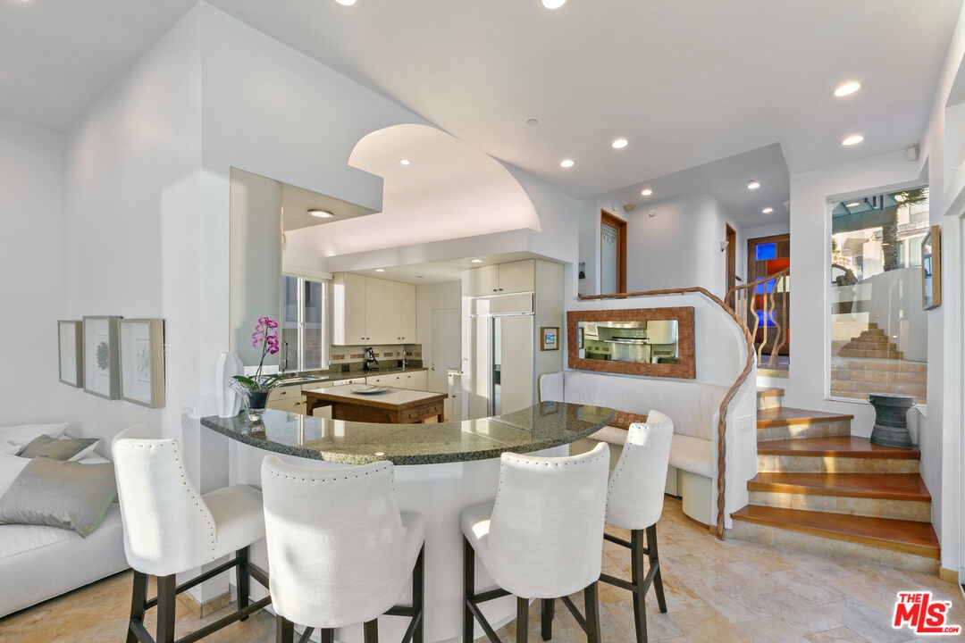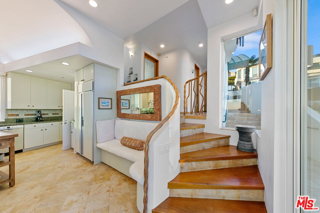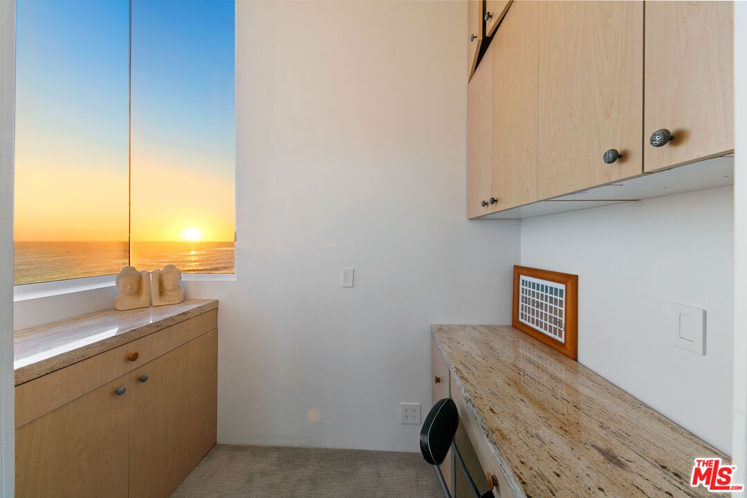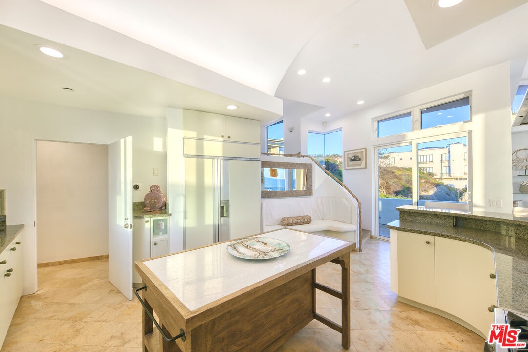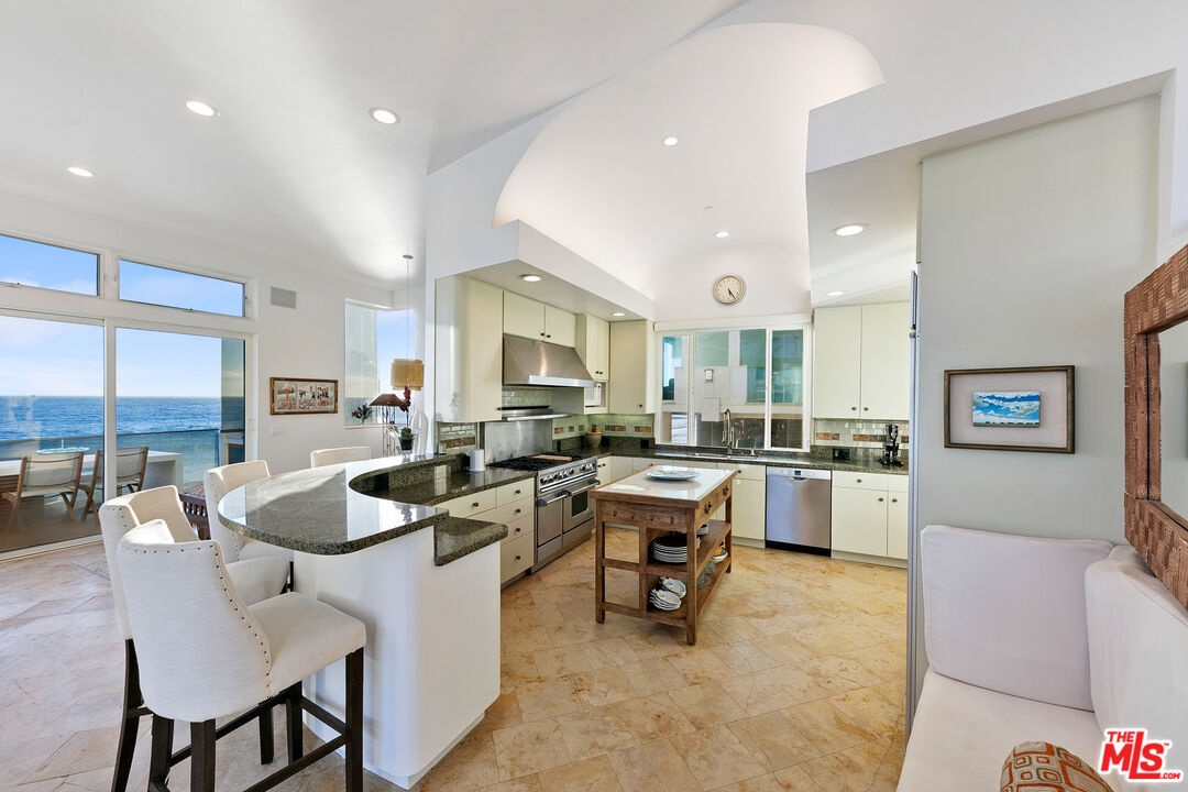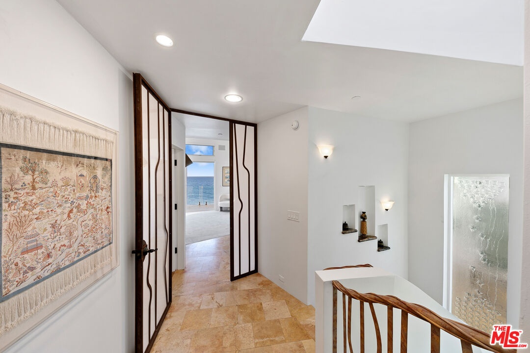 Welcome to this uniquely located seaside escape, a warmly crafted architectural residence situated in a private, gated enclave in the highly coveted Broad Beach neighborhood. This oceanfront retreat captures mesmerizing ocean views from nearly every room. Nestled on two premier beachfront parcels, the property features an impressive 60 feet of pristine ocean front. This custom home was designed 25 years ago by the esteemed Barsocchini & Associates for the current owner. This unique Malibu gem is currently being offered for long term lease. Located in the prestigious Sea Level Drive enclave, the home enjoys exceptional privacy and unobstructed views of dramatic rock formations and twinkling city lights, thanks to its prime position between two development-restricted lots. Architectural highlights include a distinctive Wave Motif copper-clad roof, artisanal art glass windows, bespoke iron railings, and inviting stone bathrooms. The welcoming interiors are characterized by soaring ceilings, expansive picture windows that bathe the rooms in natural light, and charming finishes, creating a harmonious blend of comfort and style. The bright living and dining areas on the main floor open onto a spacious wraparound deck, ideal for al fresco dining, barbecues, and relaxation by the sea. The gourmet kitchen, with its vaulted ceiling, custom cabinetry, bar seating, breakfast nook is a chef's delight. A stairway from the kitchen leads to an outdoor shower and the sandy beach. The main level also includes a bedroom and a full bath, while the lower level features a vast media/recreation room with a fireplace, laundry room, and bath. The upper floor houses three en-suite bedrooms, including the breathtaking ocean-view primary suite. This retreat features two walk-in closets, extensive built-ins, an oceanfront balcony, a spa-inspired bathroom with ocean views. Situated down the hallway lies a stylish library lounge, ideal for zoom calls, reading and relaxing. The adjacent lot provides a terraced outdoor sanctuary for entertaining and soaking in the sound of the breaking surf. The striking rock formations to the east are a source of constant visual delight. A surfer's hideaway for locals is a paddle away. The property includes a two-car garage and additional parking for four vehicles in the driveway. With its superbly executed design and one of a kind beachfront location, this residence invites you, your family and friends to indulge and enjoy the luxury of the Malibu beach lifestyle.