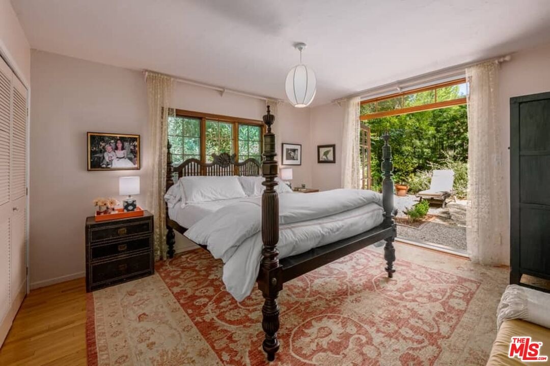 On a private lane set back from Mandeville Canyon Rd and minutes from Sunset, escape to this oasis while at the same time enjoy the proximity to Westside schools, Brentwood proper, and the freeway. The one-story home features lush landscape and a spa overlooking the canyon. This private, gated, and remodeled retreat welcomes you through a courtyard entry with outdoor dining framed by rich terraced greenery. The inviting living room with hardwood flooring has a fireplace and continuous French doors open to the sunlit patio. An open family/dining room includes a second fireplace. There's a large gourmet kitchen with a bay window seat, remodeled with stainless Thermador appliances, an enormous walk-in pantry, and an organizing desk. The spacious master suite and bath overlook a picturesque French parterre garden. Two generously proportioned guest rooms and a bath complete the bedroom wing. A comfortable fourth bedroom + bath is tucked conveniently off the kitchen side. Other upgrades include natural oak flooring throughout the main areas, a new roof, landscape lighting, and interior custom lighting. Truly a relaxed and versatile floor plan. There is a two-car garage with direct entry to the laundry room as well as a motor court. Designer perfect!