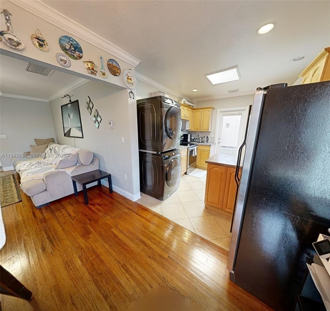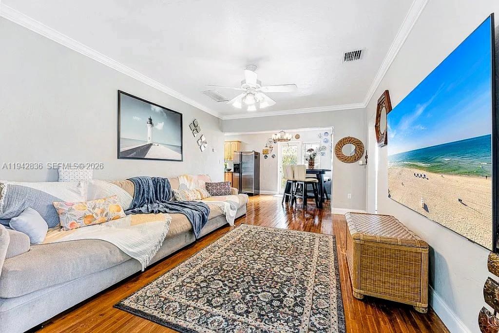 Experience the perfect blend of charm and convenience in this stunning Hollywood Lakes District residence. Located east of Federal Highway, you are just minutes away from the vibrant energy of Young Circle, pristine local beaches, premier shopping, and a quick 10-minute commute to the airport. The home itself has been meticulously updated, featuring a remodeled kitchen and bathroom, freshly painted interiors and exteriors, and elegant crown moldings that complement the beautifully refinished hardwood floors. For those needing extra versatility, the garage includes a functional built-in room perfect for an office or storage. The property’s outdoor space is truly a rare find, boasting an expansive 11,400-square-foot lot that spans over a quarter acre. This oversized footprint provides a private patio oasis and ample room to design a custom pool or home addition. Because the land is zoned for multifamily use, the potential for future development or expansion is immense, making it an ideal investment for those looking to build equity in a prime location.