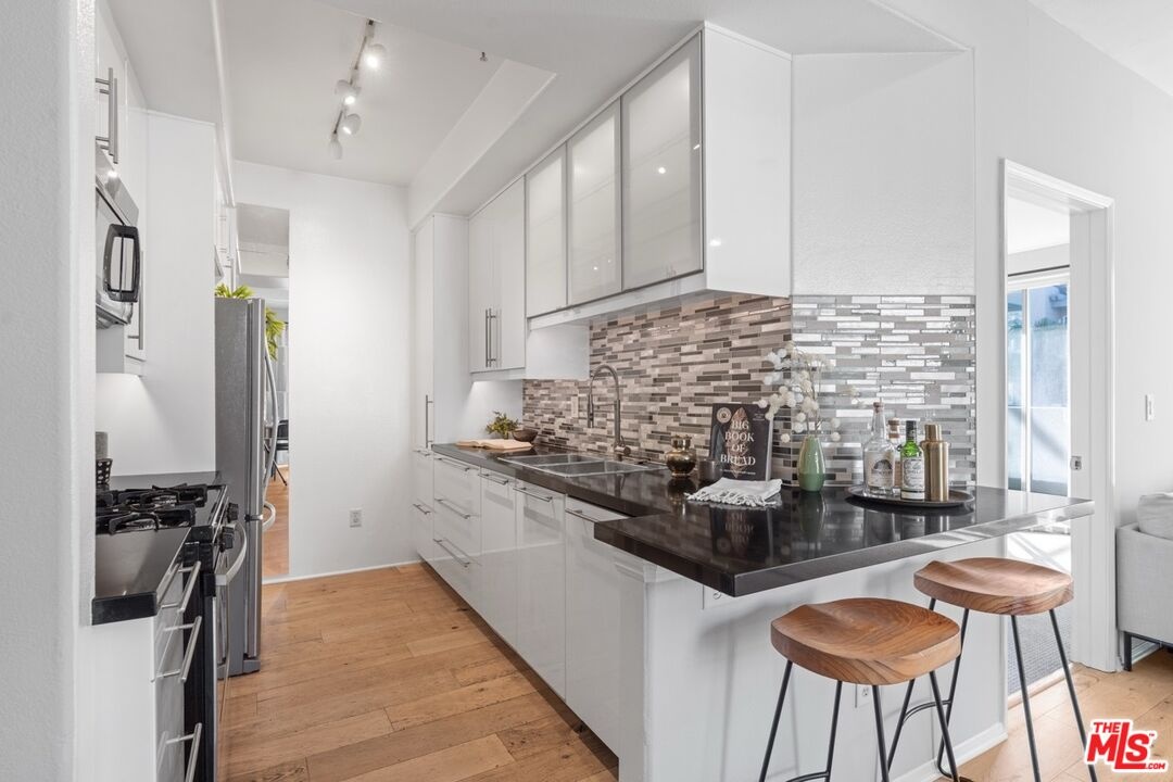 Live the resort lifestyle in the heart of the Marina Arts District at this rare, sun-filled 3-bedroom, 3-bath condo in Del Rey Terrace. Nestled in an exclusive, private wing of the community, this elevated corner unit is surrounded by windows on all four sides with no shared side walls, offering the privacy of a single-family home with the added security, ease and amenities of condo living. // Step through your private entry walkway into a thoughtfully upgraded residence that blends comfort and sophistication. The kitchen is a modern culinary haven, featuring sleek black quartz countertops, under-cabinet and drawer lighting, a breakfast bar, and stainless steel appliances. The spacious open-concept living area is framed by glass sliding doors on both sides, allowing natural light to pour in while offering lush views of swaying palms and blooming jacarandas. A cozy fireplace and upgraded elegant flooring anchors the space, creating a warm and inviting atmosphere ideal for both entertaining and everyday living. A mounted 77" OLED TV on a pull-down swivel arm is included for your enjoyment. //Retreat to the sizable and serene primary suite with a walk-in closet, ensuite bath, and private balcony. The second bedroom on the opposite side of the home offers its own ensuite bathroom, additional private balcony, and calming views of the pool. A third bedroom adds flexibility for a home office, guest room, or creative space. All three bathrooms are full bathrooms with showers and tubs, offering plenty of private space for self care.//Built in the 2000s, this home offers dual-pane windows and sliding glass doors for a quiet and energy-efficient interior. Additional features include central heating and AC, in-unit laundry, recessed lighting throughout, and abundant storage. Smart-home upgrades elevate your daily experience with smart light switches, a Nest thermostat, a Ring alarm system on every window and door, and a Lockly smart lock with fingerprint access. //Del Rey Terrace offers resort-style amenities with an active, very healthy HOA and low association dues: a heated pool and spa, fitness center, clubhouse, media room, package lockers, gated parking, and secure bike storage. Two side-by-side parking spaces in the gated garage come equipped with a dedicated 9KW EV charger. Building elevators offer stairs-free access between the street level, parking, condo, and all amenities on the property. //Perfectly positioned for coastal living, you're just moments from the bike path to the beach, waterfront dining, a dine-in movie theater, and vibrant local hotspots. Quick access to the 90 freeway makes commuting a breeze. //This home is your key to a comfortable, happy and vibrant lifestyle defined by ease, design, and connection to the best of Westside living.