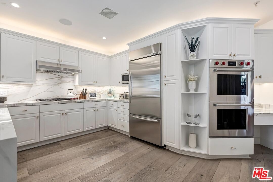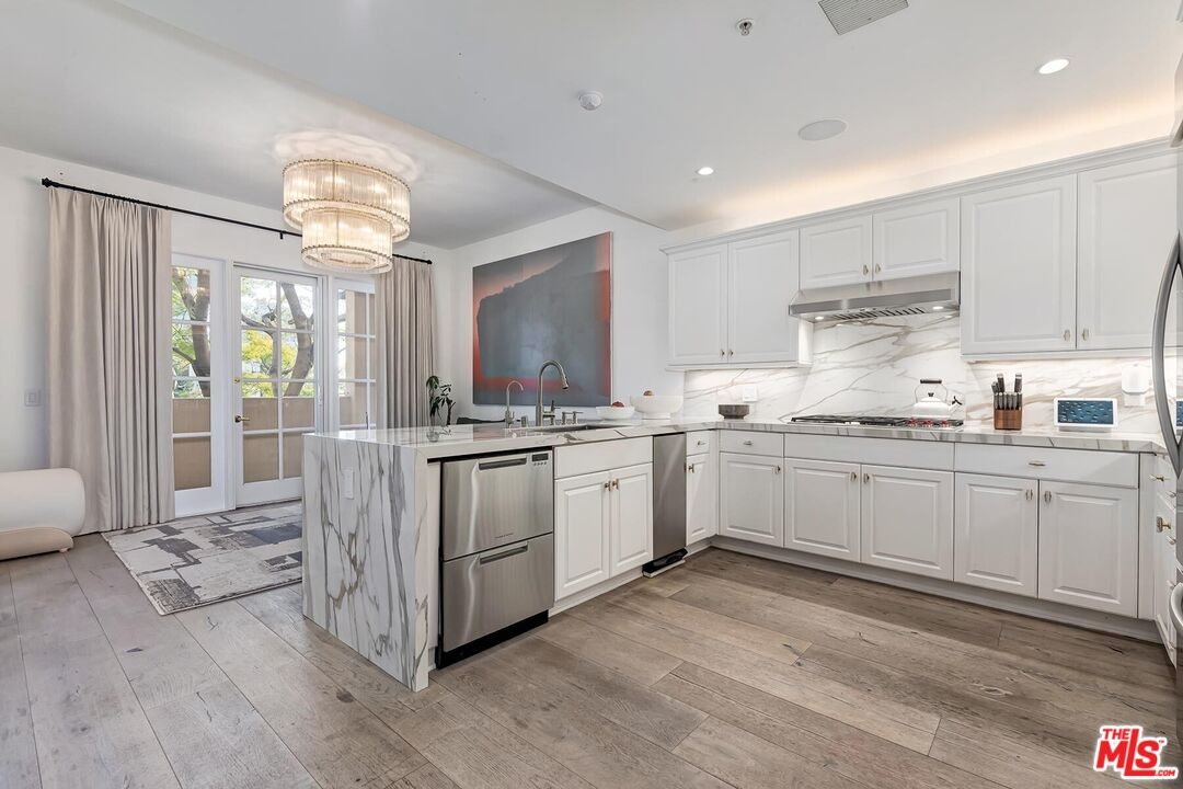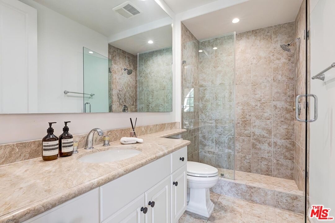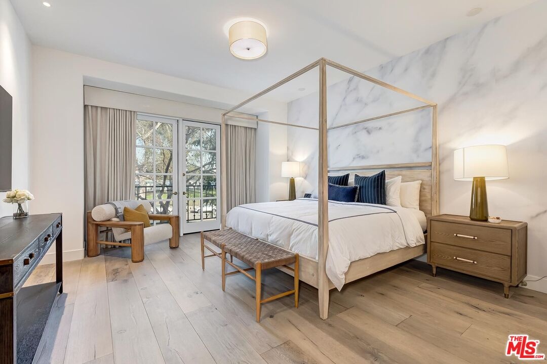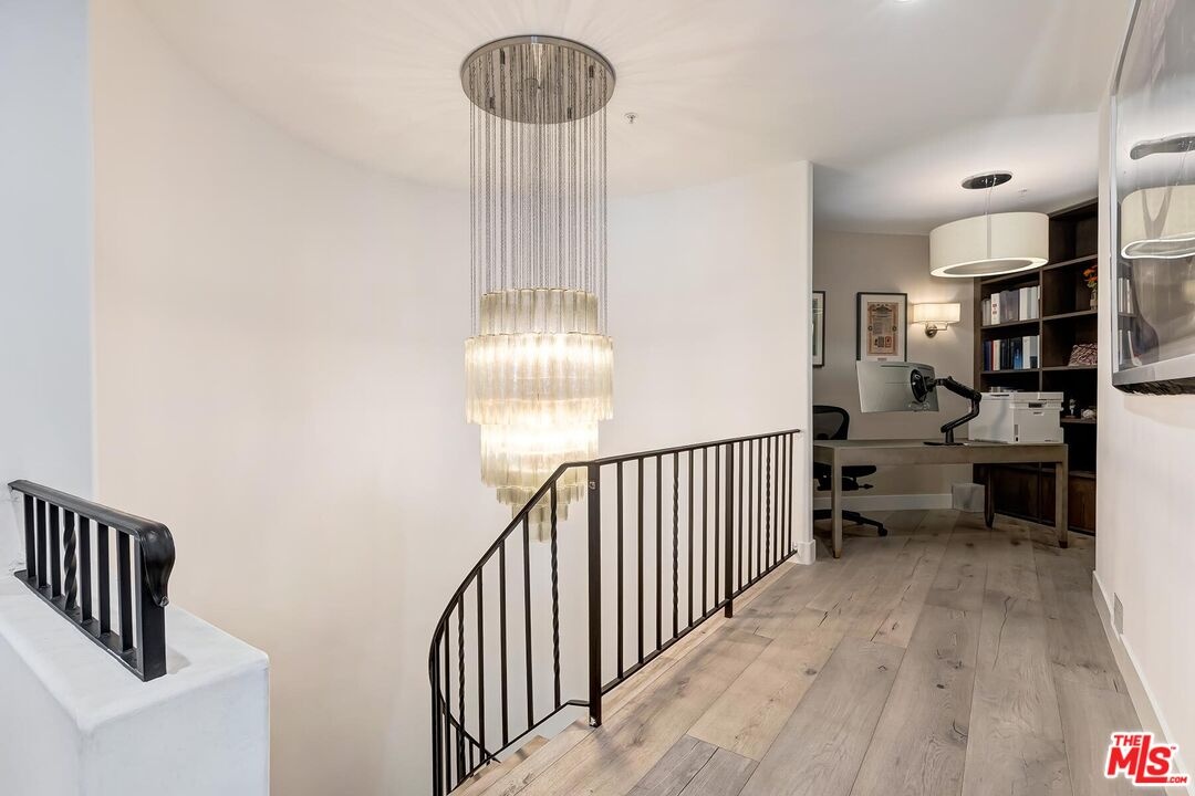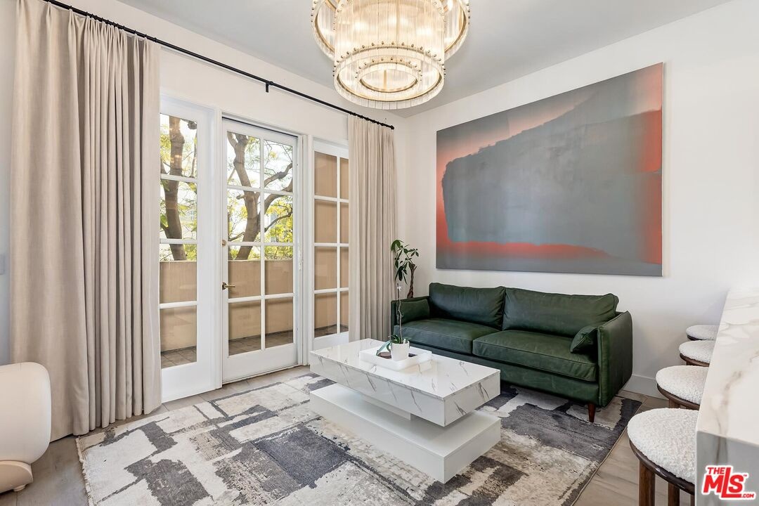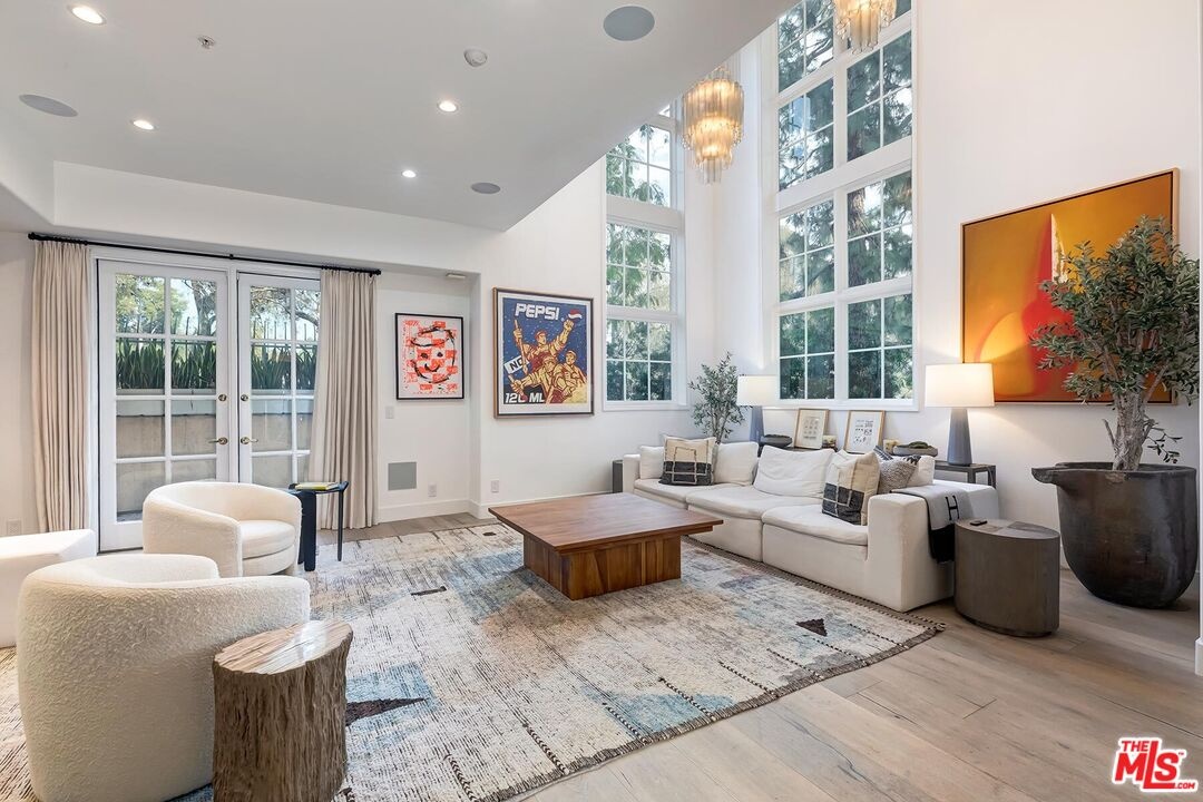 EASY PARKING FOR SHOWINGS- VALET Situated within The Brentwood, one of the neighborhood's most coveted full-service residences, this sophisticated corner townhome offers a rare blend of privacy, scale, and elevated living. Designed for those who appreciate both luxury and discretion, the residence enjoys the conveniences of a premier building with the feel of a private home. Residents of The Brentwood enjoy an exceptional suite of amenities, including 24-hour concierge, on-site management, spacious fitness center, rooftop pool and spa with sweeping city views, elegant banquet facilities, valet parking, and private storage.The main level unfolds into a dramatic, light-filled living space highlighted by soaring double-height ceilings and expansive picture windows an impressive setting for both intimate living and grand entertaining. A formal dining room with custom wet bar seamlessly connects to the chef's kitchen, which is outfitted with top-tier appliances, generous counter space, and thoughtful storage, making it as functional as it is refined. Multiple outdoor spaces, including a generously sized private patio, extend the living experience outdoors. A stylish powder room and full laundry room complete the main level. A gracefully curved grand staircase leads to the upper floor, where a serene office or library bonus space creates an ideal retreat for work or relaxation. The primary suite is a true sanctuary, with a spa-inspired en-suite bath, two substantial closets, and a private balcony overlooking lush surroundings. The second en-suite bedroom, also with balcony access, offers exceptional comfort and privacy for guests or family. Ideally located in the heart of Brentwood, moments from acclaimed dining, upscale boutiques, and cultural destinations, this exceptional residence presents a rare opportunity to enjoy refined living within one of Los Angeles' most desirable communities.