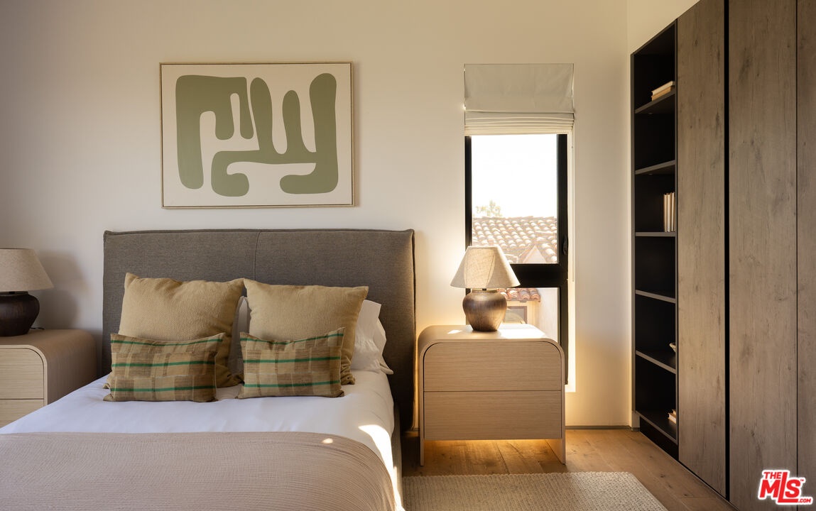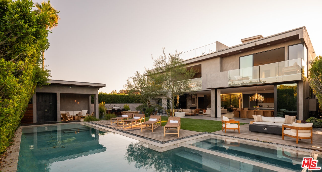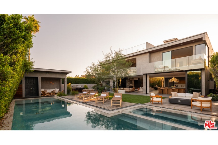 Framed in lush, mature greenery, this recently built organic-modern architectural sits privately and comfortably on one of the most desired view streets in Bel-Air. Past the gated entry and manicured gardens, an open-flow cooking, dining, and living space is flanked with Italian cabinetry and porcelain floors. A full chef's kitchen with Miele and Thermador appliances overlooks the exterior, with unimpeded access to the rear yard through floor-to-ceiling automatic sliders. From the zero-edge pool deck, beautifully composed views of the Stone Canyon reservoir serve as the backdrop for a serene, private, and spacious outdoor living experience. A fully accommodated pool house, outdoor kitchen, and fire-pit tastefully complete a year-round alfresco lifestyle. Inside, a choice of oak-finished elevator or wood-clad staircase connects all levels of the property. An entertainer's vision comes to light in the level below, adorned with a home cinema, refrigerated walk-in cellar, bar, and direct access to the backyard. The fully adorned primary bedroom with dual walk-in closets and unobstructed views sits upstairs, along with two additional en-suite bedrooms with private patios. Through a fully covered outdoor entertainment space, the rooftop deck enjoys 360 degree views of the reservoir, downtown Los Angeles, and the Pacific. Experience a nearly 7,000 square foot retreat in the hills of Bel-Air, confidently accommodating to even the most discerning buyers.