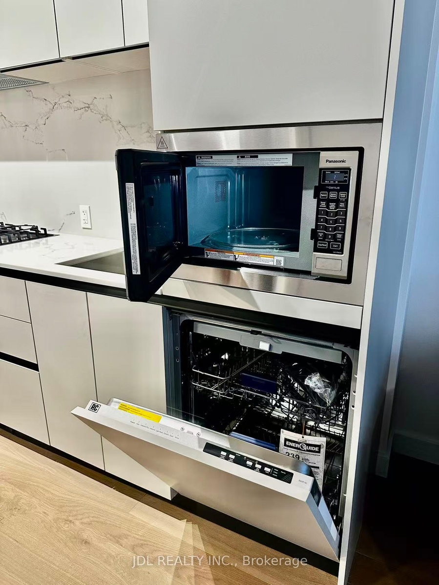 Move-in ready, furnished unit! This beautiful 2-bedroom, 2-bath suite blends modern finishes with thoughtful functionality throughout. Featuring 9' exposed concrete ceilings with east exposure and floor-to-ceiling windows that flood the space with natural light. The modern kitchen offers an eat-in island, custom Italian cabinetry, engineered quartz countertops backsplash, and high-end stainless steel built-in appliances, including an electric oven, gas cooktop, paneled refrigerator, and dishwasher. Premium engineered hardwood floors run throughout. Additional highlights include a full-size Energy Star-certified washer and dryer, smart thermostat, keyless entry, a mobile resident app, and an Energy Recovery Ventilation system. The inspired collection of amenities includes a fitness studio, 24-hour concierge, co-working lounge, party room, outdoor terrace, children's playroom, and pet spa. Steps from the soon-to-open Eglinton Crosstown LRT. Minutes to top private schools, Sunnybrook Hospital, premier shops, cafés, and everyday conveniences. Unbeatable location. Book your showings today!
