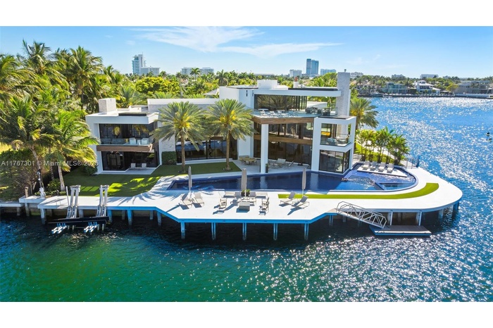 Welcome to the pinnacle of luxury in prestigious Harbor Beach, a guard-gated waterfront community offering ultimate privacy and exclusivity. This extraordinary point lot estate boasts +/- 300’ of prime waterfront with sweeping Intracoastal views. Designed for the most discerning buyer, the tri-level residence blends timeless elegance with modern sophistication—featuring soaring ceilings, custom closets, rich wood and marble finishes, smart home technology, 4 fireplaces, 6 wet bars, and a commercial-grade elevator. The top-floor lounge offers some of the most breathtaking views in the city. Enjoy the infinity-edge pool, entertain on the waterfront terrace, or cruise from your private dock.
