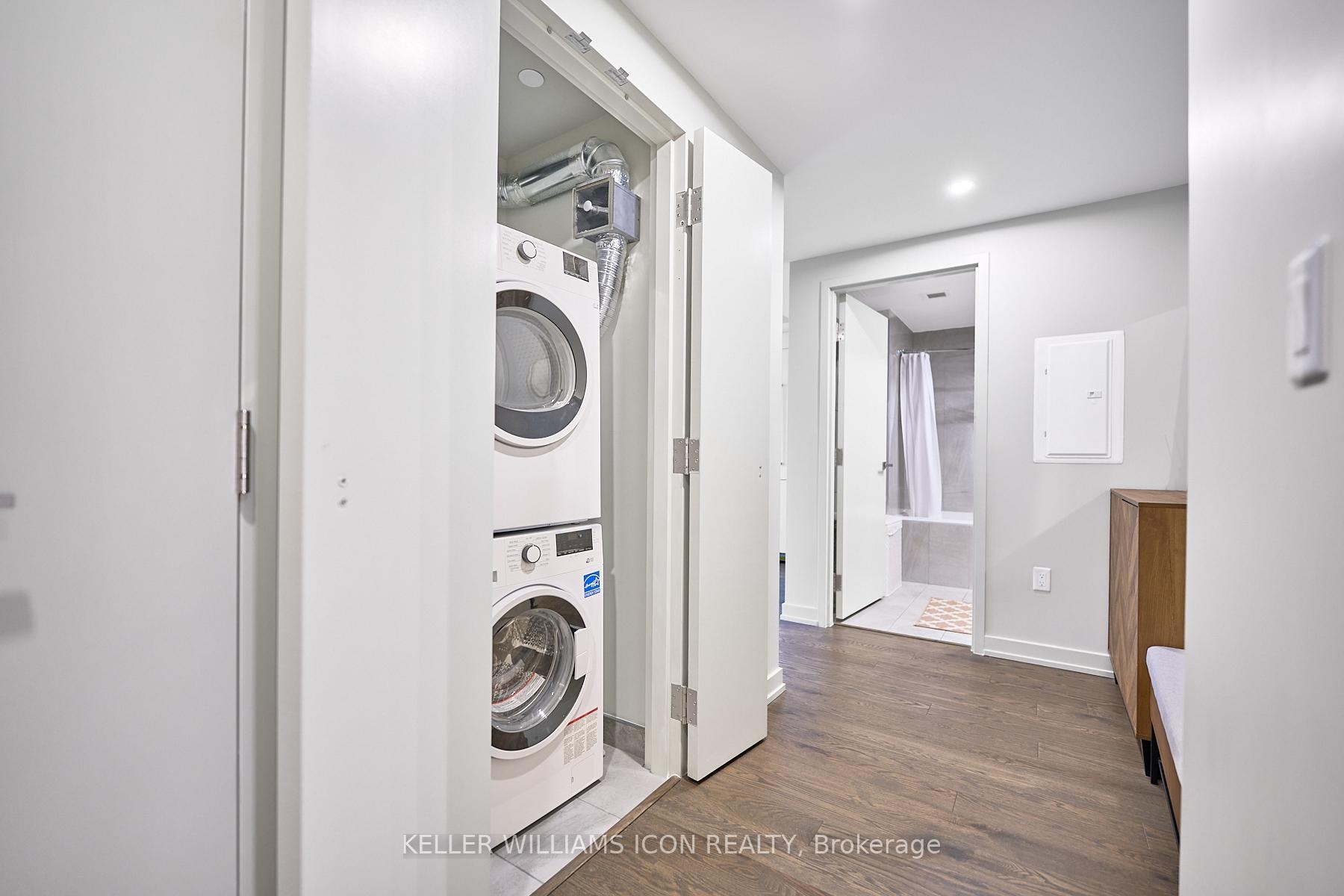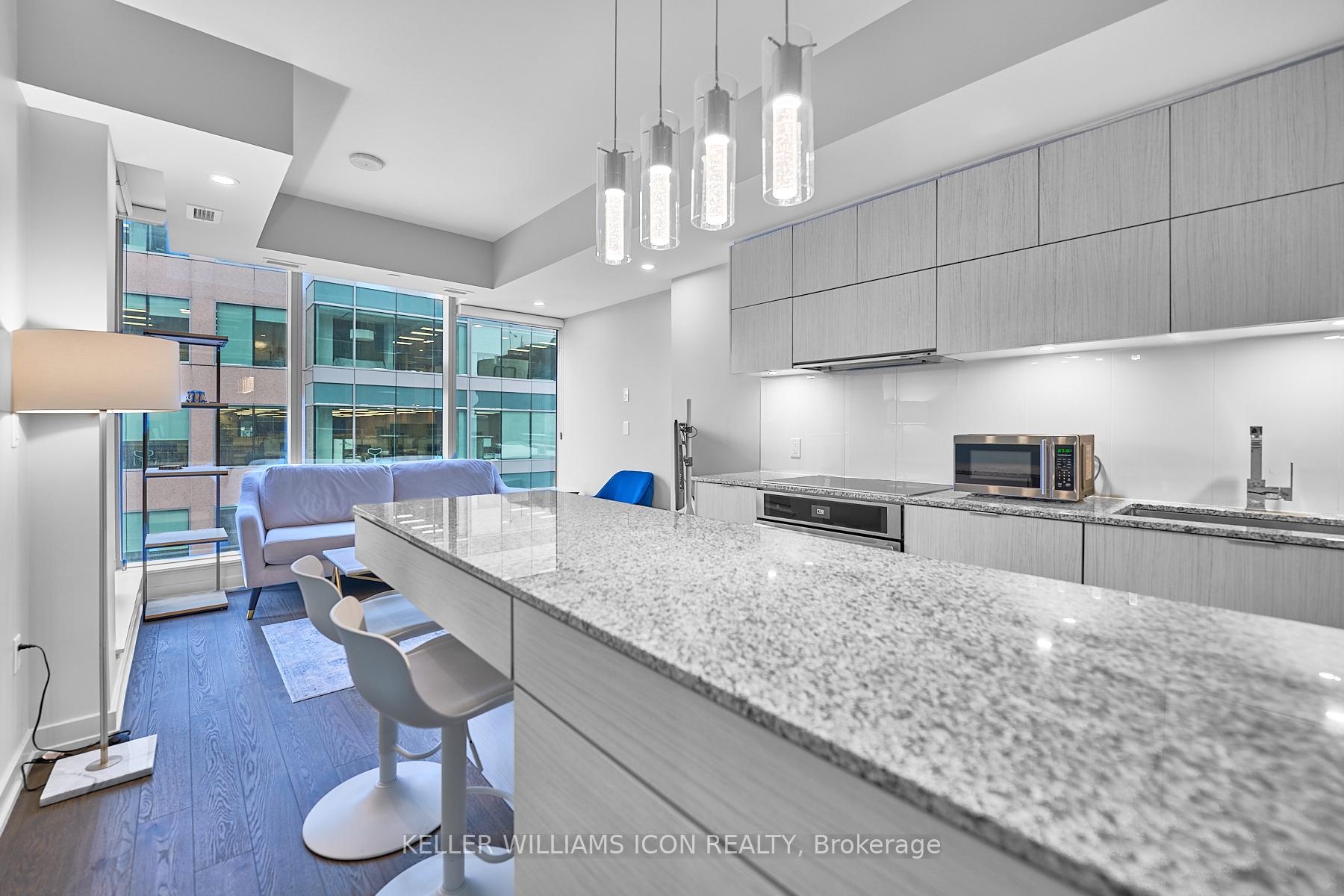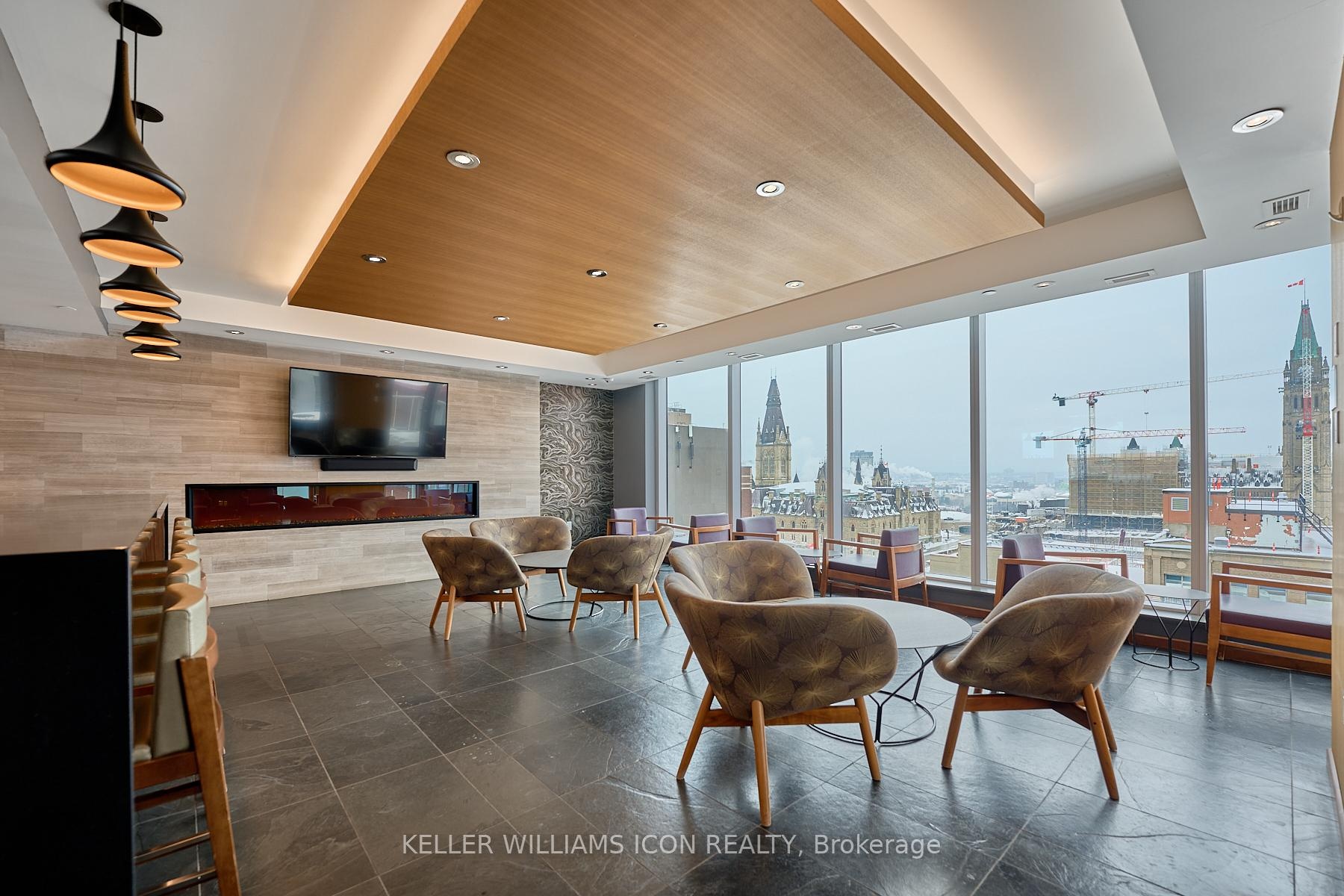 Experience refined downtown living in this fully furnished, move-in-ready 1-bedroom, 1-bathroom condo, located at one of Ottawa's most prestigious addresses. Thoughtfully designed with a bright, modern open-concept layout, the unit features elegant hardwood flooring and floor-to-ceiling windows that flood the space with natural light and showcase stunning city views. The contemporary kitchen offers quartz countertops, a stylish breakfast bar, and premium finishes-ideal for both everyday living and entertaining. Everything is already in place for a seamless move-in experience, including complete furnishings, an ensuite laundry, and a private open balcony. With electricity as the only utility paid by the tenant, this turnkey residence offers exceptional convenience and comfort. Residents enjoy access to world-class amenities, including a state-of-the-art fitness centre, sauna, elegant sky lounge, movie theatre lounge, and 24/7 concierge service. Perfectly situated in the vibrant heart of downtown, you're just steps from Parliament Hill, LRT stations, fine dining, and luxury shopping. Heating, water, and wifi included, tenant pays the electricity only.