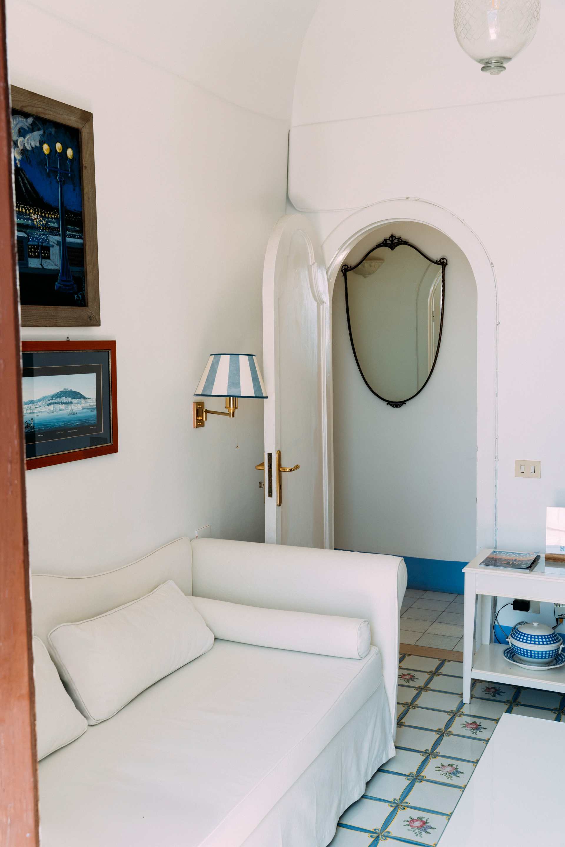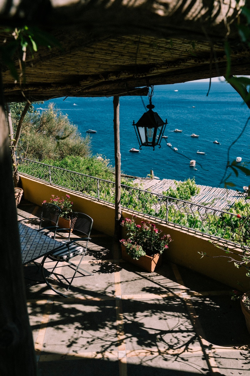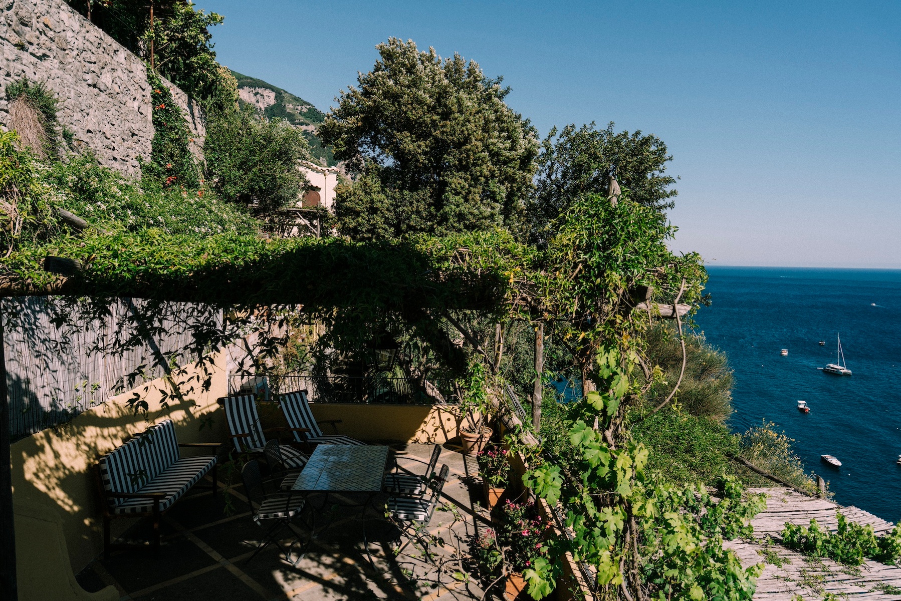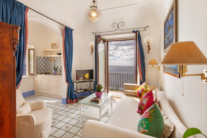 The terrace and balcony open directly to the sea, creating a refined and relaxed atmosphere that captures the essence of Positano living.