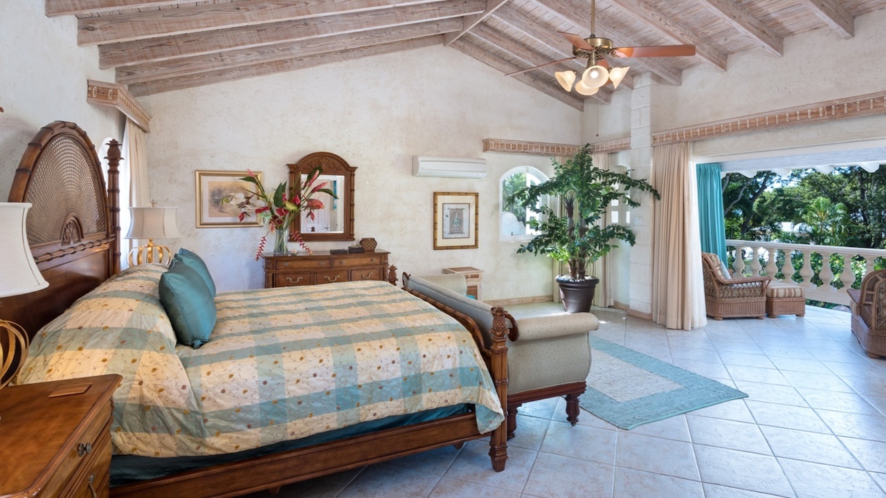 Inside, the villa is crafted with thoughtful attention to flow and comfort, encouraging seamless indoor-outdoor living. On the lower level, a generously sized games room offers a fun and relaxed space complete with a table tennis table, as well as areas for poker nights or laid-back movie evenings. Each of the five bedrooms are tastefully designed, combining luxury with comfort, cooled by the island's natural breezes. The master bedroom boasts a fantastic, natural view of lush, mature trees, creating a serene, woodland atmosphere.