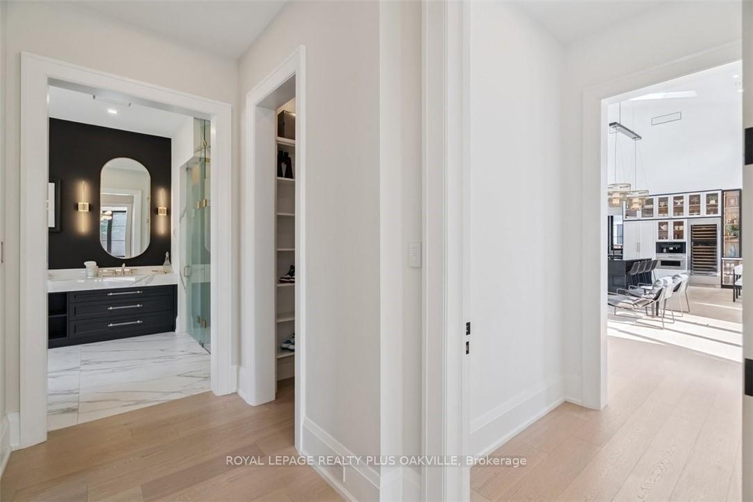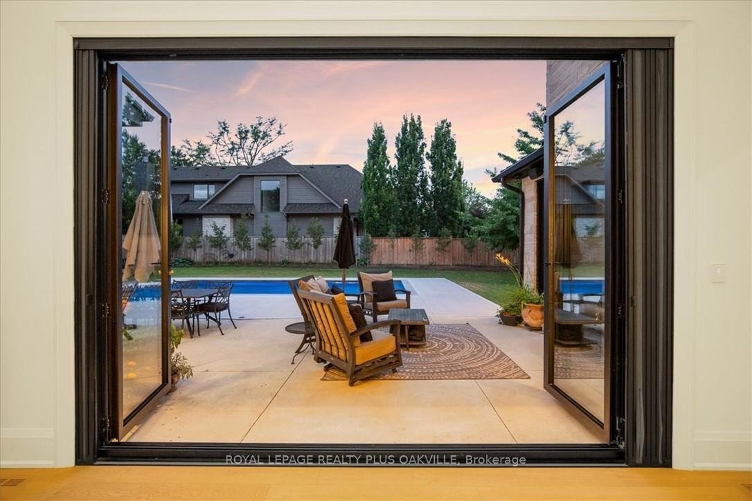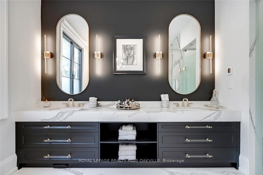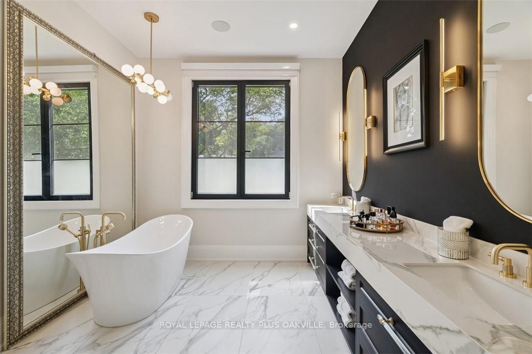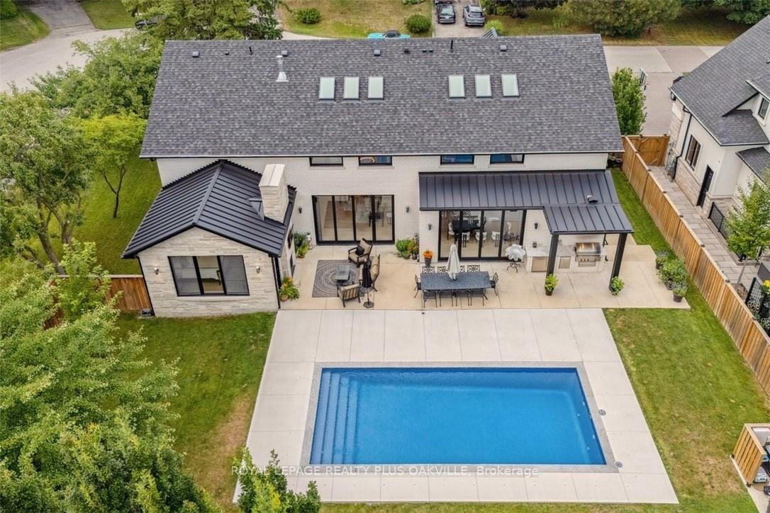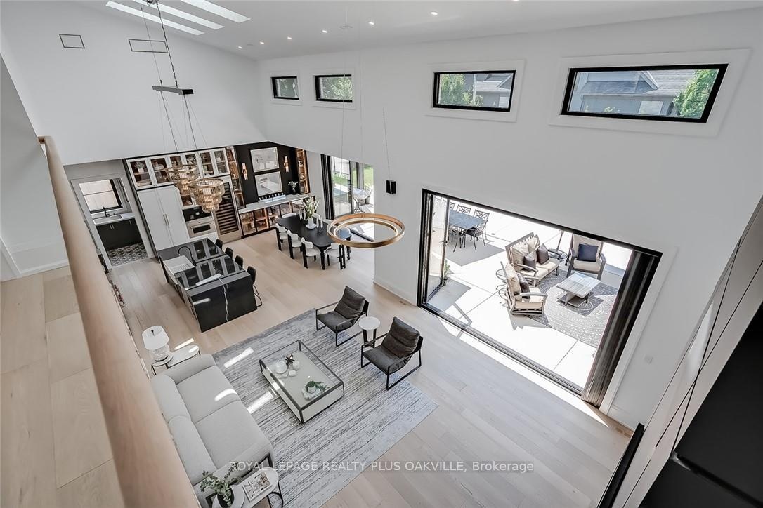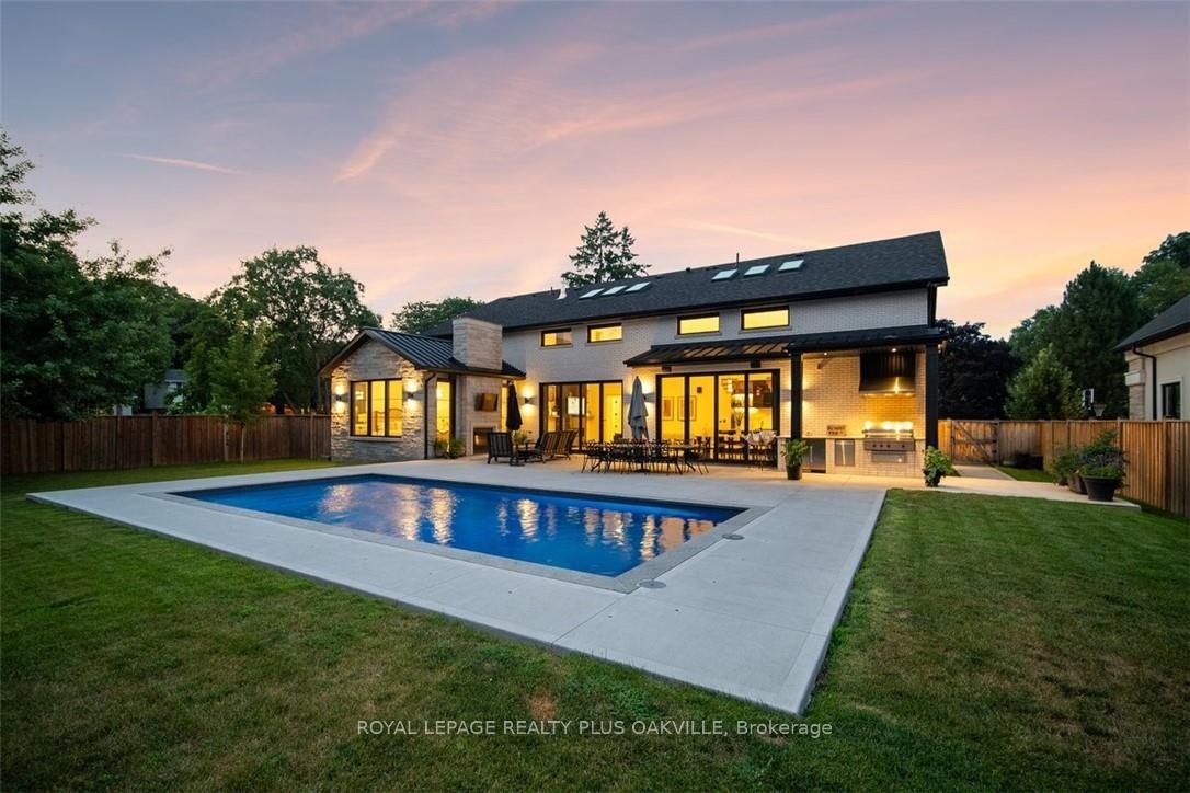 Designed to be enjoyed in all seasons, this decadently appointed custom built executive home in prime Coronation Park delivers exceptional warmth, comfort and luxury especially in the winter months. Featuring heated flooring throughout tiled areas, the garage and even the concrete driveway and walkway ensuring effortless comfort all season long. This unique, spacious open-concept layout is both inviting and functional with four beautifully appointed bedrooms each with a private ensuite for convenience and privacy. The MAIN FLOOR PRIMARY SUITE is a winter sanctuary with vaulted ceilings, fireplace and tranquil views. The luxurious 5pc ensuite with heated floors invites you to unwind with a deep soaker tub, double vanities, huge shower and water closet. Perfect escape after a long winter day. The chef's kitchen is designed for gathering, featuring an instagram-worthy walk-in pantry. Natural light pours in through massive windows, six skylights and double bi-fold doors creating a warm and welcoming atmosphere on even the coldest days. Soaring 20ft ceilings, cozy gas fireplaces, custom cabinetry and lighting, warm wood finishes and an abundance of European double-glazed low-E argon windows and doors, delivering exceptional insulation energy efficiency and year round comfort. An emergency generator adds peace of mind during winter storms, while over $200k in smart-home technology allows seamless control of heating, lighting, appliances and security at the touch of a button. Outside the backyard transforms with seasons, offering a heated saltwater pool, double-sided gas fireplace, extensive patio, b/i kitchen and a private 2 pc bathroom. Perfect for both summer entertaining and cozy winter evenings by the fire. Located in one of Oakville's most desirable neighbourhoods, steps to the lake, schools and Bronte Village this exceptional home offers pure luxury in every season. Escape the ordinary. This is what you deserve.