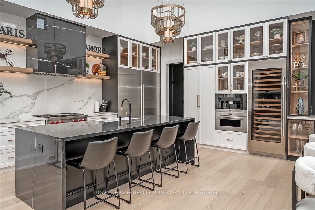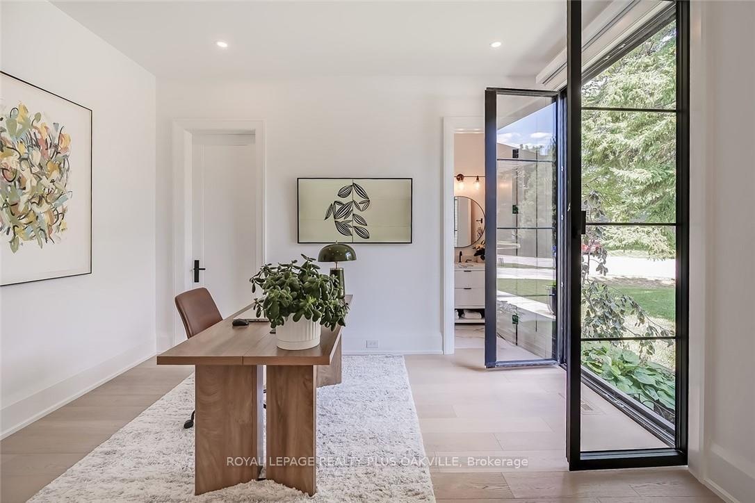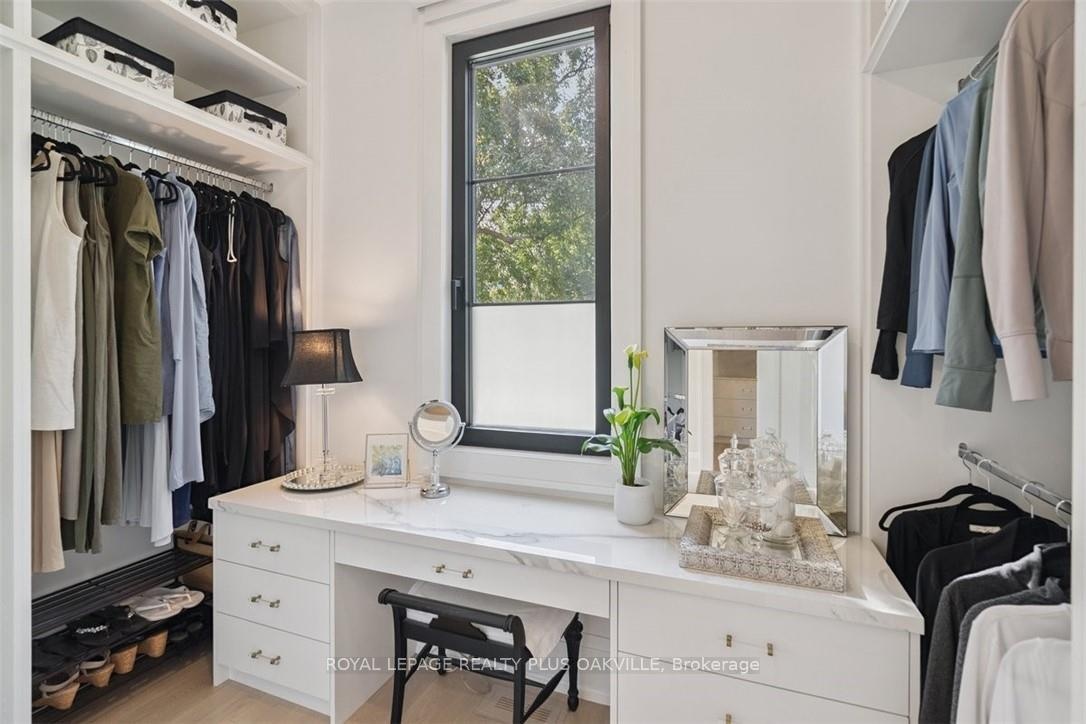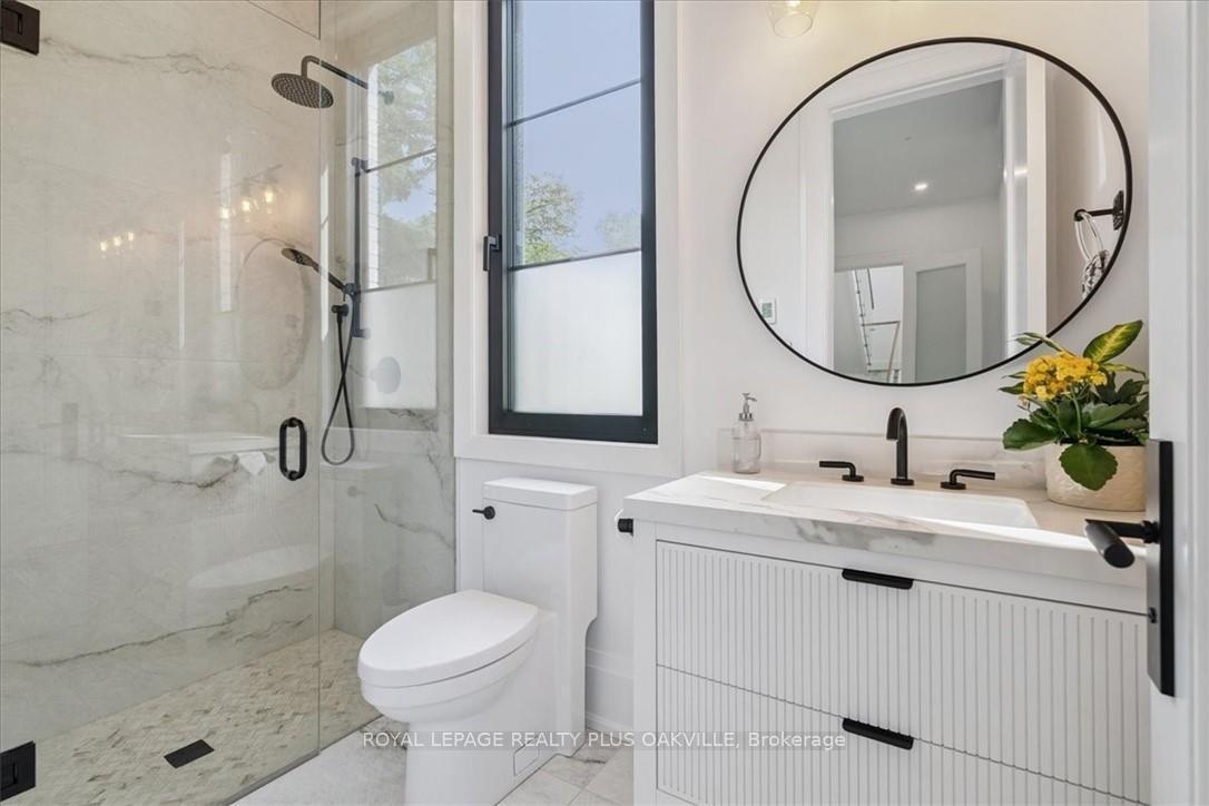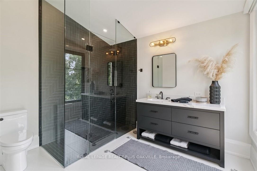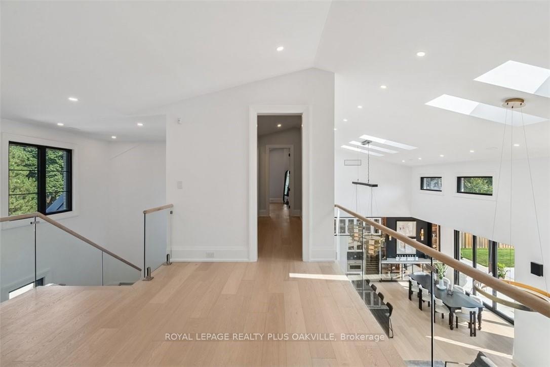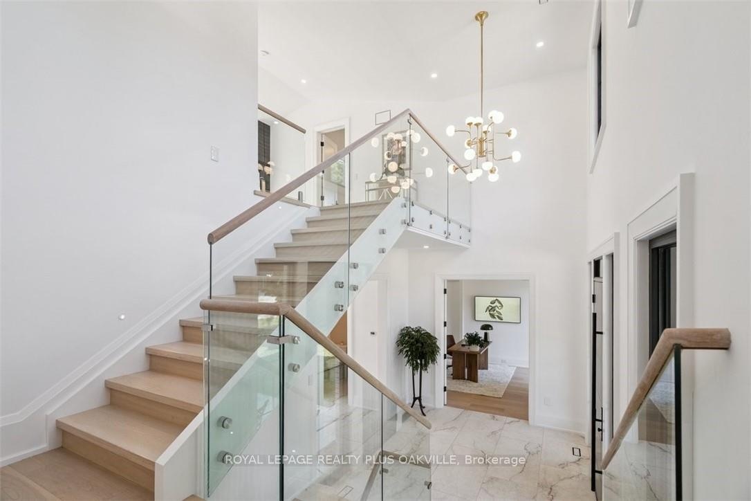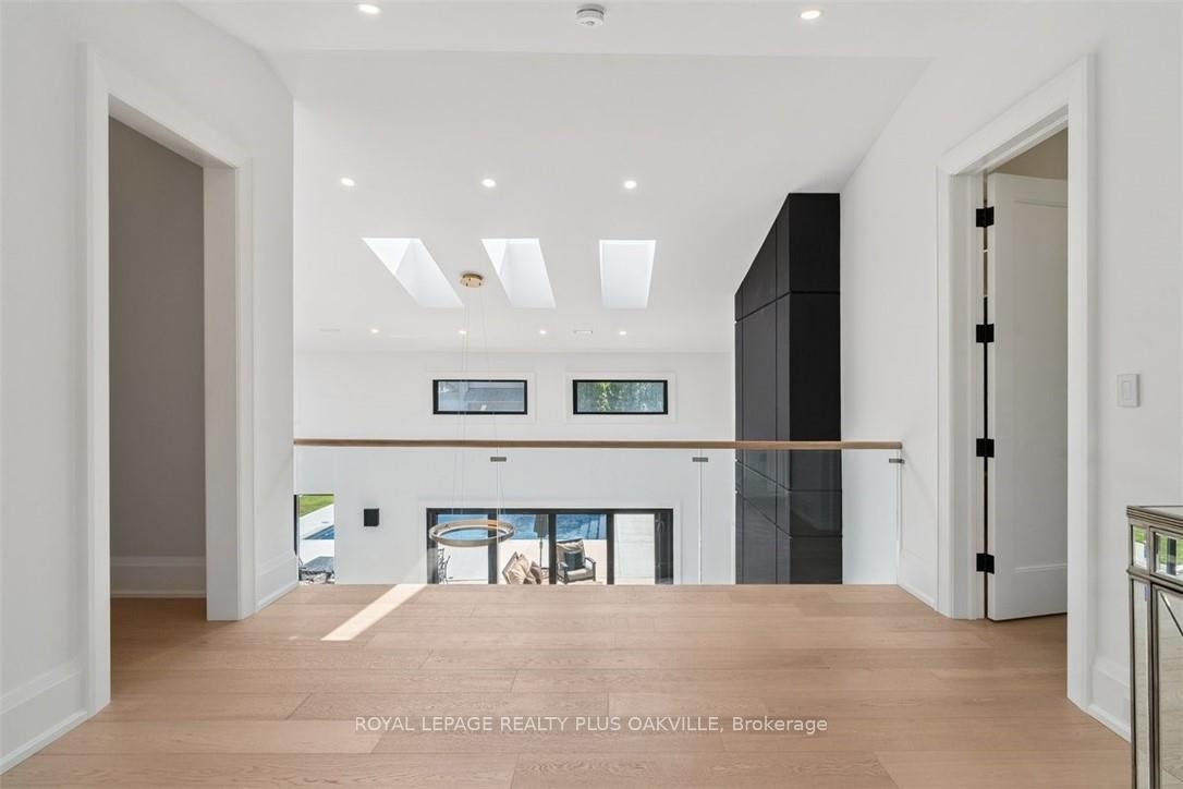 Designed to be enjoyed in all seasons, this decadently appointed custom built executive home in prime Coronation Park delivers exceptional warmth, comfort and luxury especially in the winter months. Featuring heated flooring throughout tiled areas, the garage and even the concrete driveway and walkway ensuring effortless comfort all season long. This unique, spacious open-concept layout is both inviting and functional with four beautifully appointed bedrooms each with a private ensuite for convenience and privacy. The MAIN FLOOR PRIMARY SUITE is a winter sanctuary with vaulted ceilings, fireplace and tranquil views. The luxurious 5pc ensuite with heated floors invites you to unwind with a deep soaker tub, double vanities, huge shower and water closet. Perfect escape after a long winter day. The chef's kitchen is designed for gathering, featuring an instagram-worthy walk-in pantry. Natural light pours in through massive windows, six skylights and double bi-fold doors creating a warm and welcoming atmosphere on even the coldest days. Soaring 20ft ceilings, cozy gas fireplaces, custom cabinetry and lighting, warm wood finishes and an abundance of European double-glazed low-E argon windows and doors, delivering exceptional insulation energy efficiency and year round comfort. An emergency generator adds peace of mind during winter storms, while over $200k in smart-home technology allows seamless control of heating, lighting, appliances and security at the touch of a button. Outside the backyard transforms with seasons, offering a heated saltwater pool, double-sided gas fireplace, extensive patio, b/i kitchen and a private 2 pc bathroom. Perfect for both summer entertaining and cozy winter evenings by the fire. Located in one of Oakville's most desirable neighbourhoods, steps to the lake, schools and Bronte Village this exceptional home offers pure luxury in every season. Escape the ordinary. This is what you deserve.