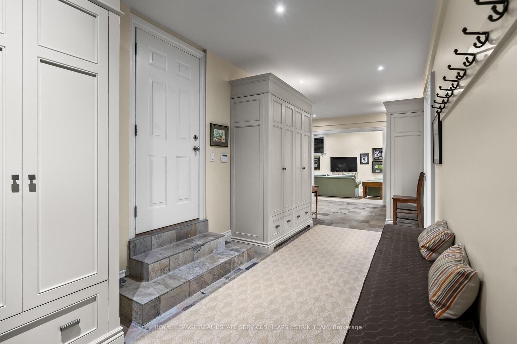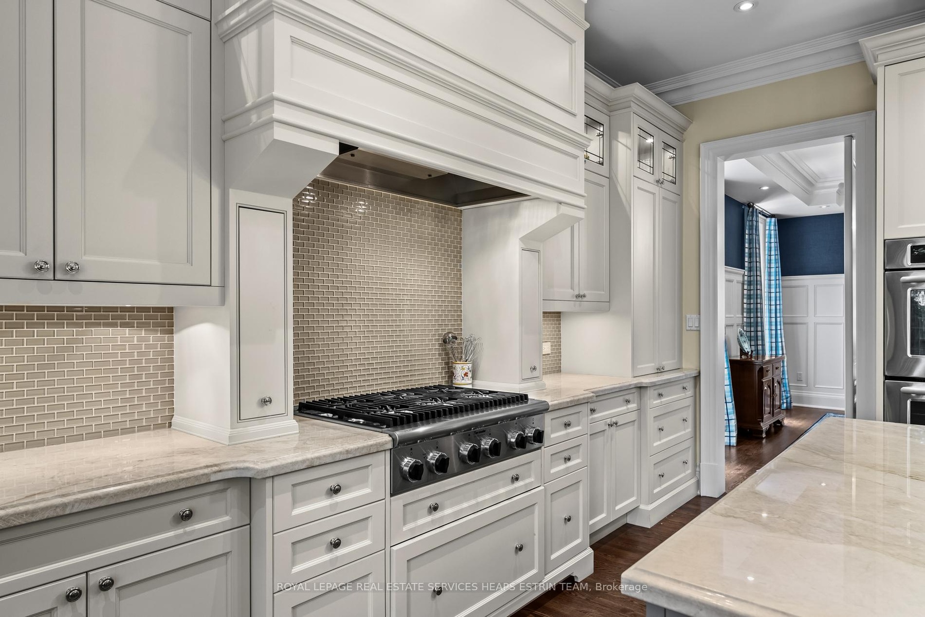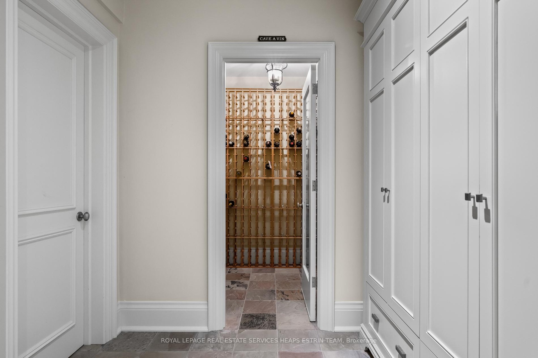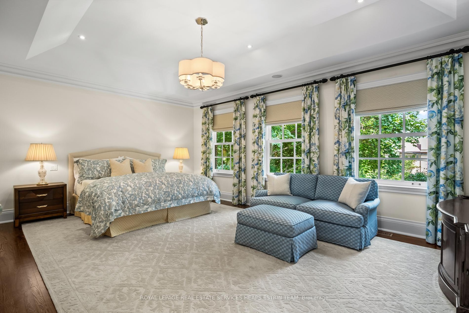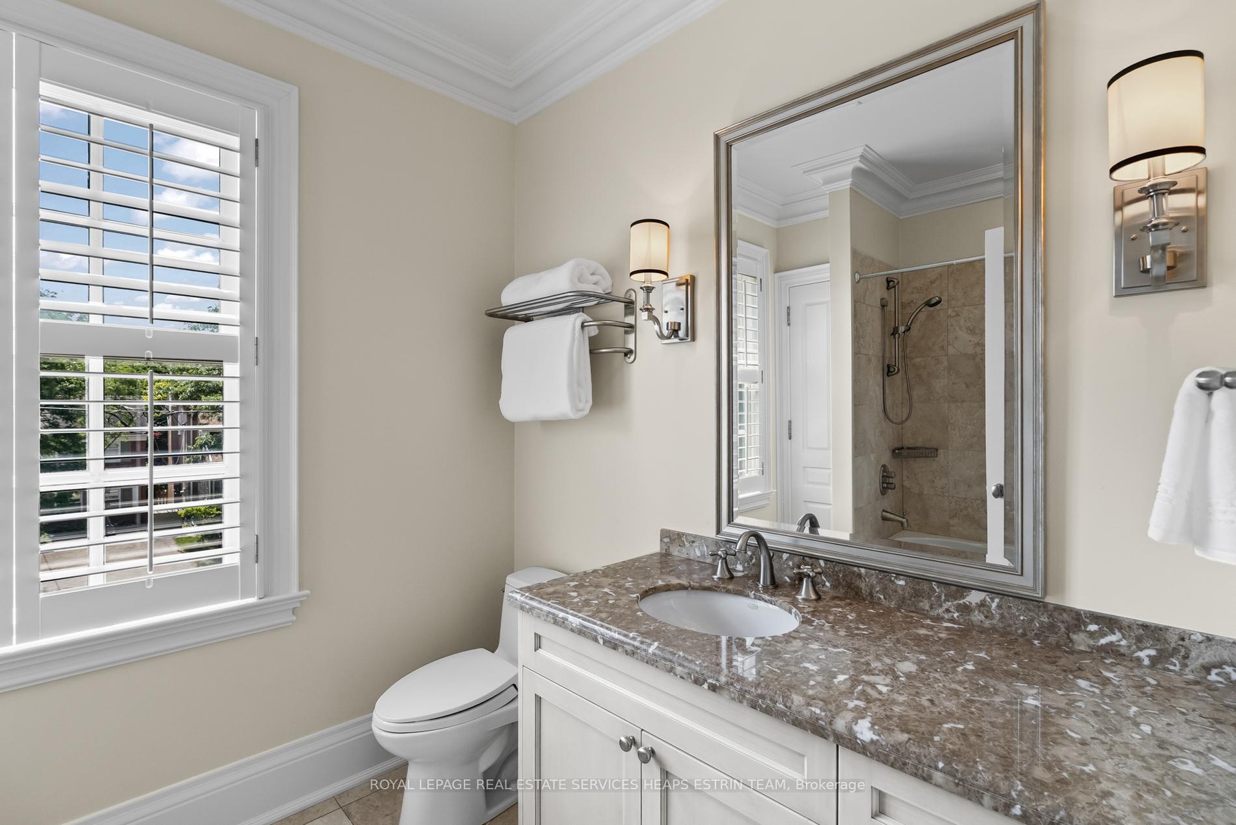 Tucked away in Lawrence Park, 260 St Leonard's Avenue is a Georgian-inspired home blending classic architecture with a touch of modern style across 6,000 square feet and three levels. Inside, the atmosphere is welcoming and bright, with sunlight pouring through the foyer and highlighting custom millwork. There's a private office for focused work, and the living room, anchored by a wood-burning fireplace, is made for cozy evenings. The dining room features stained glass windows and custom wainscotting and overlooks the living room. At the heart of the home is the kitchen: a marble-topped island, custom cabinetry, and high-end appliances. Sunlight fills the breakfast nook, while the family room, complete with a gas fireplace and a wall of windows blends seamlessly with the outdoors. French doors lead to a deck perfect for barbecues, with a stone patio and gas fireplace surrounded by gardens for total privacy. This backyard is made for gatherings, alfresco dinners, and unforgettable summer nights. Practical spaces get equal attention: a designer powder room, main-floor laundry with built-in storage, and a bar area for entertaining complete the main floor. Upstairs, the primary suite is a true retreat with vaulted ceilings, a custom dressing room, and a spa-like ensuite featuring a waterfall shower and dual marble vanities. Three additional bedrooms are sunlit and spacious, each with custom double closets. The lower level is designed for fun; think recreation room with fireplace, gym, guest/nanny suite with ensuite bath, flex space, access to the garage, and a climate-controlled wine cellar. The location is unbeatable: tree-lined St. Leonards Avenue offers easy access to trails, top private schools, and the Granite Club. This is a home that balances sophistication with everyday comfort and room to grow.