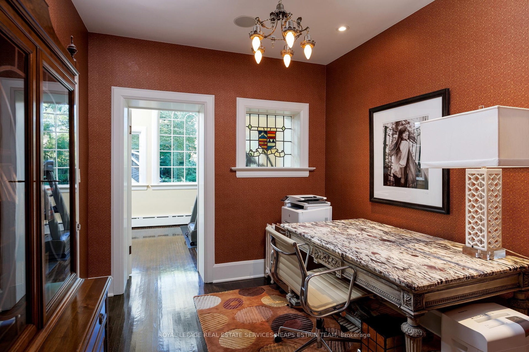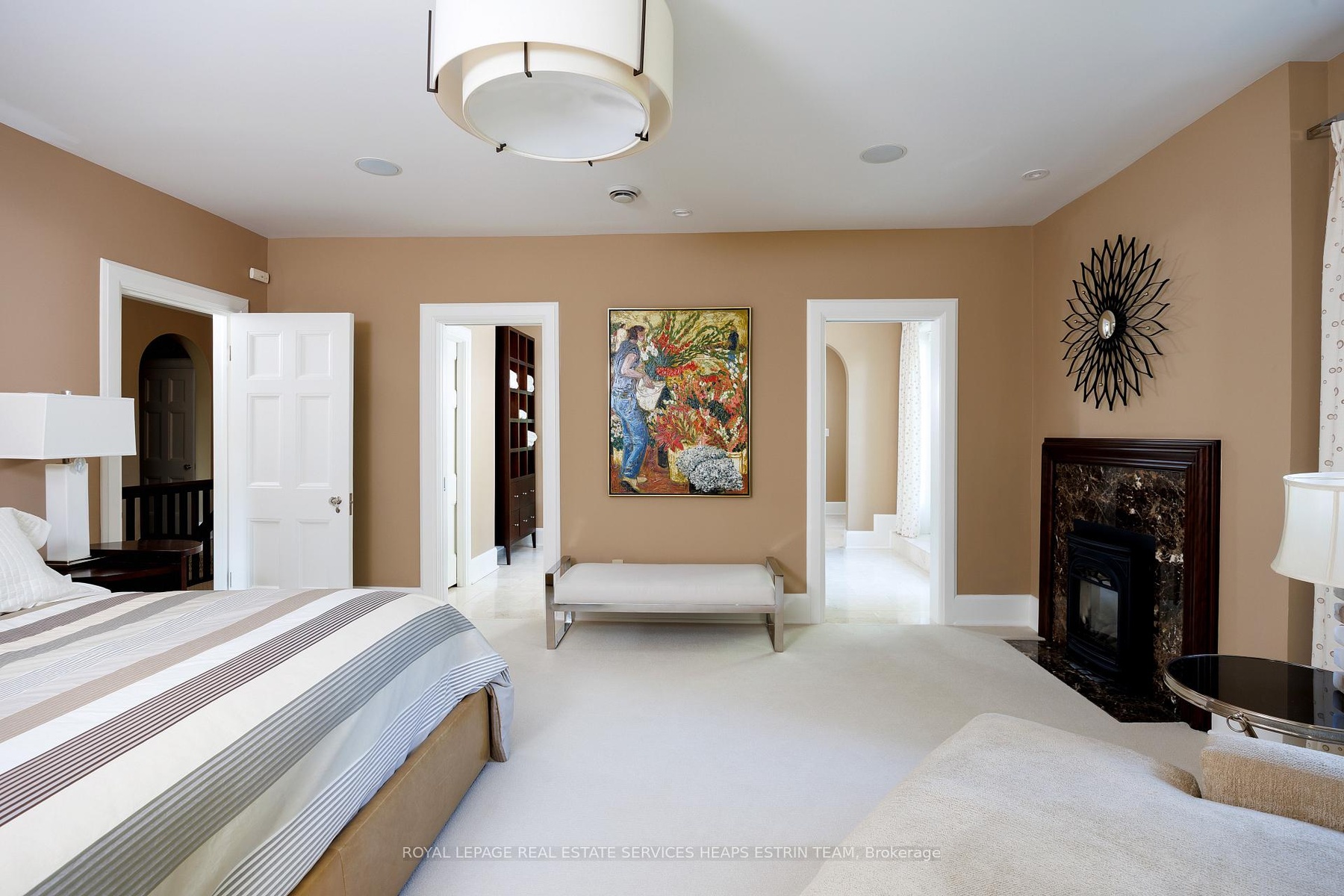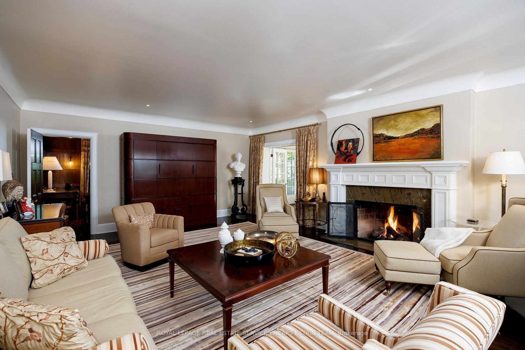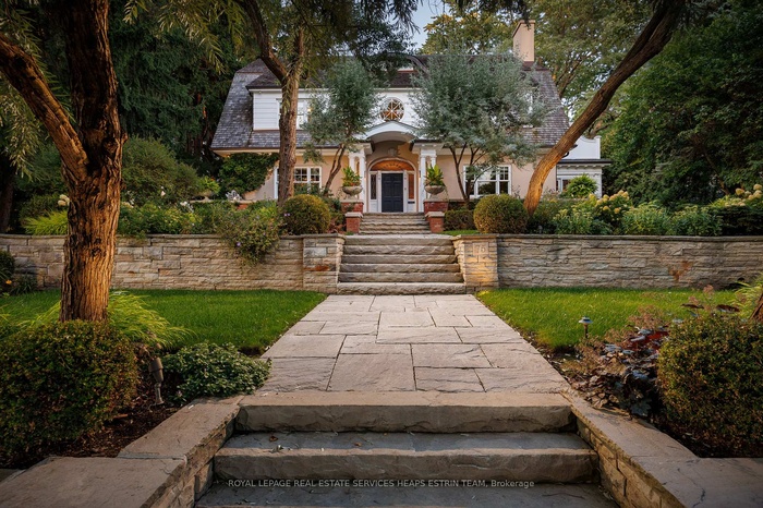 A landmark estate in St. George's Park. Privately set on one of Guelph's most prestigious streets, 75 Queen Street is a legacy residence of rare scale and architectural significance. This fully reimagined Dutch Colonial estate sits elevated on an 89 x 264-foot lot, surrounded by professionally designed grounds that have been meticulously cultivated and maintained for over 25 years. The exterior offers resort-quality living, with a saltwater pool, wood-burning fireplace, outdoor shower, and dedicated pool bathroom, framed by mature trees and layered stonework. The sense of privacy and serenity is immediate. Inside, the home spans over 5,700 square feet of finished space and follows a classic centre-hall plan with gracious flow and custom detail throughout. The main level includes a grand great room, formal dining room, glass-enclosed sunroom, chef's kitchen with granite surfaces and premium appliances, and a private office. Upstairs, the primary suite features two fireplaces, a walk-in closet, a five-piece ensuite, and a private balcony with hot tub. The third floor offers additional bedrooms, a large family room with wet bar, and elevated views of the gardens and city skyline. The fully finished lower level includes radiant heated floors, a home theatre, cigar lounge with ventilation, wine cellar, kitchenette, and full laundry. A detached garage and separate outbuilding provide parking for four vehicles, a sauna, a full bath, and two upper lofts that are ideal for guest accommodation, a studio, or a wellness retreat. In total, there is parking for 14 vehicles. All buildings are security-monitored and equipped with heat sensors, ensuring peace of mind and enhanced safety throughout the estate. Just steps to St. George's Park and within walking distance to downtown, the GO Station, and top schools, this property presents a rare opportunity to own one of Guelph's most iconic estates. Timeless, private, and built without compromise.