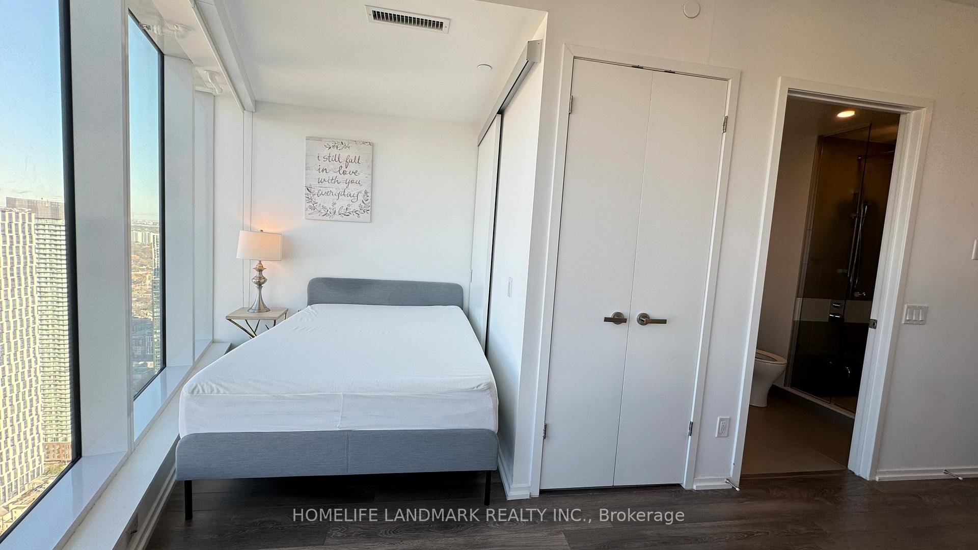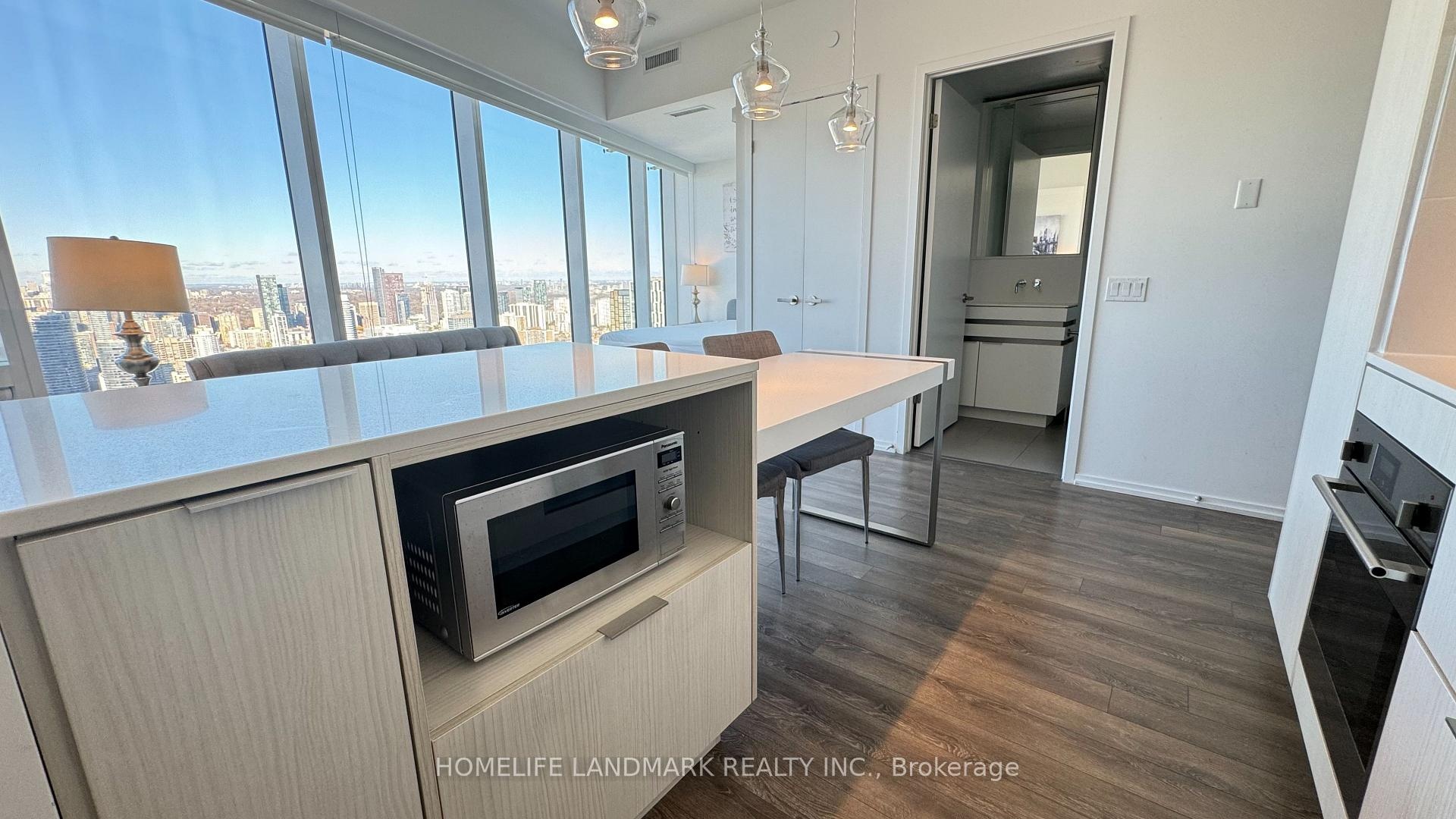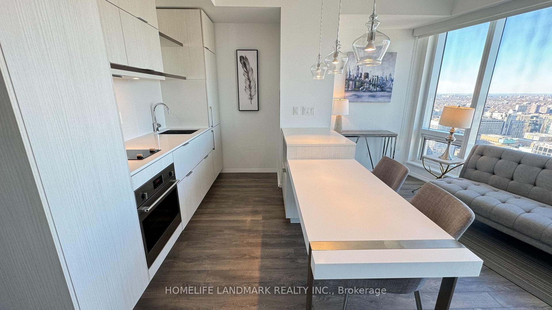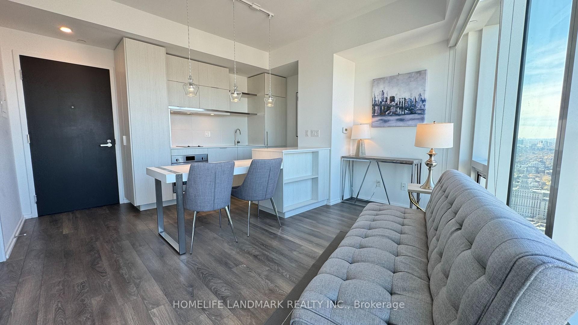 Welcome To The Massey Tower Condominiums. This High Floor Bachelor Corner Suite Features Designer Kitchen Cabinetry With Stainless Steel Appliances, Granite Counter Tops & An Undermount Sink. Bright 9Ft. Floor-To-Ceiling Wrap Around Windows With Customized Roller Shades & Laminate Flooring Throughout Facing Stunning C.N. Tower & City Views. Steps To Toronto's Eaton Centre, T.T.C. Subway, Yonge - Dundas Square, U Of T, George Brown, Toronto Metropolitan University (Ryerson), The Financial & Entertainment Districts