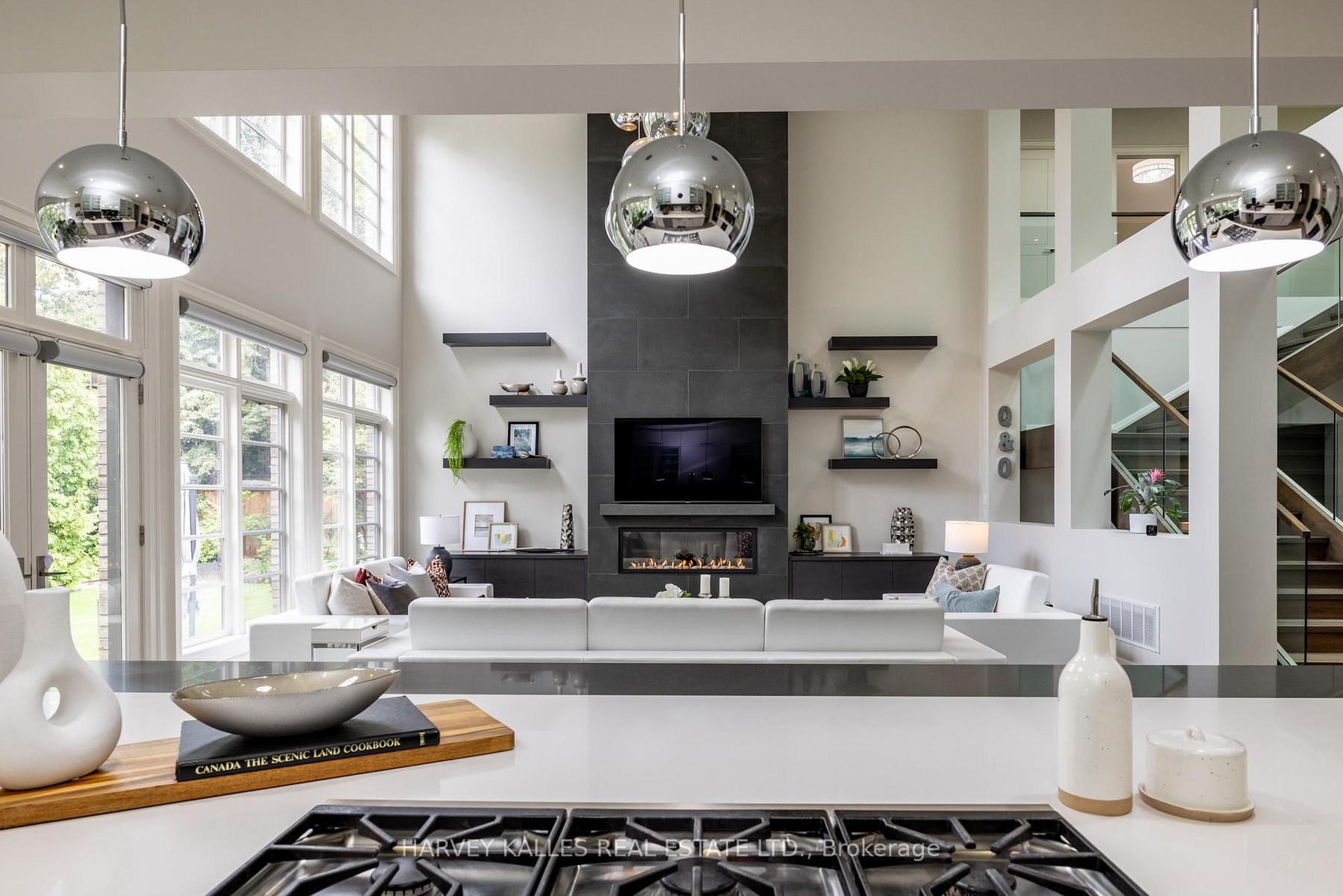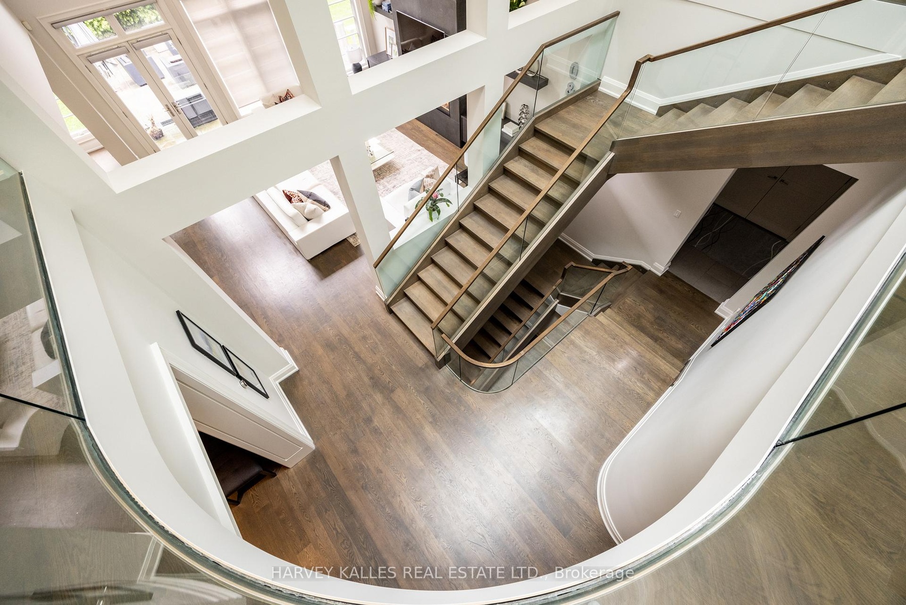 Welcome to "Quatorz Sulgrave," a custom luxury home in the prestigious St. Andrews neighbourhood of Toronto. Completed in 2014 by Rostek Homes with classic architecture by David Wooldridge and modern transitional interiors by CMID, this residence offers approximately 7,900 Sq. Ft. of total living space, including ~ 5,000 Sq. Ft. above grade, on a 90' x 125' lot. Designed with timeless elegance, the Indiana limestone façade and professionally landscaped gardens set the stage for refined living. Inside, 10' ceilings, oak hardwood floors, Savaria elevator, applied mouldings, and custom millwork showcase exceptional craftsmanship. The main floor blends formal and family living with a living/dining room, study, and an open-concept chef's kitchen featuring Sub-Zero/Wolf appliances, quartz waterfall island, butler's pantry, and breakfast area overlooking the two-Storey family room with soaring 20' ceiling and linear fireplace. The upper level offers 4 vaulted bedrooms with ensuites, including a serene primary retreat with fireplace, dressing room, and 7-piece spa-inspired ensuite. The finished lower level includes a recreation room, games room, wet bar, fifth bedroom/gym, cedar closet, arcade, and cold cellars. Outdoor living is enhanced with stone interlock, outdoor kitchen/wet bar, fenced yard, and standby generator. Additional features: 4-car built-in garage with EV charger, 6-car drive, smart home wiring, built-in speakers, alarm and camera system, and dual furnaces & A/C. Ideally located near Bayview Village, The Granite Club, Highway 401, and some of Toronto's top private and public schools. A rare opportunity to own a custom-built St. Andrews luxury home of enduring style, exceptional quality, and unparalleled convenience.