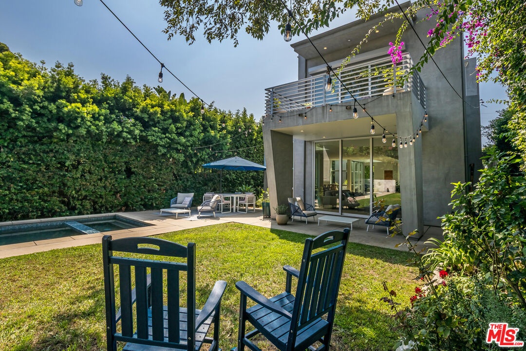 Nestled on a quiet street in the serene Mar Vista neighborhood, 3728 South Barrington Avenue is a stunning architectural home on a generous 8,591 square foot lot. This modern residence, encompassing 3,799 square feet, welcomes you with a dramatic 14-foot ceiling entry and expansive walls of glass that fill the space with natural light, highlighting the elegant refinished wood floors. The thoughtfully designed interior includes a private office, four spacious bedrooms, each with its own ensuite bathroom. The chef's kitchen serves as the heart of the home, featuring an oversized island, Calcutta marble backsplash, and top-tier Thermador appliances, including a new oven and dishwasher. Entertain in style with the formal dining room and integrated speakers throughout this stylish haven. Relax in the expansive great room, complete with a fireplace and 10-foot sliding doors that open to a private, hedge-lined yard with a covered patio and a wide lap pool, and spa, solar heated, with new cover & new electronic control system. The primary suite offers a tranquil retreat with an 11-foot ceiling, fireplace, walk-in closet, and a private deck overlooking the pool. The spa-like bathroom features floor-to-ceiling Calcutta marble, an oversized shower, soaking tub, and dual sink vanity. Additional amenities include a two-car attached garage with 220 EV Charging Plug, tankless water heater, smart home readiness, and a new aluminum electronic slide front gate, ensuring both convenience and security. This Mar Vista gem is an entertainer's delight, perfectly blending luxury and modern living.