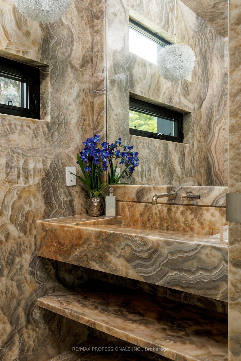 Spectacular Custom home on Lambton Wood Ravine in prestigious Edenbridge Humber Valley. Idyllic private setting with secluded oasis complete with pool and east facing garden backing onto the wooded ravine. Enter inside a masterpiece of custom stonework throughout with floor to ceiling marble and endless upgrades and luxury appointments. 7000+ square feet of living space offers residents top of the line Gaggenau appliances and furnishings that overlook the backyard living and dining areas. The second floor offers 4 fully furnished bedrooms each with private ensuite baths. The primary bedroom is amongst the finest with ravine views and built in TVs and a 5 piece ensuite and walk in closets like no other. Lower level offers a full bar & temperature controlled wine cellar with sprawling lower living space complete with professional gym & spa/cold plunge & sauna. Not to be missed, the garage includes a two car lift. Truly a lifestyle experience and unequivocally the finest in finishes throughout nestled on one of the quietest streets in the area. Steps to Humber town plaza, Bloor, and close to all major highways. Short commute downtown & top school district.