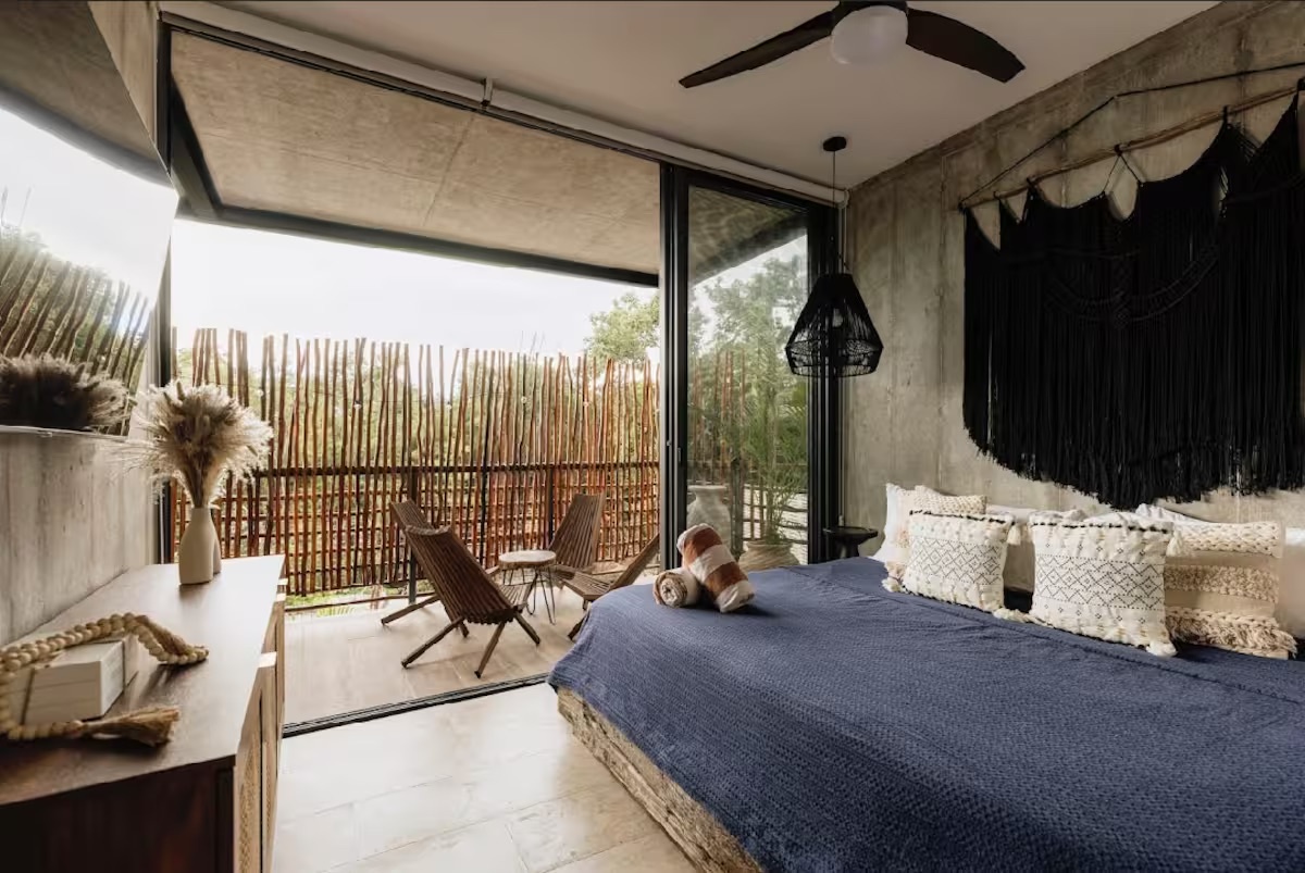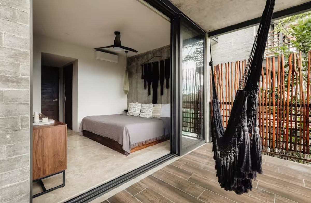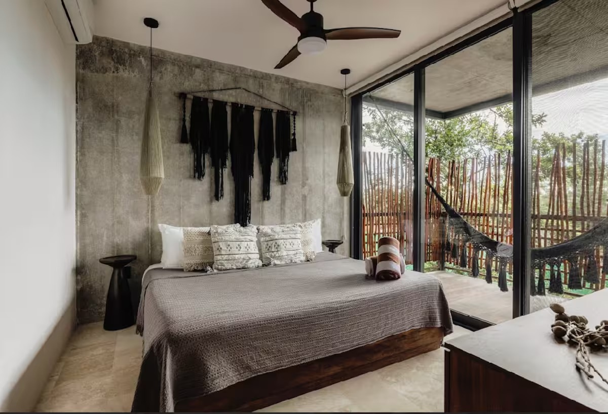 Welcome to this luxurious 2 bedroom 2 bathroom apartment in the Xalet Tulum! This furnished apartment is equipped with modern appliances, A/C, and Wi-Fi. It features a spacious balcony with a hammock, offering a tranquil space to unwind & soak up the beautiful surroundings. Xalet is the epitome of luxury living, with many amenities. Take a dip in the pool, work out in the gym, relax by the fire pits, and enjoy the spa sauna.