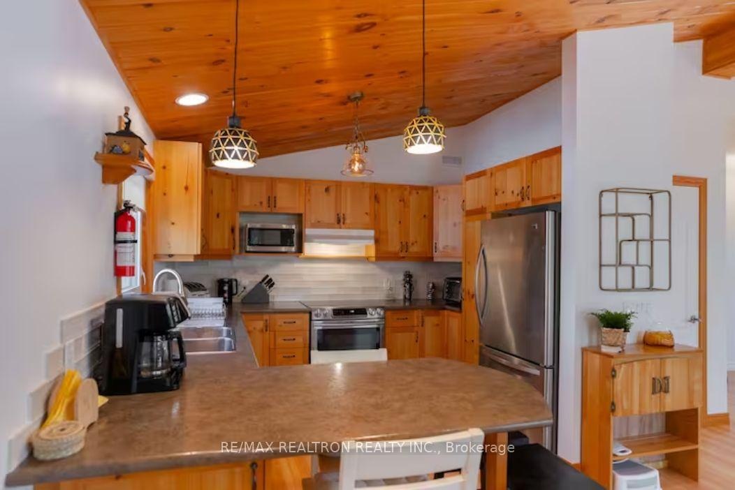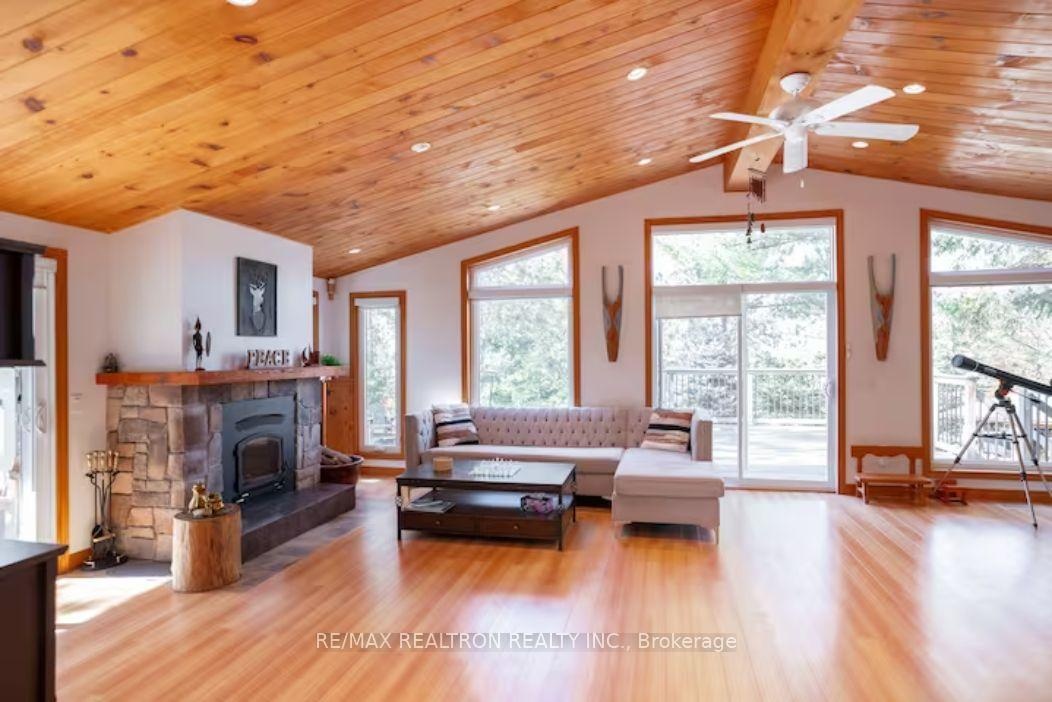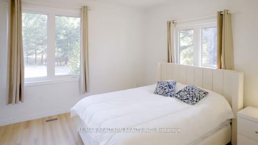 Enjoy four-season living in the desirable Bluewater Beach community on Georgian Bay, just a 2-minute walk to the private sandy beach. This fully furnished raised bungalow offers approx. 2,800 sq. ft. of living space with 5 (3+2 Bed) bedrooms and 3 bathrooms. Features include an open-concept great room with a cathedral ceiling and a wood-burning fireplace, a walkout to a large cedar deck, and 5 minutes' walking distance to the Lake. a well-equipped kitchen with stainless steel appliances, and a spacious finished basement with a family room and spa-style bath. Forced air gas heat, central A/C, laundry, , . Close to year-round recreation and only 90 minutes north of the GTA.