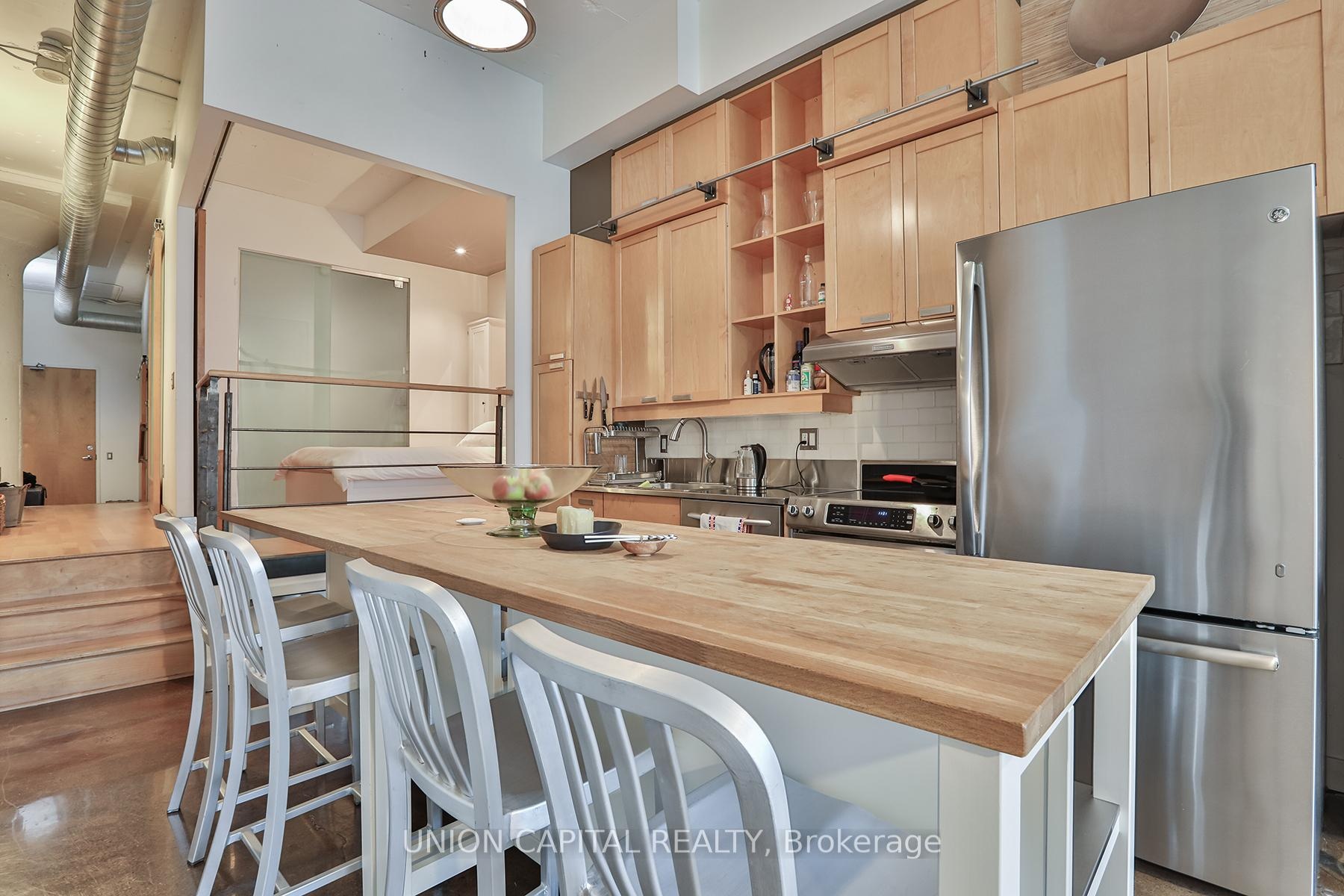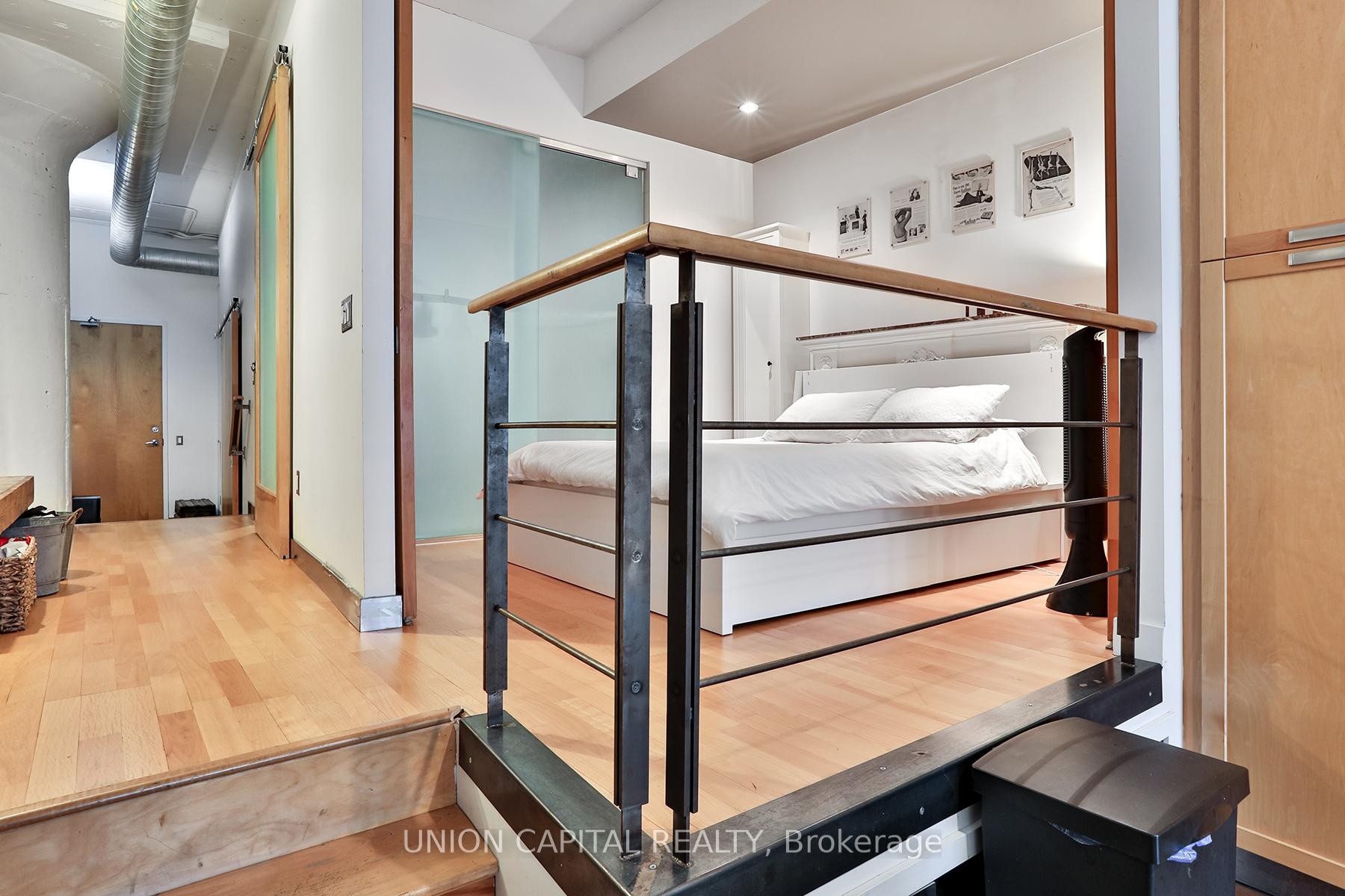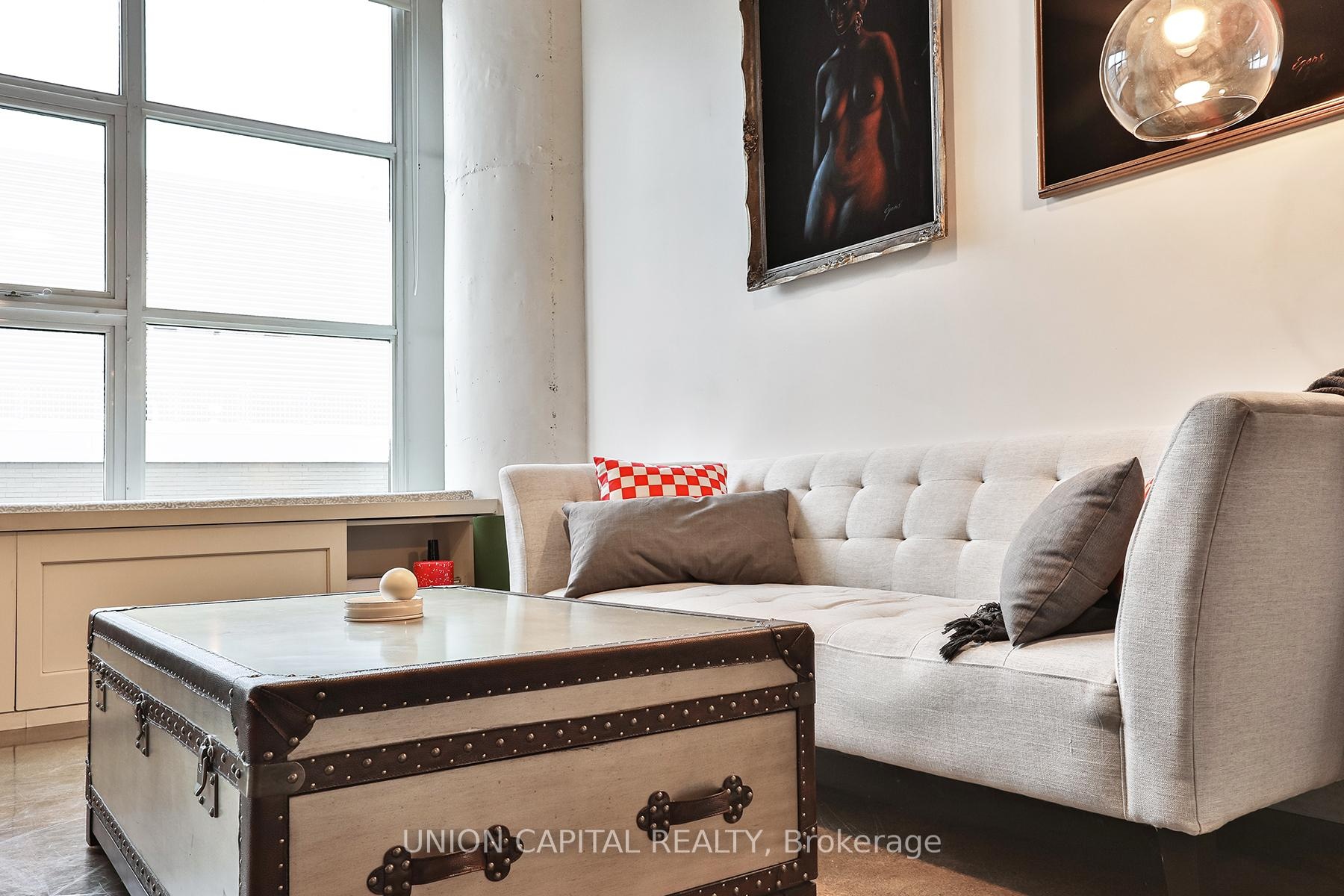 Set within the iconic Merchandise Lofts, where historic character meets modern downtown living, this furnished 1-bedroom suite with parking offers the perfect blend of space, light, and lifestyle. Step inside to discover a bright, west-facing loft framed by soaring 12-ft industrial ceilings, polished concrete and hardwood floors, and oversized warehouse windows that flood the home with natural light by day-while roller blinds create a projector-friendly setting for evenings at home. The raised bedroom with sliding loft doors adds visual drama and separation while keeping the open-concept vibe alive. A sleek kitchen with stainless steel appliances, an inviting living area with a gas fireplace, and a modern bathroom with glass walk-in shower complete the interior. Residents enjoy access to premium amenities including a rooftop terrace with BBQs, indoor pool, gym, sauna, basketball court, guest suites, and 24-hour concierge/security. With direct access to Metro Grocery and steps to Toronto Metropolitan University, Eaton Centre, TTC, and the hospital network, this is truly downtown convenience redefined. Fully furnished and move-in ready-perfect for professionals seeking comfort, character, and connection in the heart of the city.
