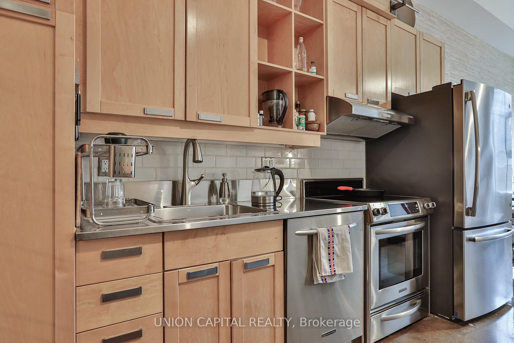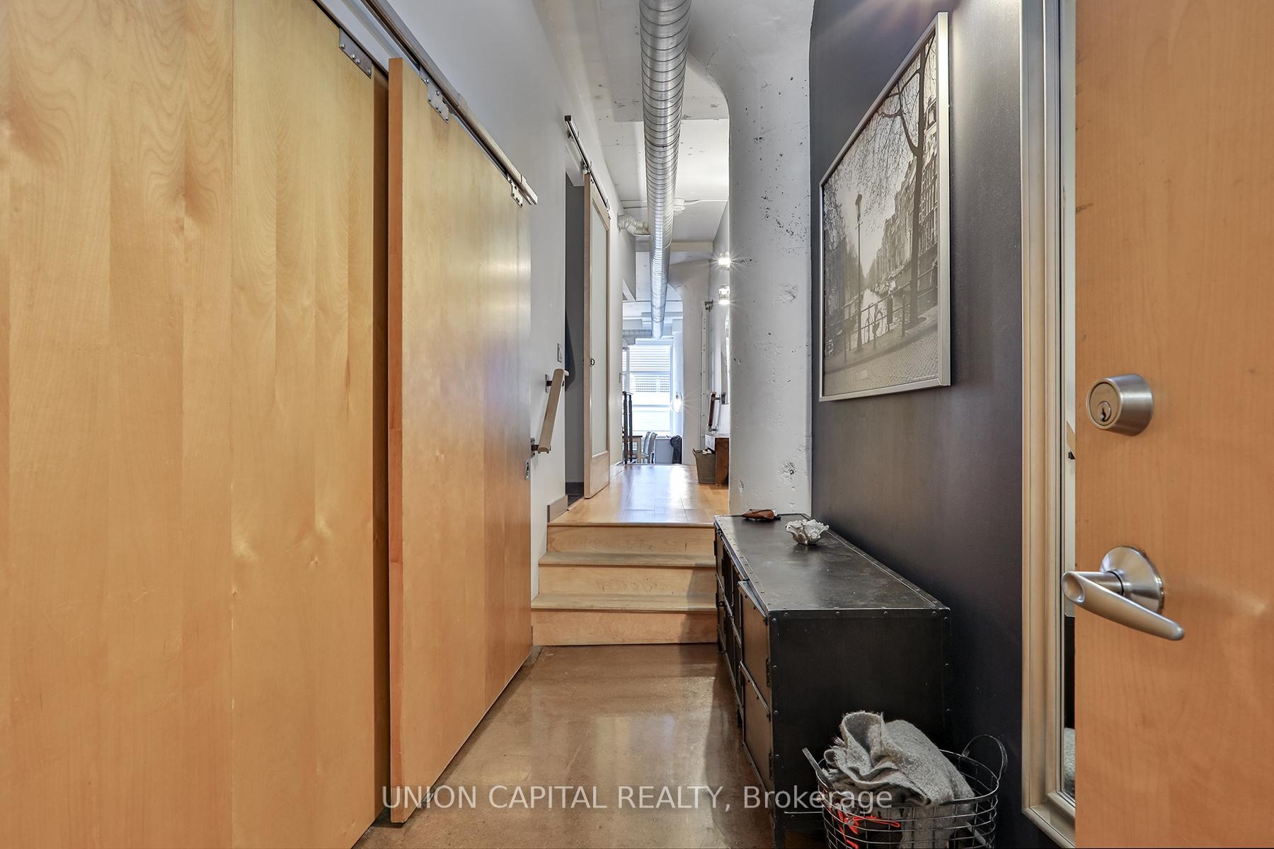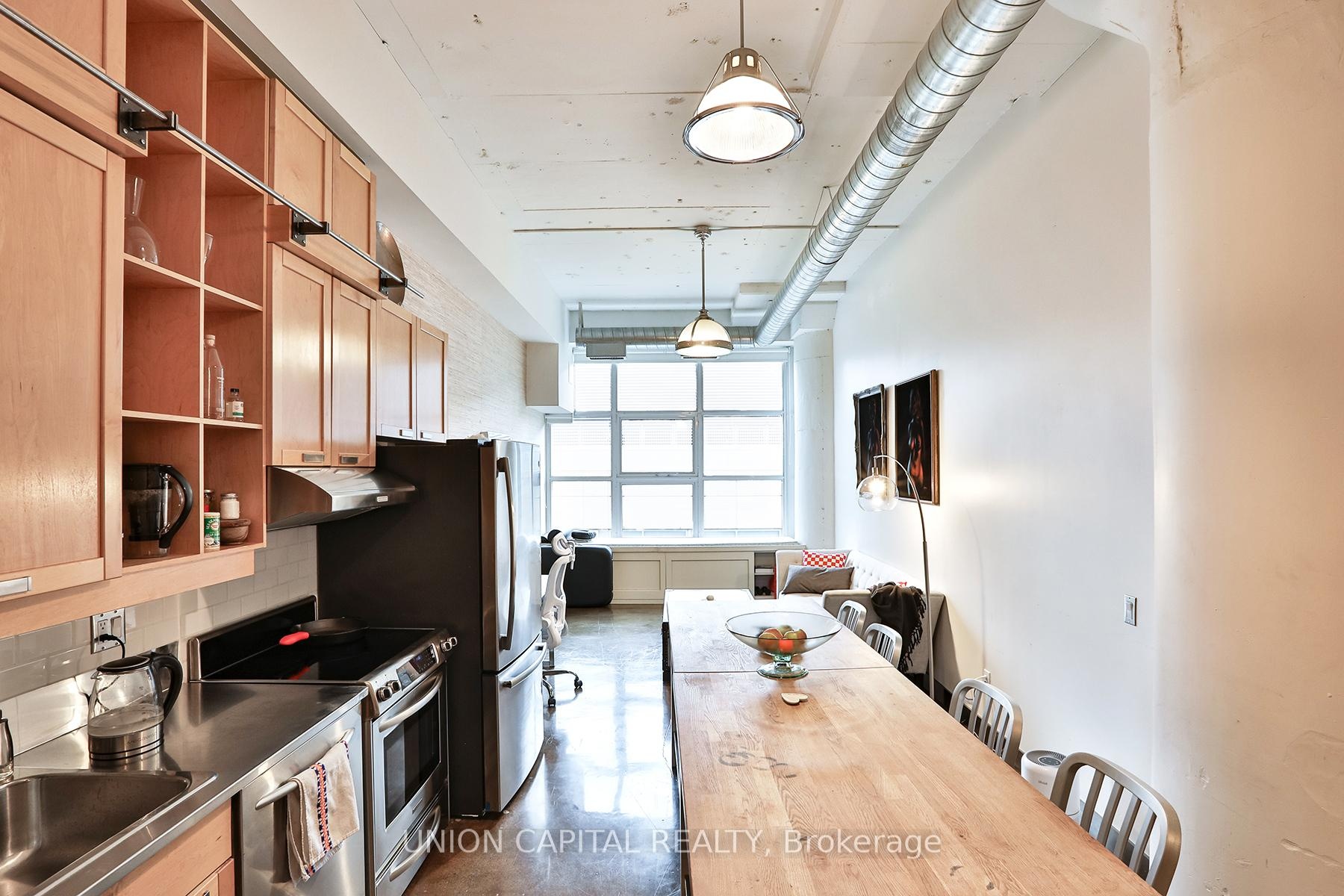 Set within the iconic Merchandise Lofts, where historic character meets modern downtown living, this furnished 1-bedroom suite with parking offers the perfect blend of space, light, and lifestyle. Step inside to discover a bright, west-facing loft framed by soaring 12-ft industrial ceilings, polished concrete and hardwood floors, and oversized warehouse windows that flood the home with natural light by day-while roller blinds create a projector-friendly setting for evenings at home. The raised bedroom with sliding loft doors adds visual drama and separation while keeping the open-concept vibe alive. A sleek kitchen with stainless steel appliances, an inviting living area with a gas fireplace, and a modern bathroom with glass walk-in shower complete the interior. Residents enjoy access to premium amenities including a rooftop terrace with BBQs, indoor pool, gym, sauna, basketball court, guest suites, and 24-hour concierge/security. With direct access to Metro Grocery and steps to Toronto Metropolitan University, Eaton Centre, TTC, and the hospital network, this is truly downtown convenience redefined. Fully furnished and move-in ready-perfect for professionals seeking comfort, character, and connection in the heart of the city.