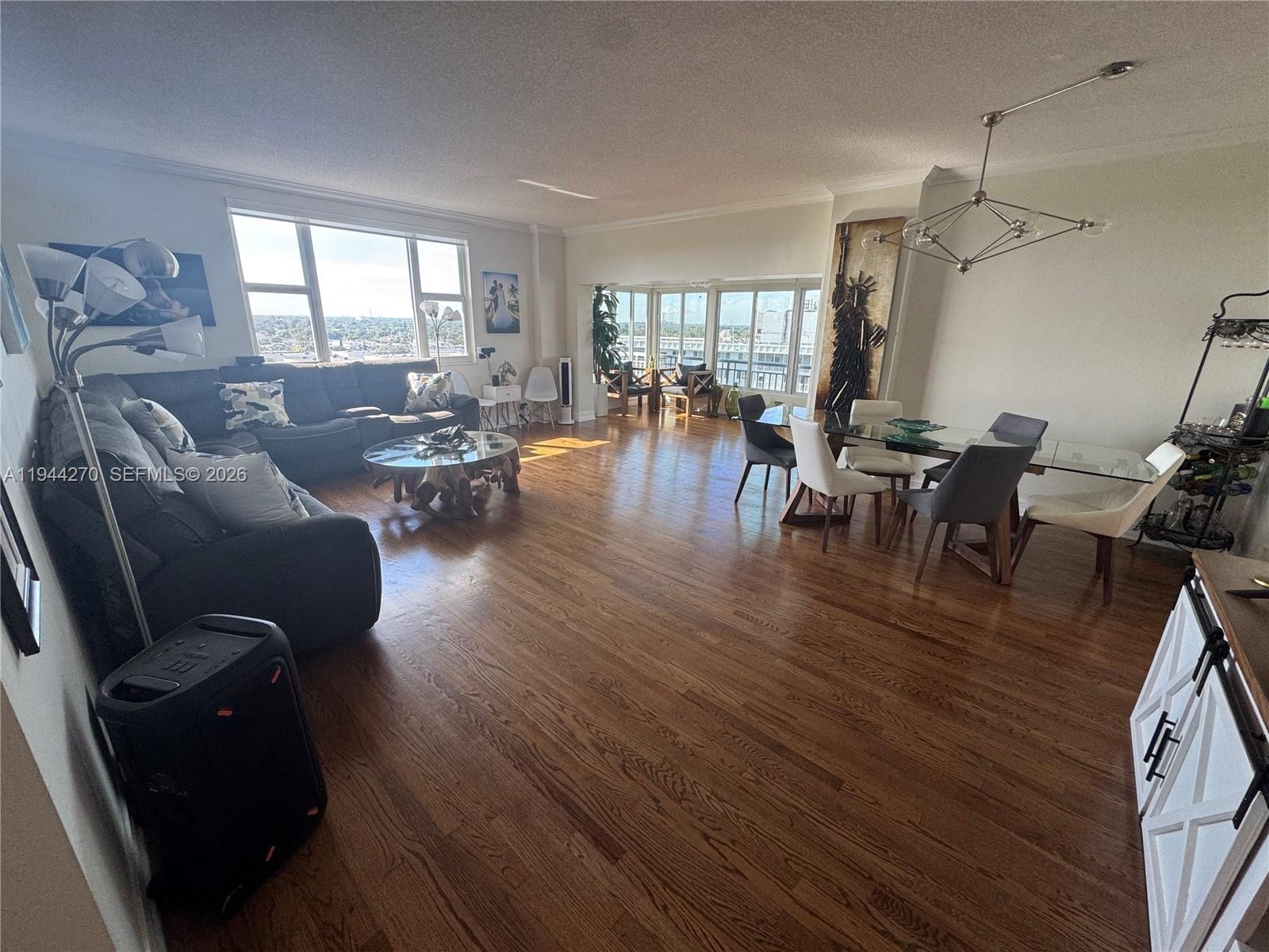 A once-in-a-lifetime opportunity located in the heart of Hollywood with 1634 square feet. This spectacular corner penthouse offers breathtaking panoramic views of South Florida, including North Miami Beach, Hard Rock Stadium, and beyond. Featuring 1,634 square feet under air, this residence provides exceptional privacy, abundant natural light, high ceilings, and a modern open-concept layout. The unit has been fully renovated and includes impact-resistant windows and brand-new appliances throughout, including air conditioning system, water heater, washer and dryer, and all major household appliances. The home offers multiple closets throughout, providing generous storage space, plus additional storage. Building amenities include a swimming pool and jacuzzi, fully climate-controlled interior common areas, laundry facilities on every floor, over 7 miles of walking and exercise trails, bicycle storage, motorcycle parking, three elevators including a service elevator, and 24/7 security with front desk and nighttime patrol. There are no restrictions on parking multiple vehicles. The maintenance fee includes cable, internet, water, sewer, trash, full maintenance of common areas, landscaping, pool service, on-site maintenance and cleaning staff, 24/7 security, structural and flood insurance, and more. In summary, this is a true paradise and an exceptional opportunity offering comfort, security, prime location, and stunning views.