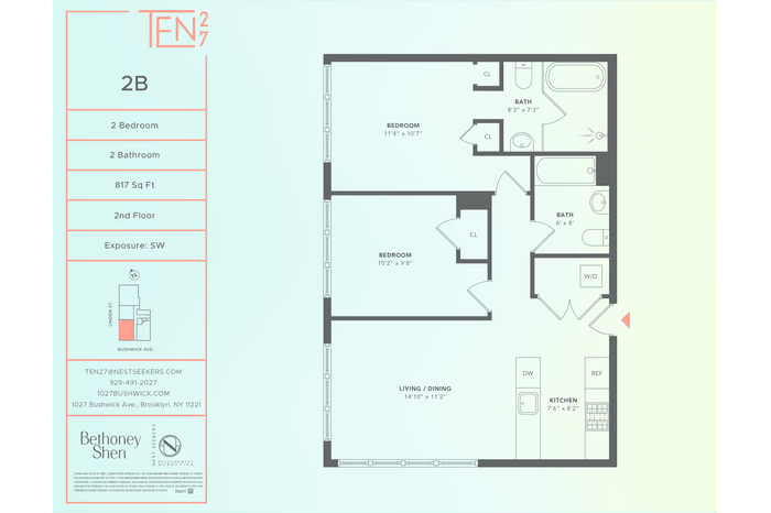 Introducing Residence 2B at TEN27 — this meticulously designed home provides an expansive interior, delivering a refined 2-bedroom, 2-bathroom home in the heart of Bushwick.